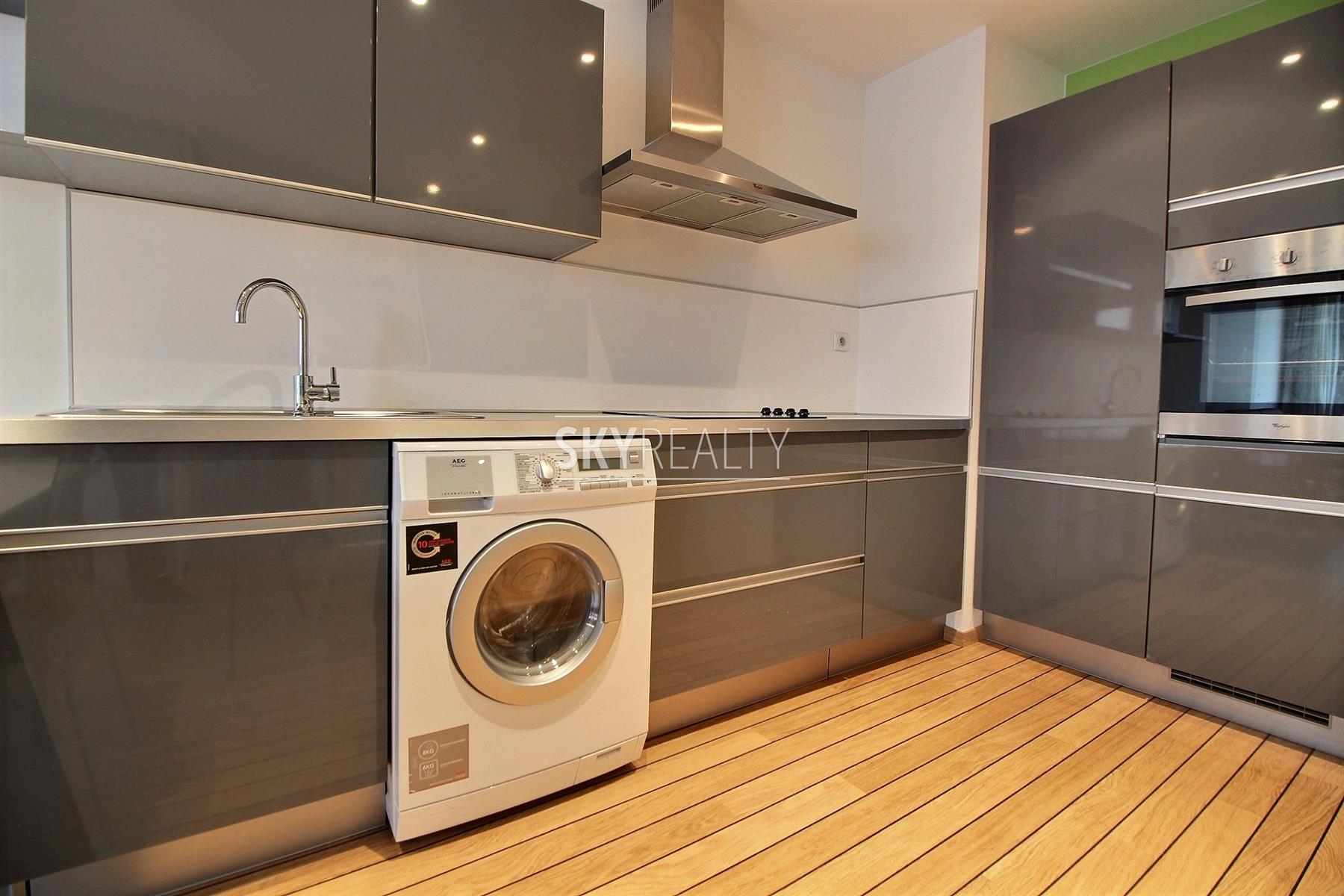 EUROPEAN QUARTER / SCHUMAN / AMBIORIX SQUARE : Beautiful studio of ± 42 sqm completely renovated from A to Z by an interior designer. Everything has been designed to optimize the space and to obtain a super functional accommodation. Everything is there and in a resolutely modern style: a living room and American-style open kitchen (hob, combi oven / microwave, hood, integrated fridge, a washing machine with combined dryer), a sleeping area ( almost a real separate room), a bathroom, a separate "suspended" toilet, design spots are integrated into the ceilings of the entire apartment, a cellar. Luxury building with concierge. In summary: a real cozy little cocoon, well located, hyper modern, functional, bright and offering a pleasant view of Square Ambiorix and rue Archimède. A prime location 2 minutes walk from Schuman (Metro - Station - Airport Line - Taxis - Villo - Cambio), quiet but close to all amenities, restaurants, bars, supermarkets, local shops, fitness center and medical , post, etc. Easy access to major highways. The Cinquantenaire Park at 3 minutes walk. A hyper secure neighborhood, green, alive and very pleasant to live. Available March 13, 2020 - Minimum lease 1 year - Rent: € 850 + € 120 charges (= provision for water, heating with common gas boiler, maintenance of common areas). Internet (TV / telephone) and electricity are the responsibility of the lessee. For any further information or to schedule a viewing please feel free to call David @ 0495 511 555.