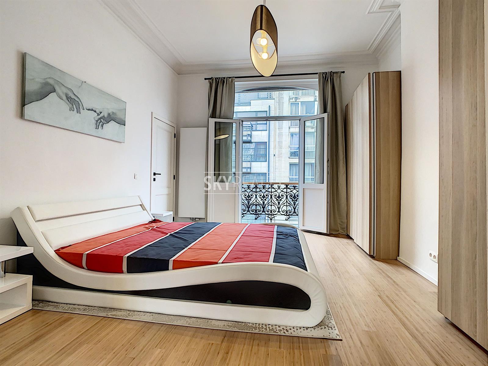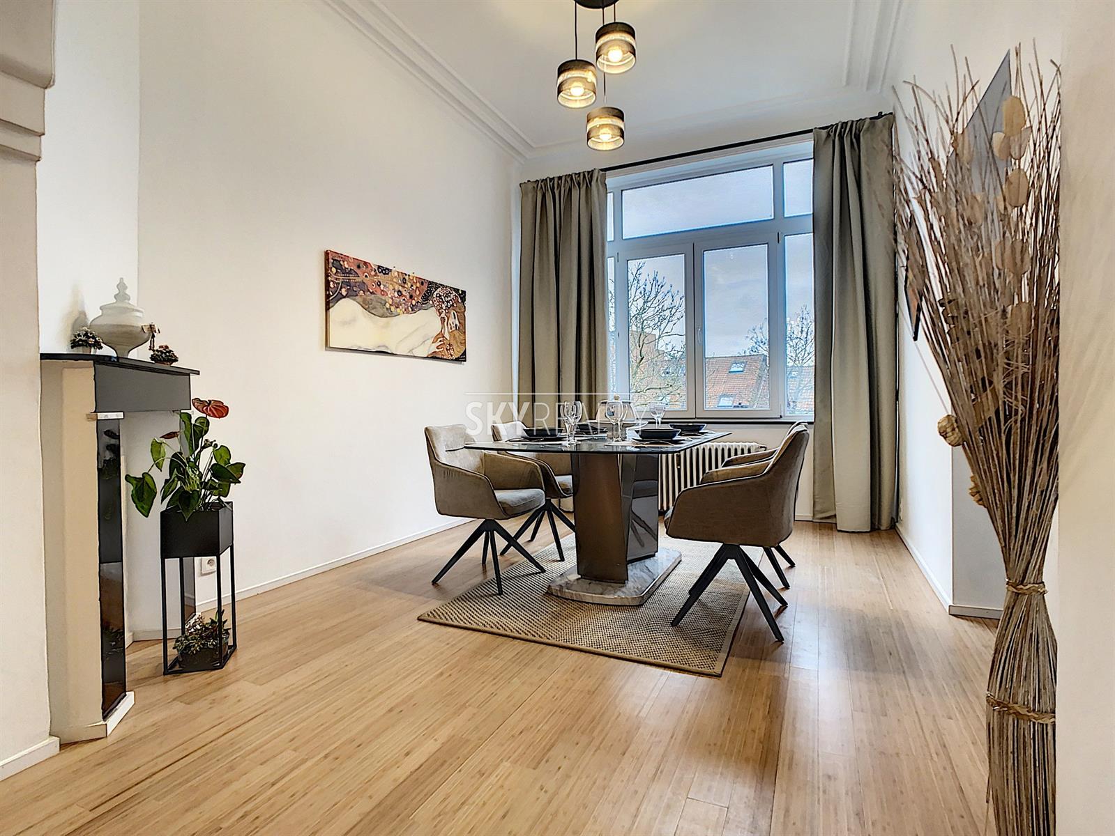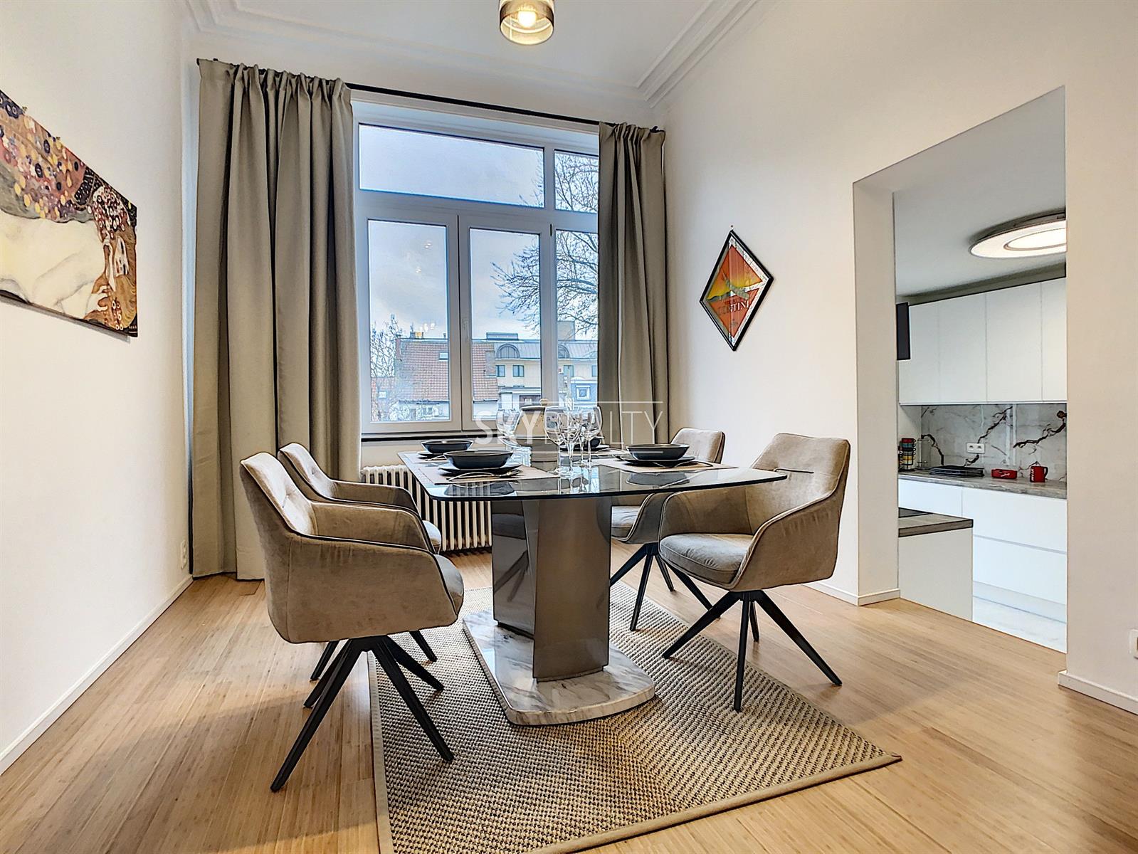*** R E N T E D *** SCHUMAN | EUROPEAN DISTRICT | EU: Ideally located between Schuman Roundabout and Ambiorix Square , close to public transport and all facilities, this splendid 1 bedroom furnished apartment of ± 100 sqm on the 2nd floor of a mansion will enchant you with its its beautiful volumes, its brightness and the quality of its renovation. First occupation after complete renovation from A to Z. It offers: a pleasant living room, a dining room, a spacious fully equipped kitchen (fridge-freezer, ceramic hob, extractor, oven, microwave, dishwasher), a large bedroom (18 sqm with two large wardrobes and a balcony with a nice view of the life of the district), a bathroom (large Italian shower, double sink, towel radiator), a separate toilet, a laundry room with washing machine and dryer included. A fully furnished property. High ceilings, beautiful bamboo flooring, double glazing, custom furniture, room thermostat, videophone, soundproofing floors, etc. Prime location 300m from Schuman near transport (metro, bus, trains) and all services. Parc du Cinquantenaire 3 min. walk. Easy access to highways. Rent € 1,100 + € 30 (flat rate for common charges). Separate meters (water, gas, electricity). Free immediately. Minimum 1 year lease. For any further information or to schedule a viewing please feel free to call or text David @ +32 495 511 555.