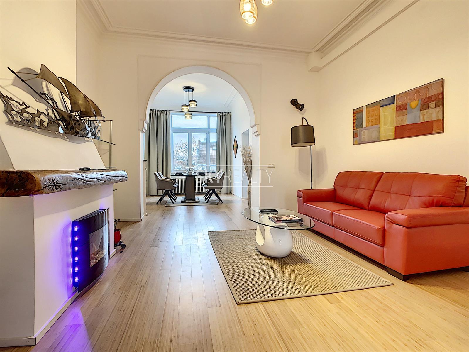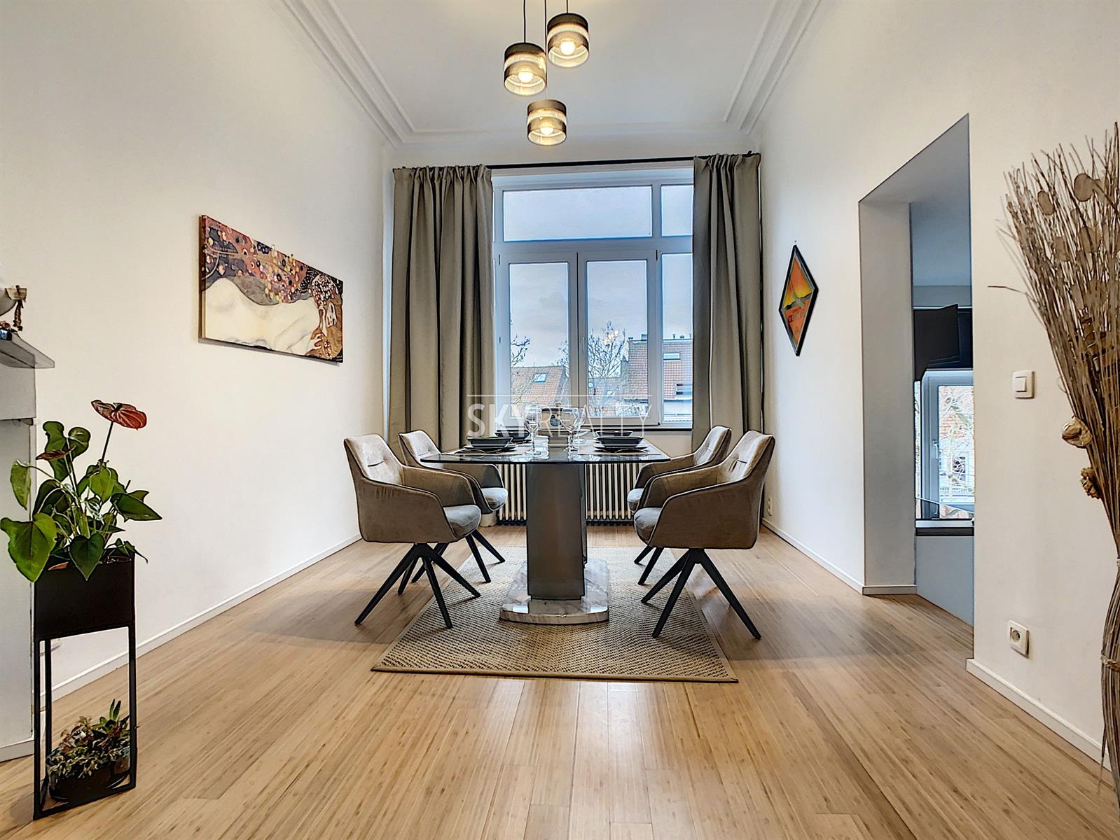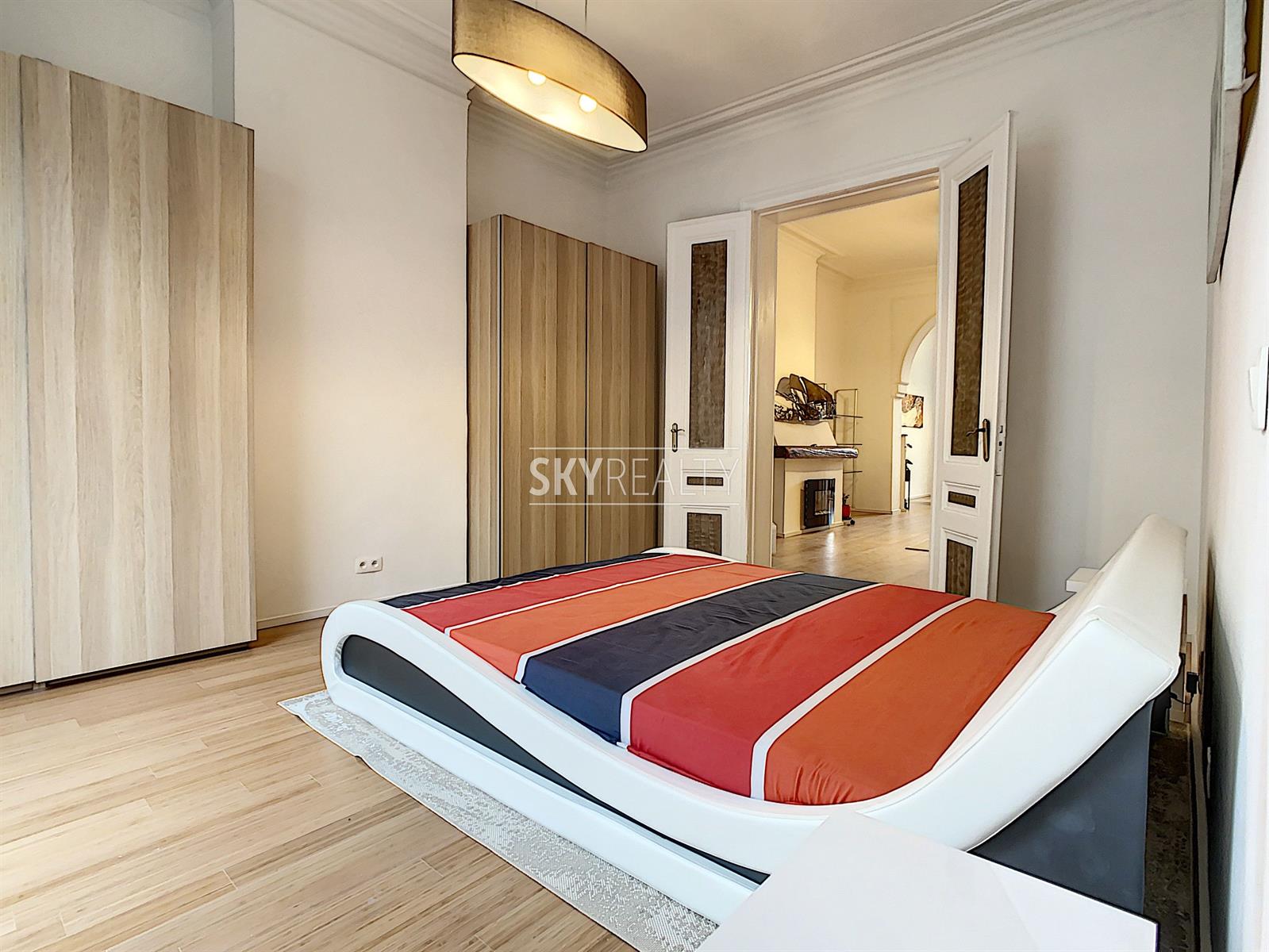 *** R E N T E D *** SCHUMAN | EUROPEAN DISTRICT | EU: Ideally located between Schuman Roundabout and Ambiorix Square , close to public transport and all facilities, this splendid 1 bedroom furnished apartment of ± 100 sqm on the 2nd floor of a mansion will enchant you with its its beautiful volumes, its brightness and the quality of its renovation. First occupation after complete renovation from A to Z. It offers: a pleasant living room, a dining room, a spacious fully equipped kitchen (fridge-freezer, ceramic hob, extractor, oven, microwave, dishwasher), a large bedroom (18 sqm with two large wardrobes and a balcony with a nice view of the life of the district), a bathroom (large Italian shower, double sink, towel radiator), a separate toilet, a laundry room with washing machine and dryer included. A fully furnished property. High ceilings, beautiful bamboo flooring, double glazing, custom furniture, room thermostat, videophone, soundproofing floors, etc. Prime location 300m from Schuman near transport (metro, bus, trains) and all services. Parc du Cinquantenaire 3 min. walk. Easy access to highways. Rent € 1,100 + € 30 (flat rate for common charges). Separate meters (water, gas, electricity). Free immediately. Minimum 1 year lease. For any further information or to schedule a viewing please feel free to call or text David @ +32 495 511 555.