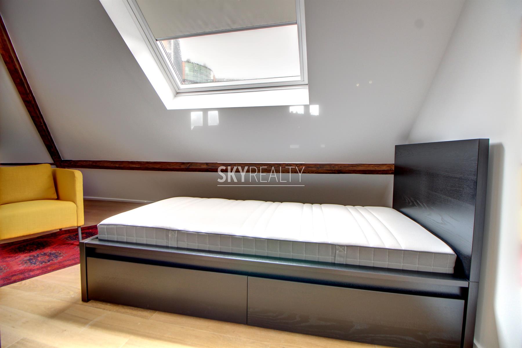 *** Rented *** EUROPEAN QUATER / SCHUMAN: On the third and fourth floor (without lift) of a small building completely renovated, Beautiful Fully Furnished 2-Bedroom DUPLEX Apartment of ± 90 sqm. First occupation after renovation. It offers: on the 3rd floor: a bright and spacious living-room with a tiny balcony, a fully-equipped american kitchen (cooktop, cooker hood, fridge, oven, etc.), 1 bathroom (shower and sink) and a separate toilet; 4th floor: 2 bedrooms under the roofs. Only 300m from Schuman (Metro - Bus - Stib Airport Line - Train Station - Taxi - Cambio - Villo). Close to all amenities: restaurants, bars, supermarket, shops, bank, pharmacy, post office, fitness, medical center, Etc. Cinquantenaire / Jubelpark at 300m. A Secure, pleasant, lively area. Immediately free. Rent: €1,150 + €30 of provision for water. No expense for the maintenance of the communs areas (paid by the landlord). Heating paid separately by the tenant (individual gas heating system + double glazing + flat facing South & West = low expenses). For any further information feel free to contact or text David @ +32 495 511 555. Similar properties available.