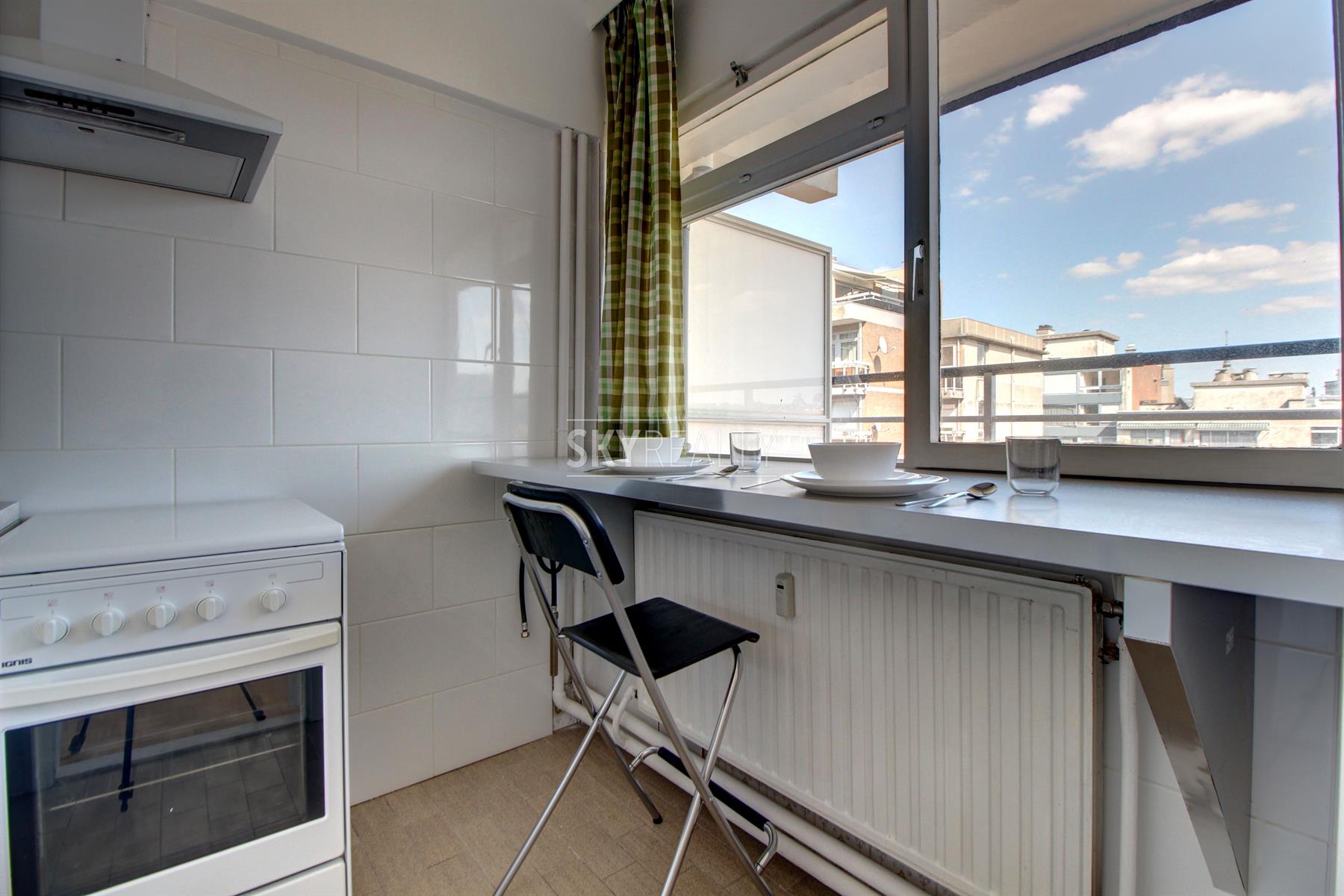 *** RENTED *** SCHUMAN / EUROPEAN QUARTER / CHARLEMAGNE BLVD - AMBIORIX SQUARE: Ideally located close to transport and all facilities, this pleasant furnished studio of ± 40 sqm on the 9th and last floor will enchant you with its pleasant terrace and its pretty view: It is composed as follows: an entrance hall with cupboards and cloakroom, a living room with a sleeping corner (double bed of 160cm wide), a beautiful terrace (facing east) with a nice view, a kitchen, a renovated bathroom (shower, sink, toilet, a towel holder radiator and a washing machine) and a cellar. This studio located at the back of the building is very quiet and offers a nice view of the neighborhood. Concierge in the building (receiving parcels during your absence). A Prime location close to Schuman (Subway - Station - Taxis - Villo - Shared car - STIB Airport Line - etc.) with all the facilities and services nearby: restaurants, cafes, supermarkets, small shops, banks, pharmacies, post office, fitness and medical center, etc. Easy access to major highways. Parc du Cinquantenaire is a 3-minute walk away. A secure neighborhood, green, and very pleasant. Available as of: October 15, 2019. Minimum lease of 1 year. Ideal for a single person. Rent € 700 + € 100 Charges (provision for hot / cold water, heating and maintenance of common areas), Internet and electricity are the responsibility of the taker. For any further information or to schedule a viewing please feel free to call or text David @ 0495 511 555
