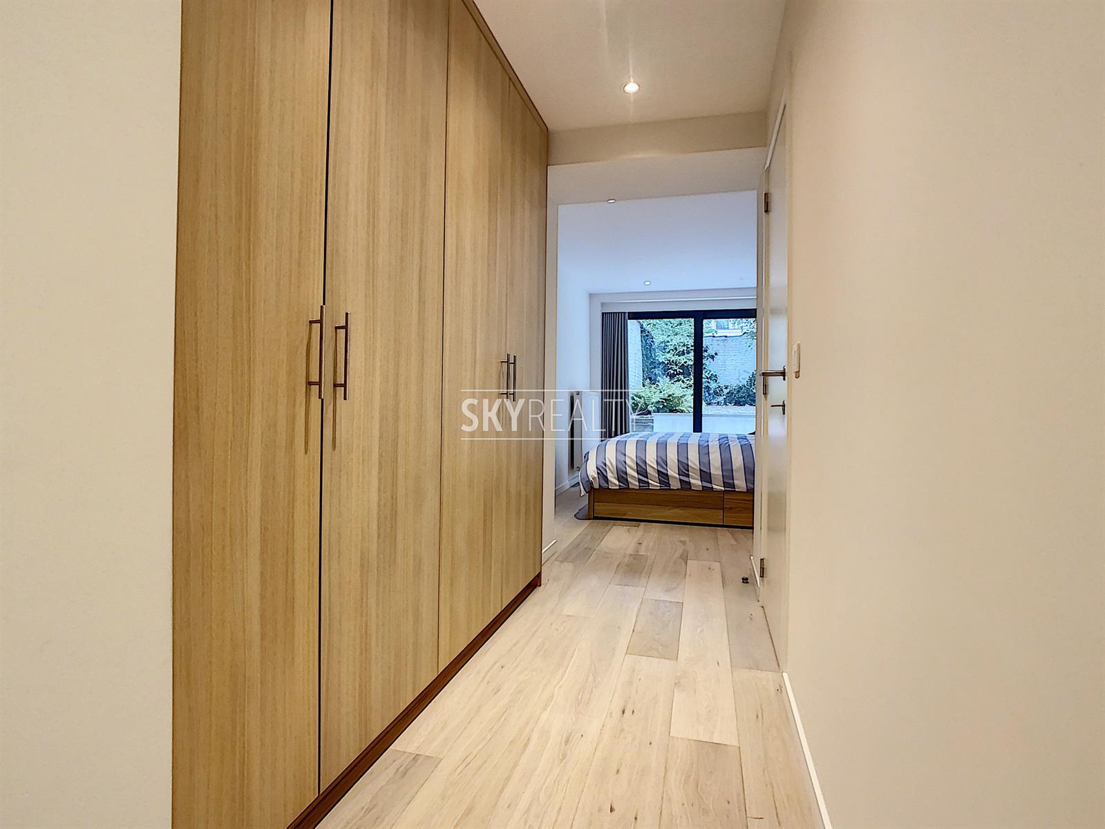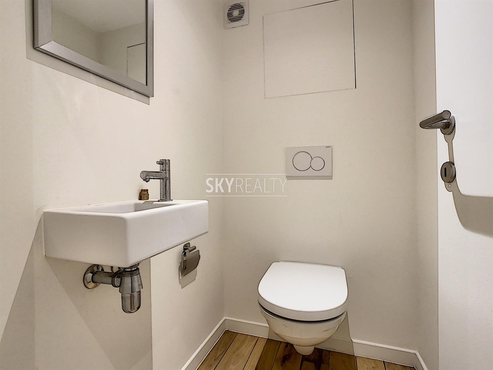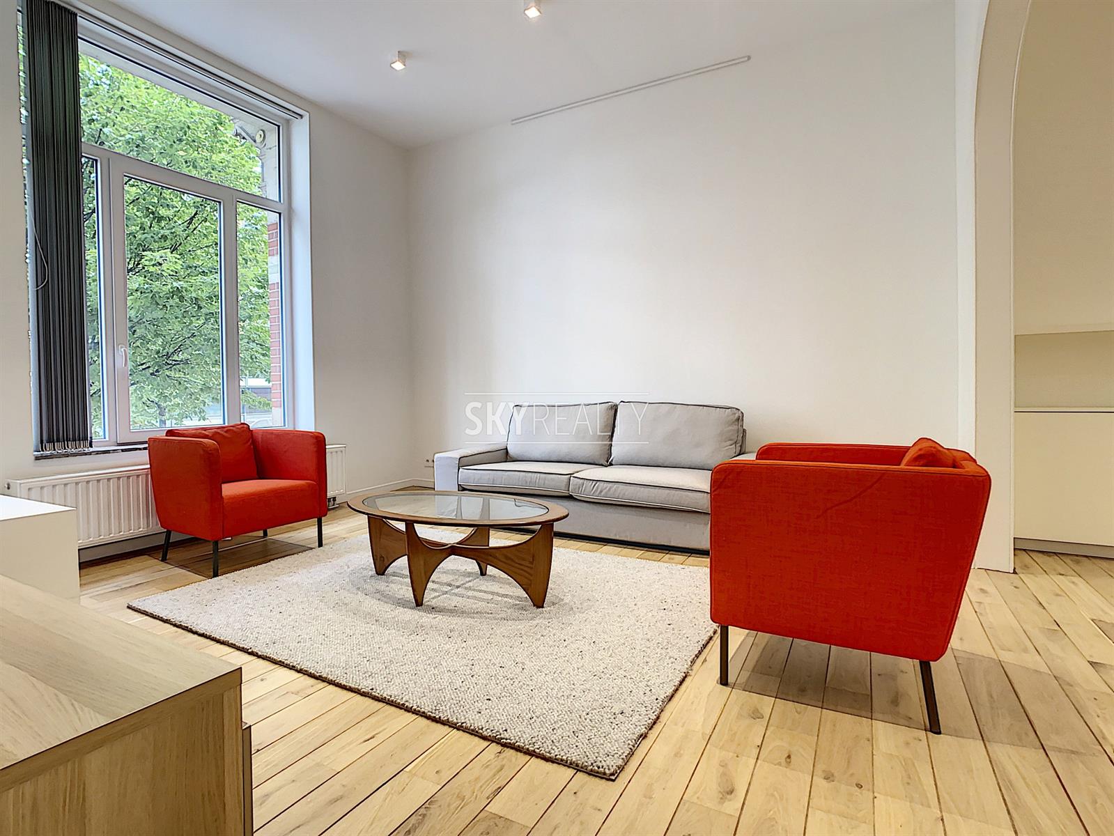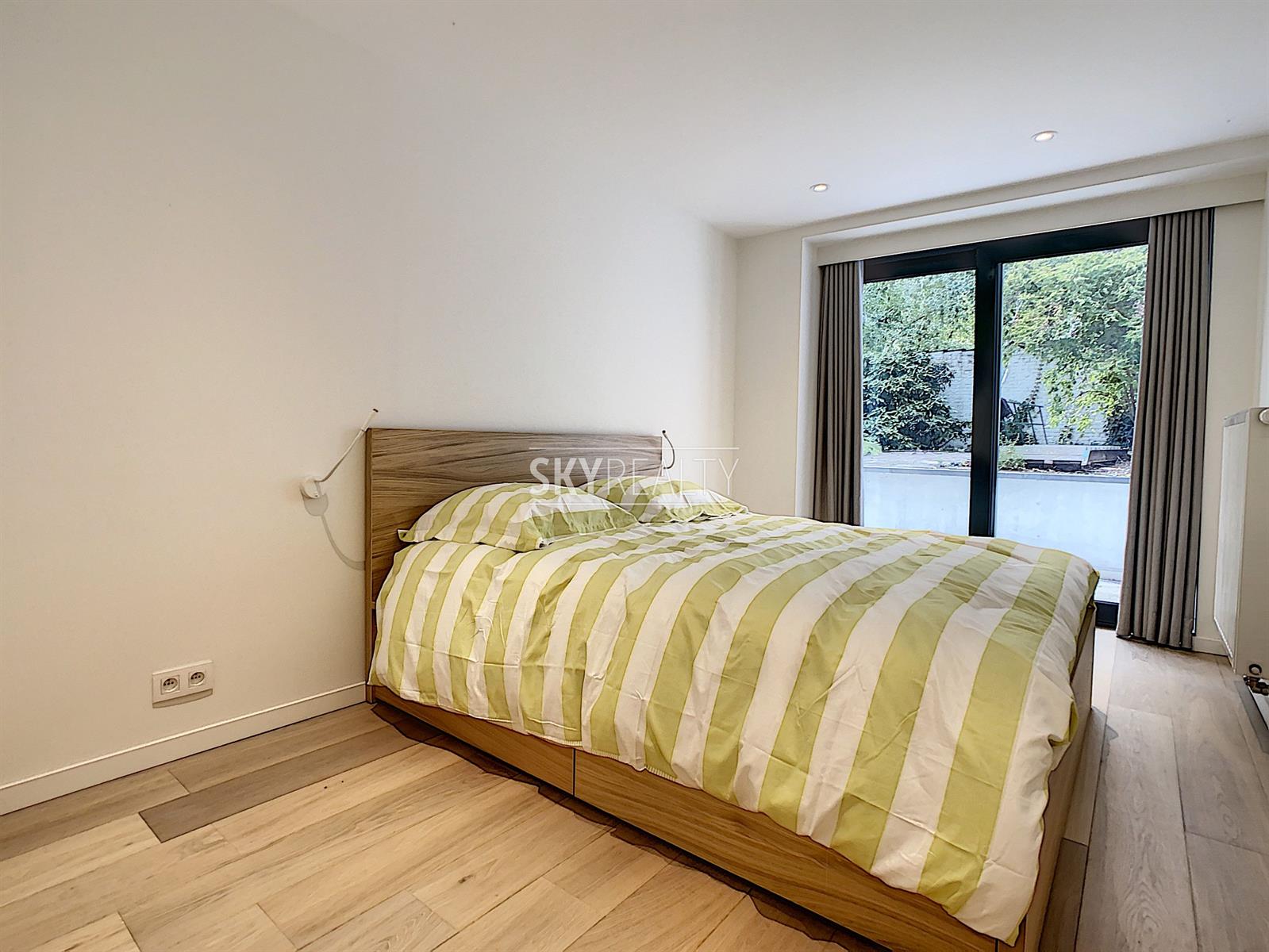 SCHUMAN / EUROPEAN DISTRICT: Ideally located next to Square Ambiorix and close to public transport and all facilities, this splendid 2 bedroom furnished duplex apartment of 110 sqm on the upper floor of a pretty mansion will enchant you by its beautiful volumes, the quality of its renovation and its pleasant garden. First occupation after complete renovation. It offers: a guest toilet (with washbasin), a living room made up of 3 interconnecting rooms giving access to the rear to a beautiful terrace and a pleasant sunken garden (west facing), a spacious fully equipped American kitchen with friendly central island (fridge-freezer, induction hob, extractor, oven, dishwasher, lots of storage); on the lower floor: a night hall, a guest toilet, two large bedrooms (20 and 18 sqm), two en-suite bathrooms (shower, sink, towel radiator), a space with washing machine and dryer (included), access to the garden via the two bedrooms. Bicycles / strollers room. Double glazing, high ceilings, oak parquet, custom furniture, room thermostat, ventilation system, magnetic key, etc. Prime location 300m from Schuman near transport (metro, bus, trains, taxis) and all services (shops, supermarkets, restaurants, etc.). Parc du Cinquantenaire 3 min. walk. Easy access to highways. Rent € 1,750 € and no common charges. Separate meters for water gas electricity. Free immediately. Info & visits: David: 0495 511 555.