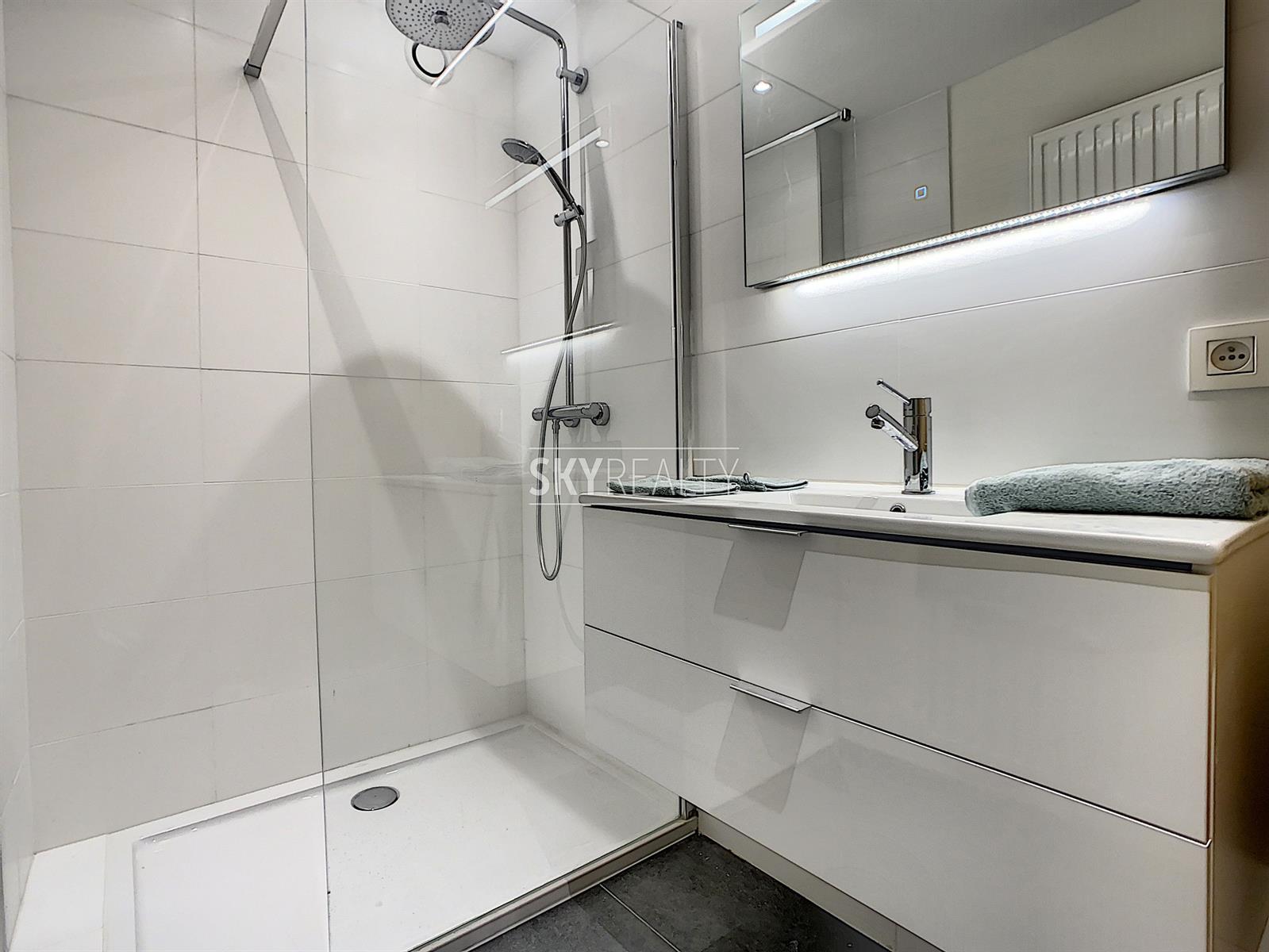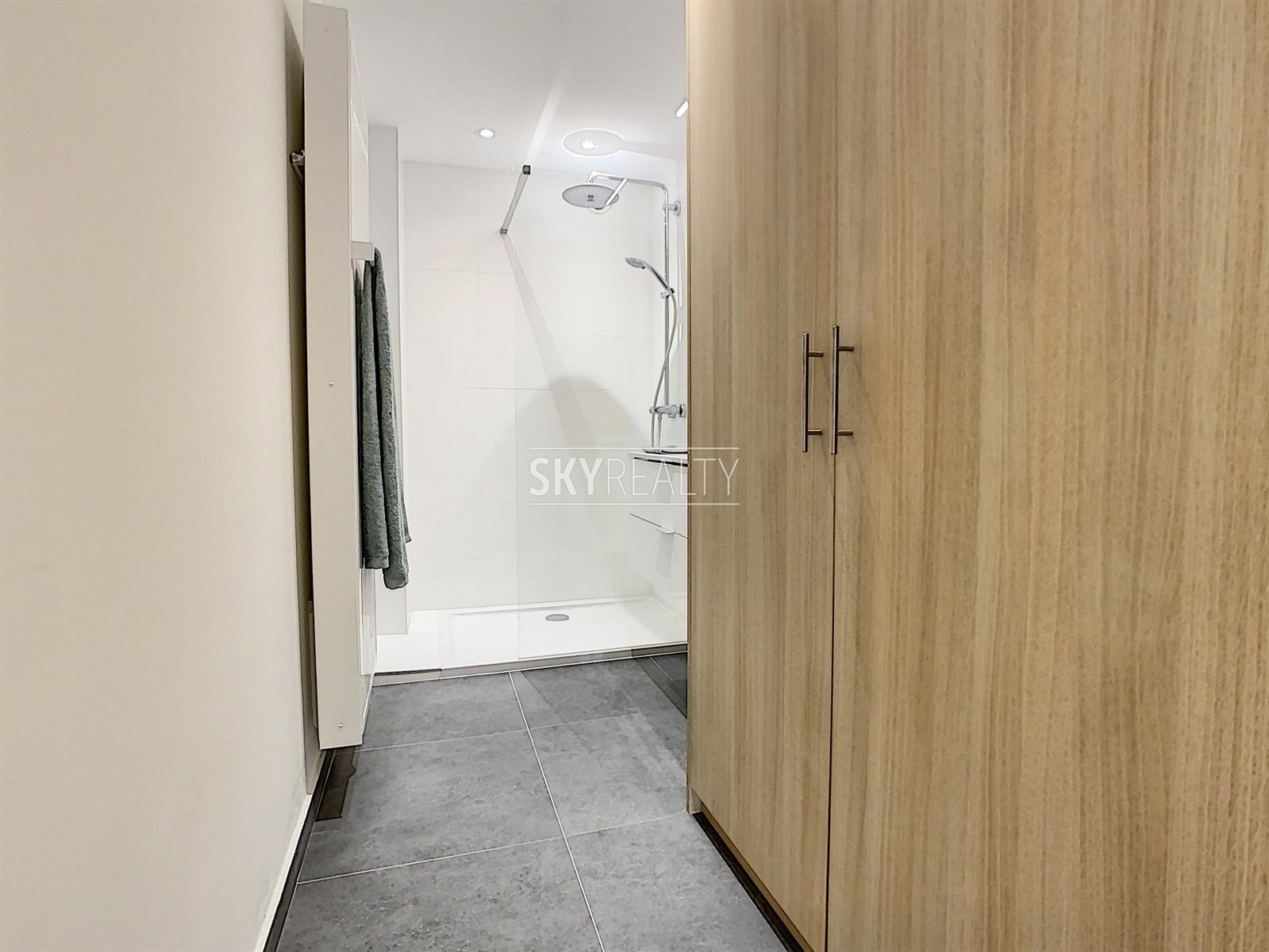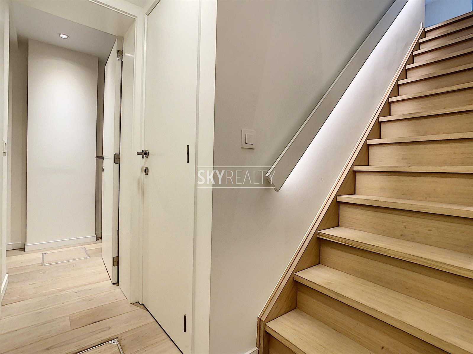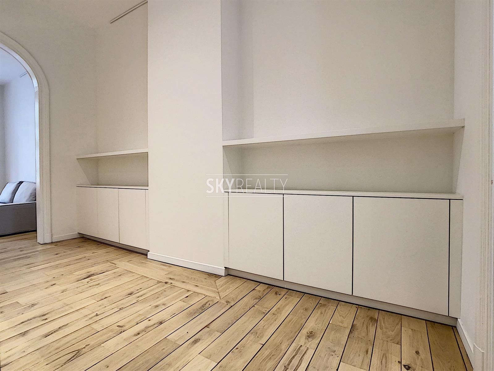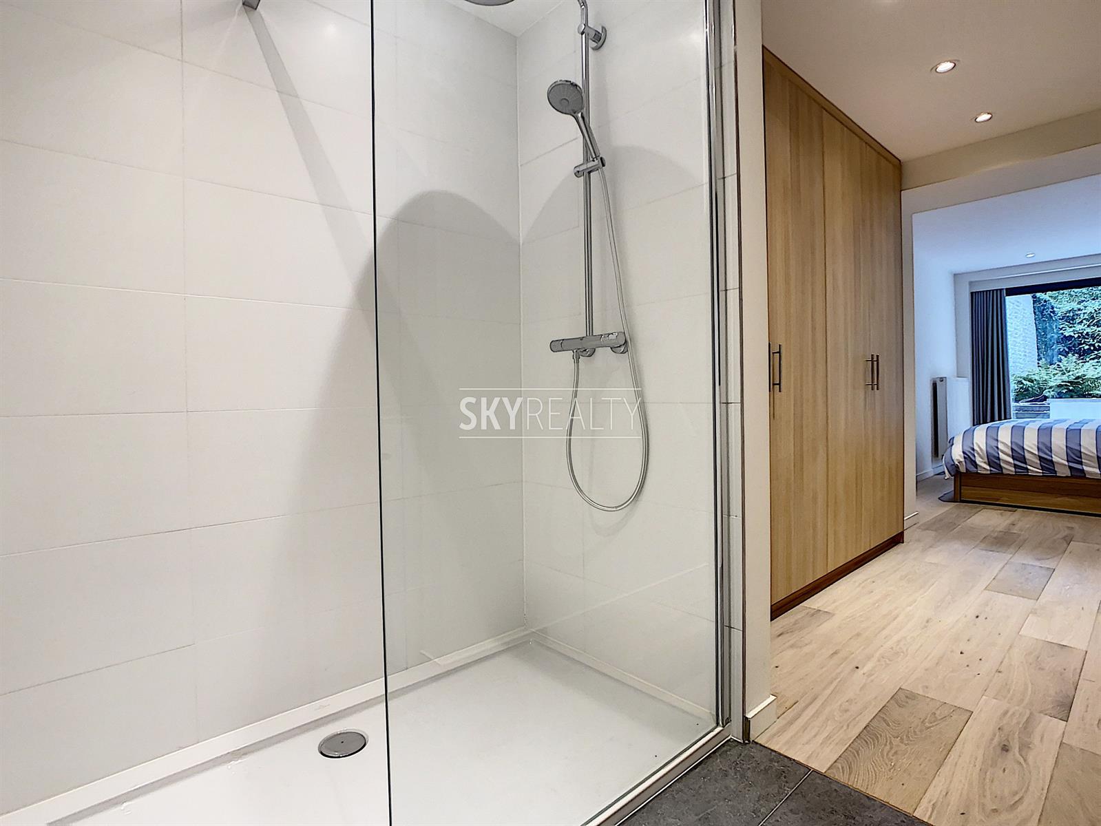 SCHUMAN / EUROPEAN DISTRICT: Ideally located next to Square Ambiorix and close to public transport and all facilities, this splendid 2 bedroom furnished duplex apartment of 110 sqm on the upper floor of a pretty mansion will enchant you by its beautiful volumes, the quality of its renovation and its pleasant garden. First occupation after complete renovation. It offers: a guest toilet (with washbasin), a living room made up of 3 interconnecting rooms giving access to the rear to a beautiful terrace and a pleasant sunken garden (west facing), a spacious fully equipped American kitchen with friendly central island (fridge-freezer, induction hob, extractor, oven, dishwasher, lots of storage); on the lower floor: a night hall, a guest toilet, two large bedrooms (20 and 18 sqm), two en-suite bathrooms (shower, sink, towel radiator), a space with washing machine and dryer (included), access to the garden via the two bedrooms. Bicycles / strollers room. Double glazing, high ceilings, oak parquet, custom furniture, room thermostat, ventilation system, magnetic key, etc. Prime location 300m from Schuman near transport (metro, bus, trains, taxis) and all services (shops, supermarkets, restaurants, etc.). Parc du Cinquantenaire 3 min. walk. Easy access to highways. Rent € 1,750 € and no common charges. Separate meters for water gas electricity. Free immediately. Info & visits: David: 0495 511 555.