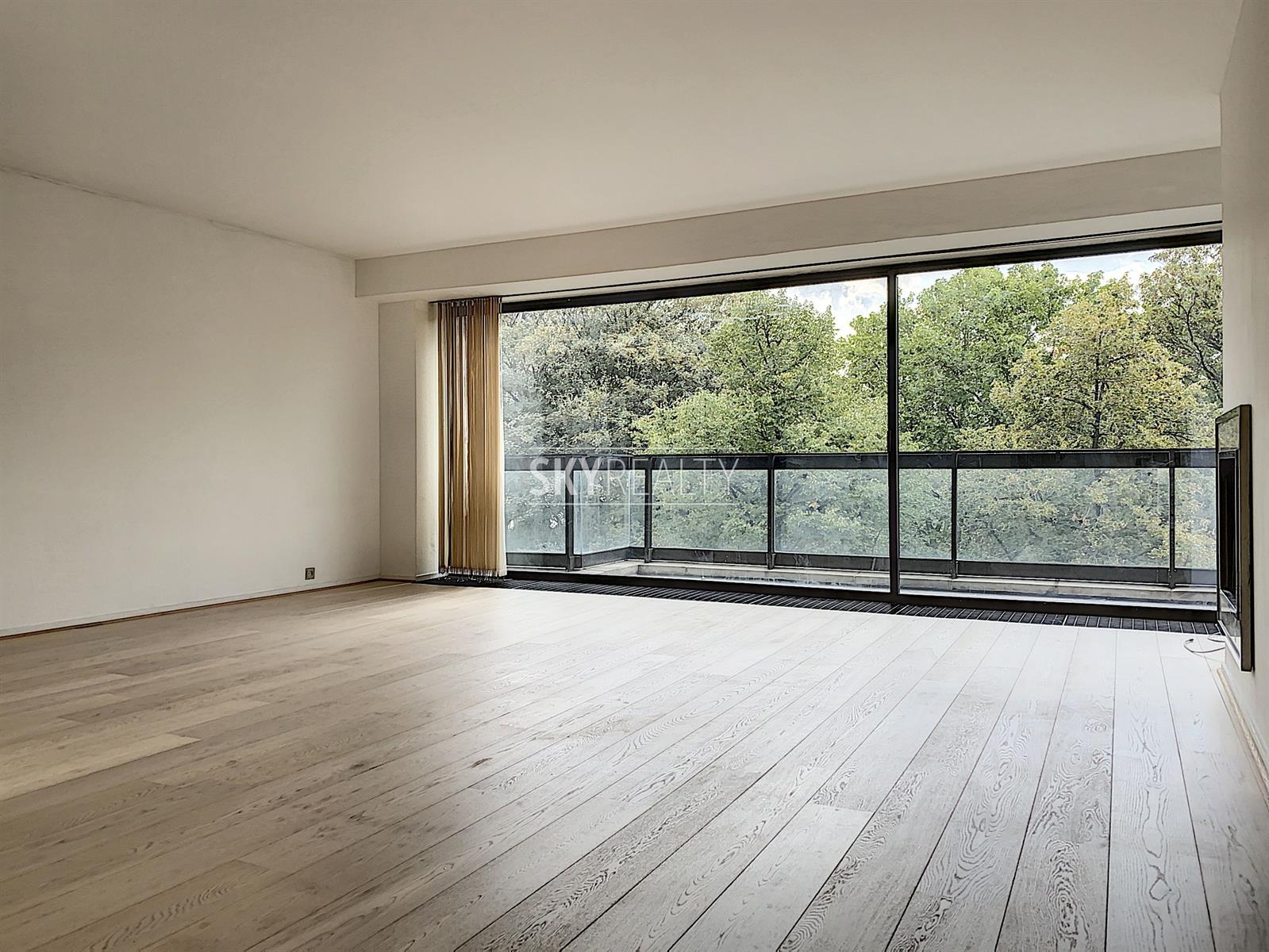 SCHUMAN / EUROPEAN QUARTER / CINQUANTENAIRE: This beautiful 2 bedroom apartment of 140 sqm on the 5th floor of a luxury residence will enchant you with its location on the edge of the park, its lovely views, its brightness (southern exposure) and its attractive price. It offers: an entrance hall with cloakroom, a guest toilet, a large living room of 50 m² (with open fire) facing south, a terrace (facing south) with lovely views of the park, a fully equipped kitchen (fridge - hob ceramic hob - hood - oven - microwave - dishwasher), a night hall, two bedrooms (14 and 10 sqm / dressing room / access to the rear terrace), two bathrooms (bath / shower / sink / toilet / bidet & bath / shower / sink / washing machine included), cupboards, cellar and a parking. In the immediate vicinity of European Institutions, transport (metro, bus, Stib Airport Line and train station), services and all facilities (shops, supermarkets, restaurants, cafes, banks, etc.). Superb location on the edge (south side) of the Parc du Cinquantenaire. Very bright. Luxury building. Rent: € 1400 (non-negotiable) + Parking € 100 (option) + € 300 for charges (provision for water, heating and common areas). Free immediately. Info & visits: David: 0495 511 555.