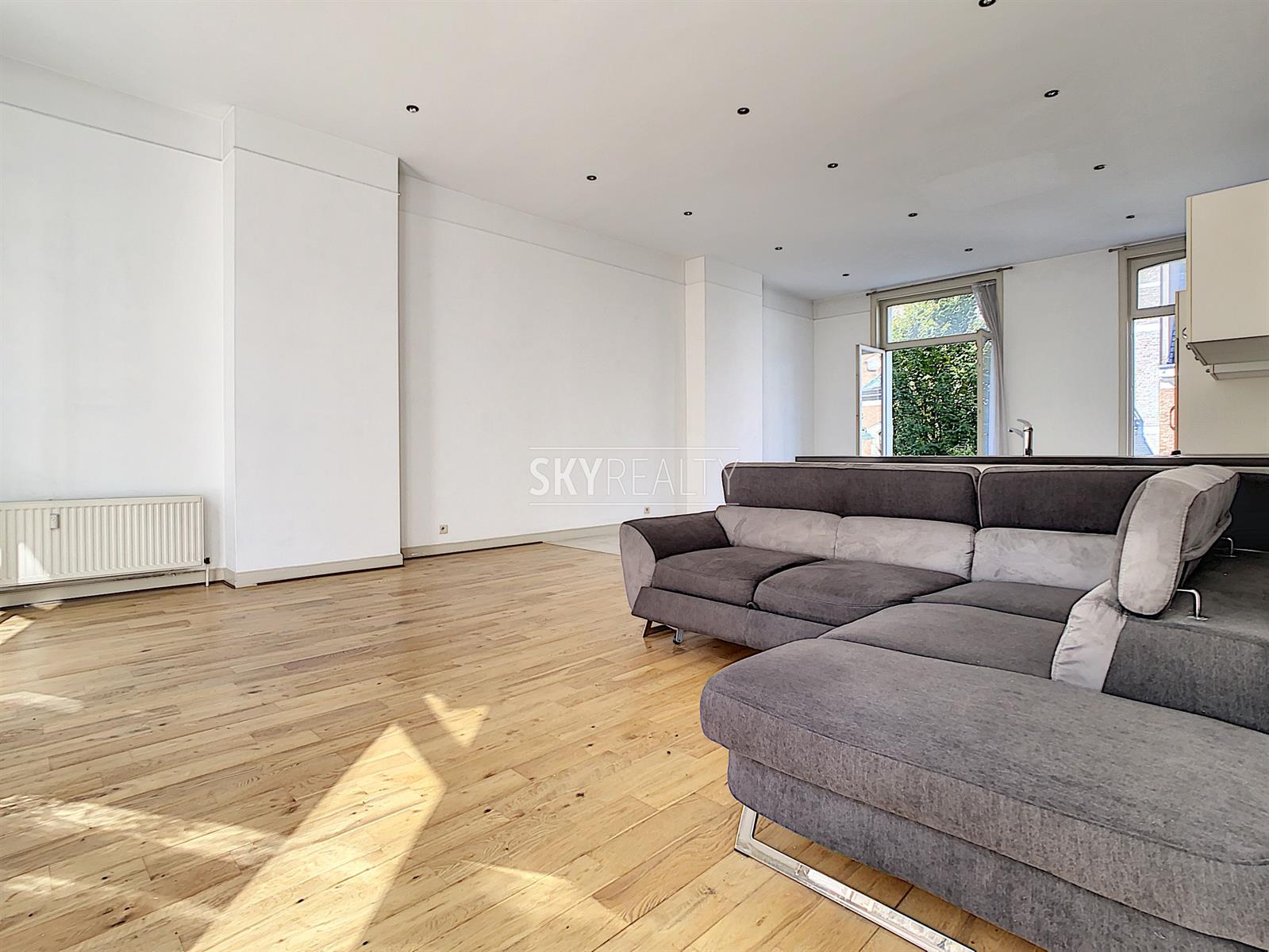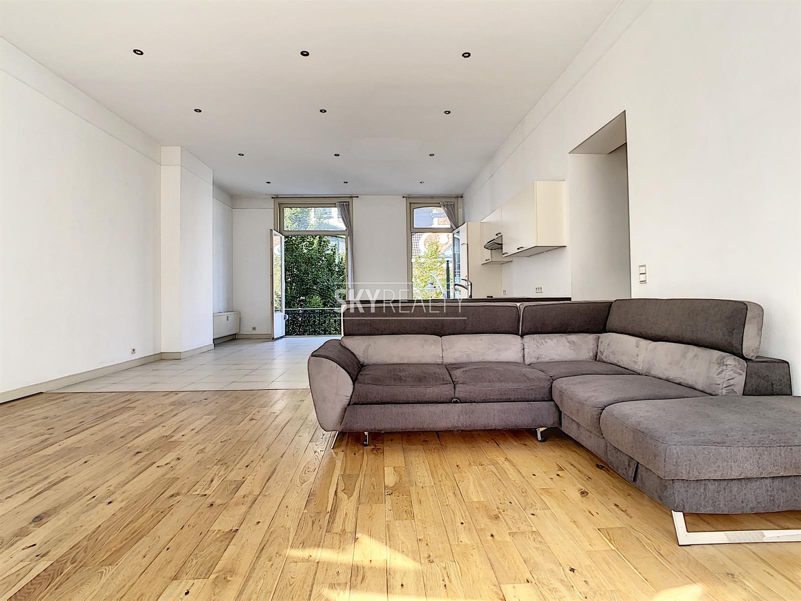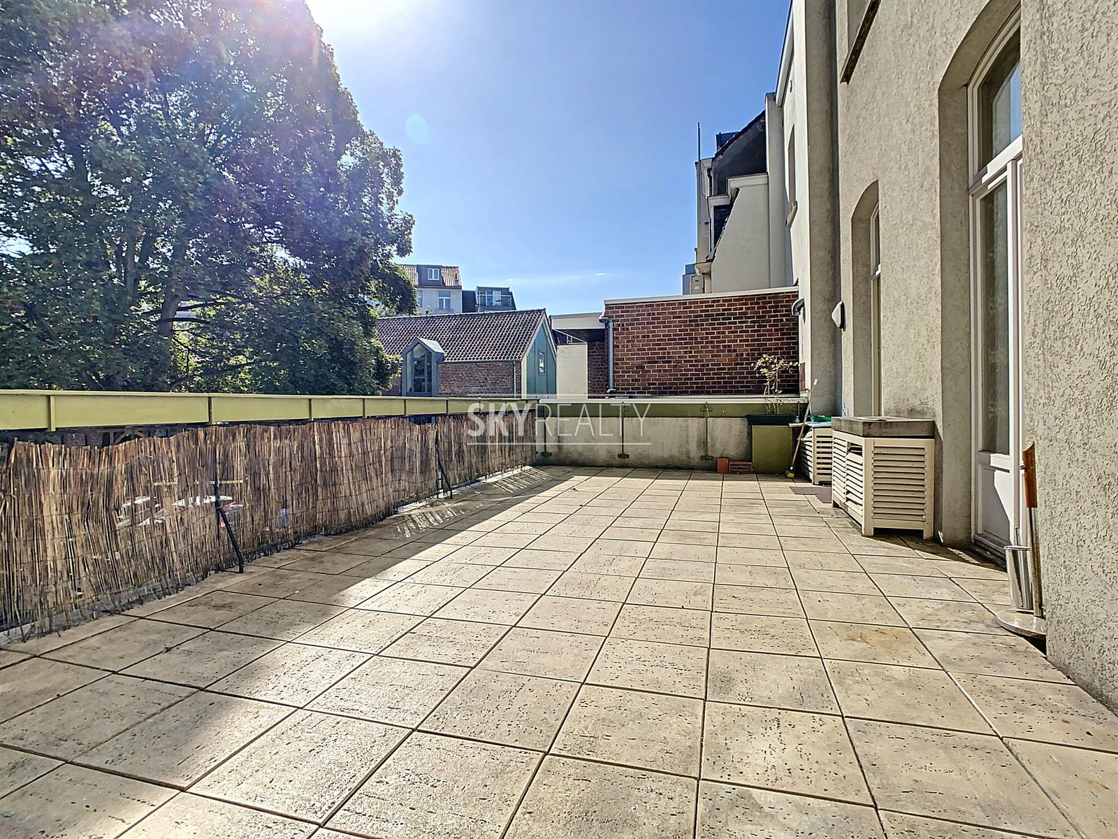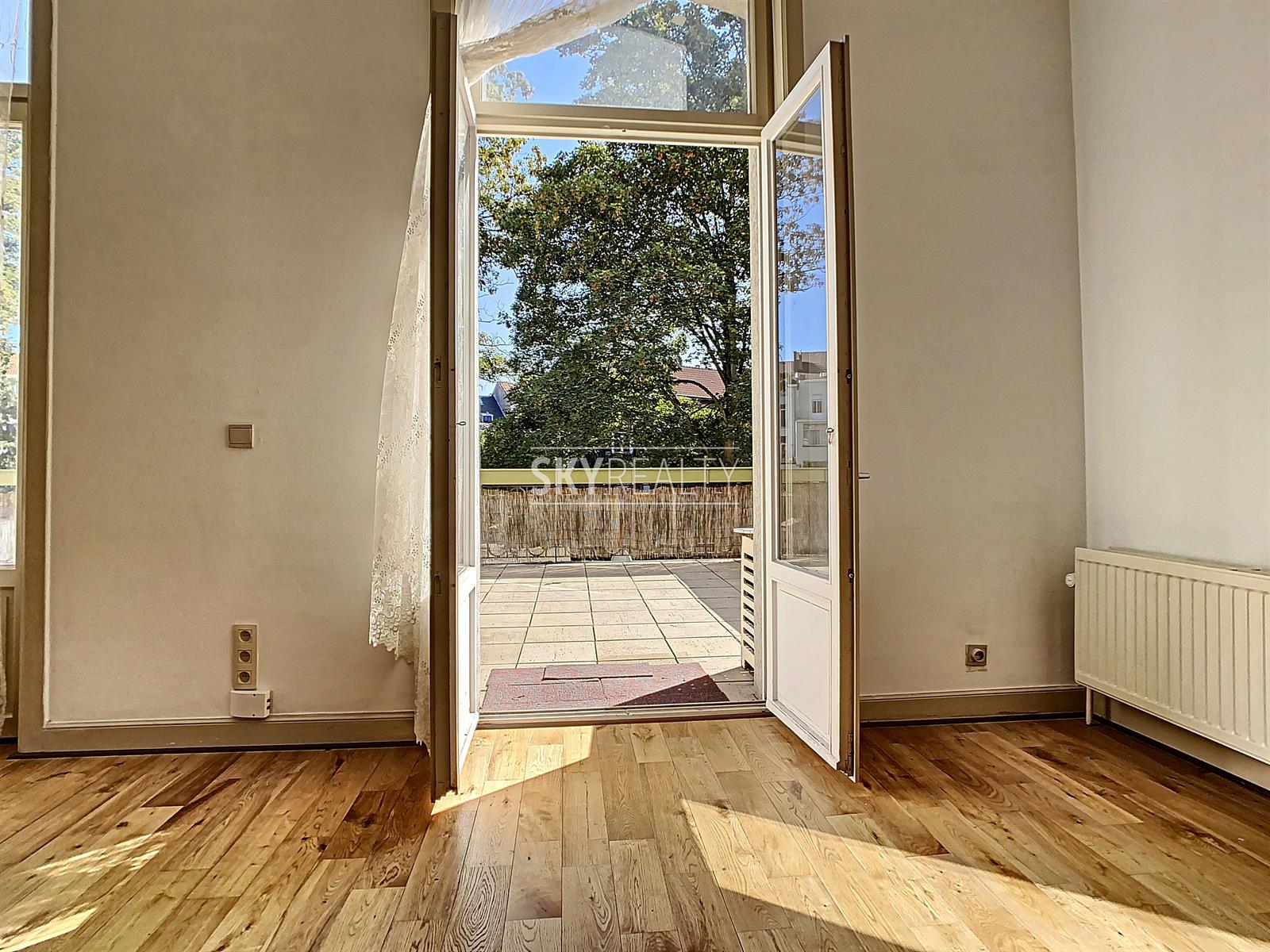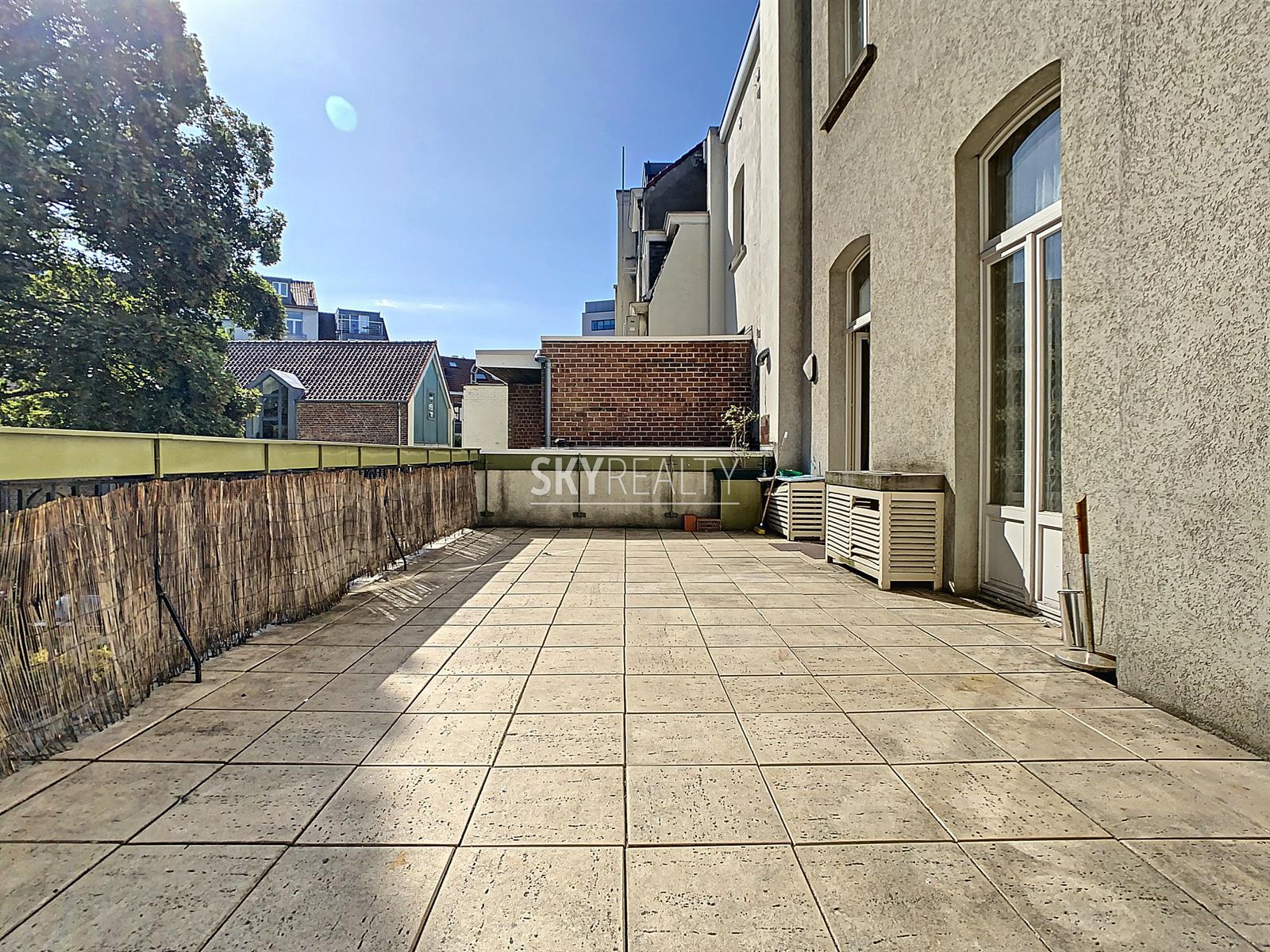 SCHUMAN / EUROPEAN QUARTER: !!! FLATSHARING AUTHORIZED !!! This splendid 2 bedroom apartment of 120 sqm on the 1st floor (no elevator) of a pretty townhouse will enchant you with its huge terrace and its ideal location near the metro, shops and all facilities. It offers: an entrance hall, a spacious living room of 60 sqm with access to two balconies on the front facade and a magnificent sunny terrace of 50 sqm on the back facade, a fully equipped open kitchen (fridge, ceramic hob, extractor, oven, washing dishwasher), two bedrooms (20 and 16 sqm with wardrobe), two adjoining bathrooms, two toilets, access to a laundry room (not equipped). Hight ceilings, very beautiful volumes, double glazing and wooden floor. Prime location 300m from Schuman, near transport (metro, bus, trains) and all services (shops, supermarkets, restaurants). Parc du Cinquantenaire 3 min. walk away. Easy access to highways. Rent € 1200 + € 150 provision for charges (common areas, hot water, cold water, heating). Free immediately. Info: David: 0495 511 555.