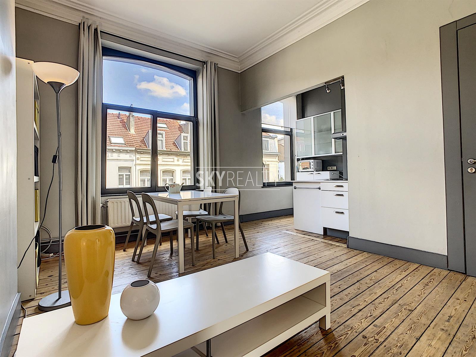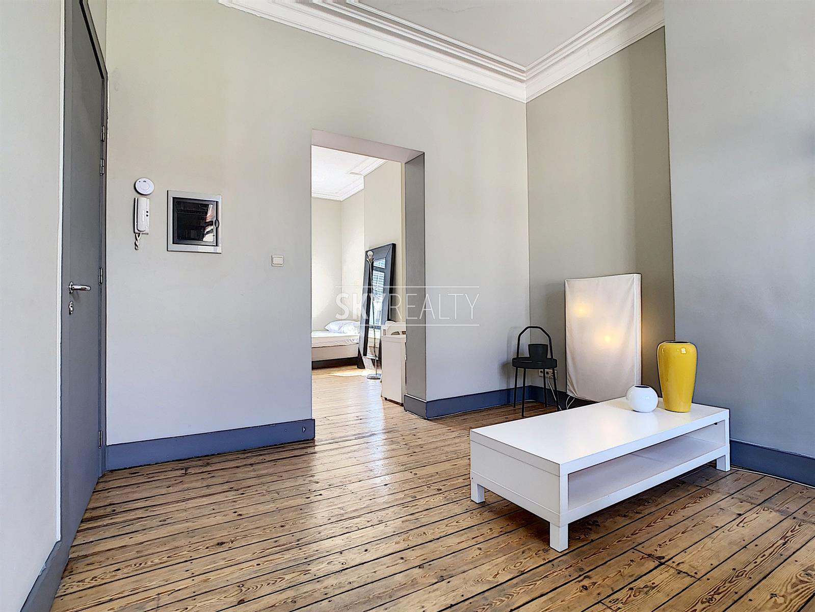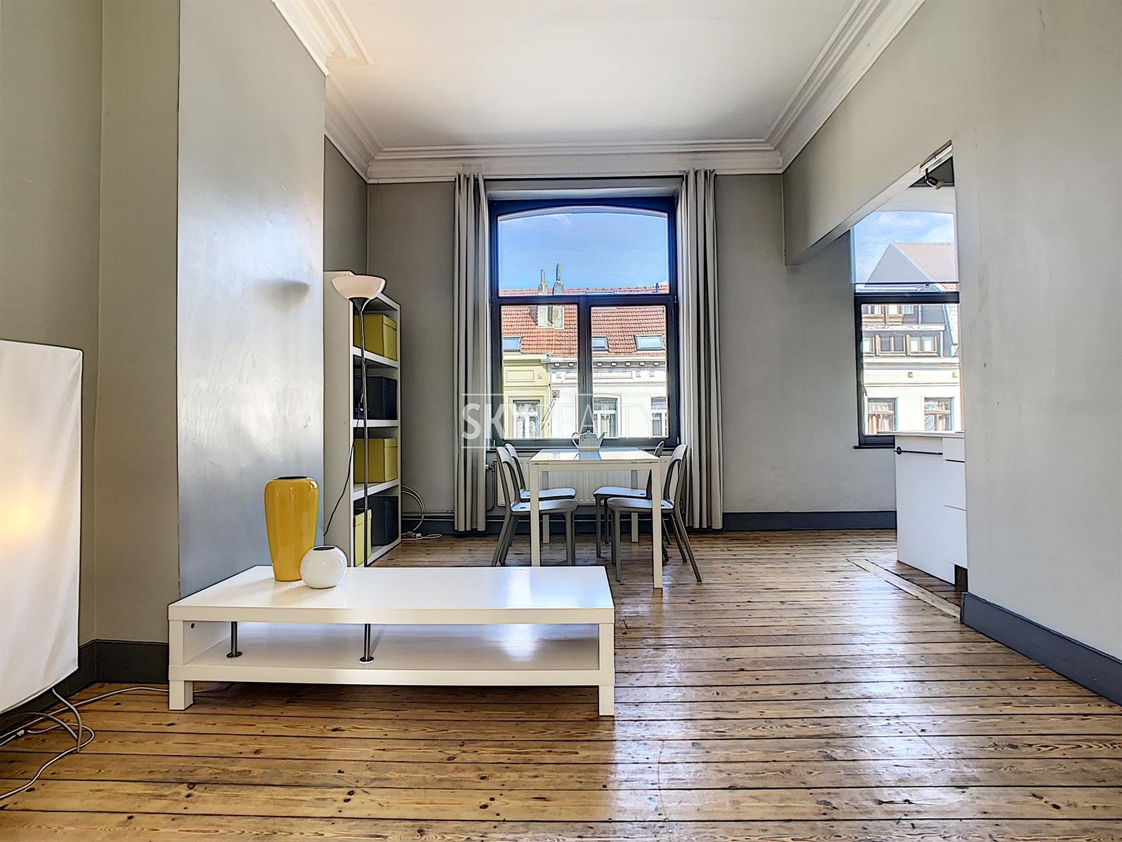 SCHUMAN | EUROPEAN QUARTER: Beautiful fully furnished 1 bedroom apartment of ± 55 sqm located on the second floor (no lift) of a beautiful mansion dating from 1899. This apartment is composed as follows: a bright living room (pleasant view of the street Archimède), an open equipped kitchen (ceramic hob, fridge, oven, etc.), a bedroom, 1 bathroom (shower, sink and WC). High ceilings, moldings, wood floors, double glazing. Fully furnished (iron and ironing board, vacuum cleaner, sheets, plates, cutlery, kitchen utensils, etc.). Washing machine accessible in the basement. A bright and pleasant apartment enjoying a perfect location 200m from Schuman (Metro - Station - Taxis - Villo - Cambio - STIB Airport Line) with all services nearby: cafes, restaurants, small shops, supermarkets, banks, pharmacies, post office, fitness and medical center, etc. Easy access to major motorways. The Parc du Cinquantenaire is a 2 minute walk away. Rent € 850 + € 80 charges (provision for water, gas central heating, maintenance of common areas, electricity and internet via wifi is free). Electricity of the apartment to be paid by the lessee. Info & Visits: send an email using the *** contact by email *** button on the ad.