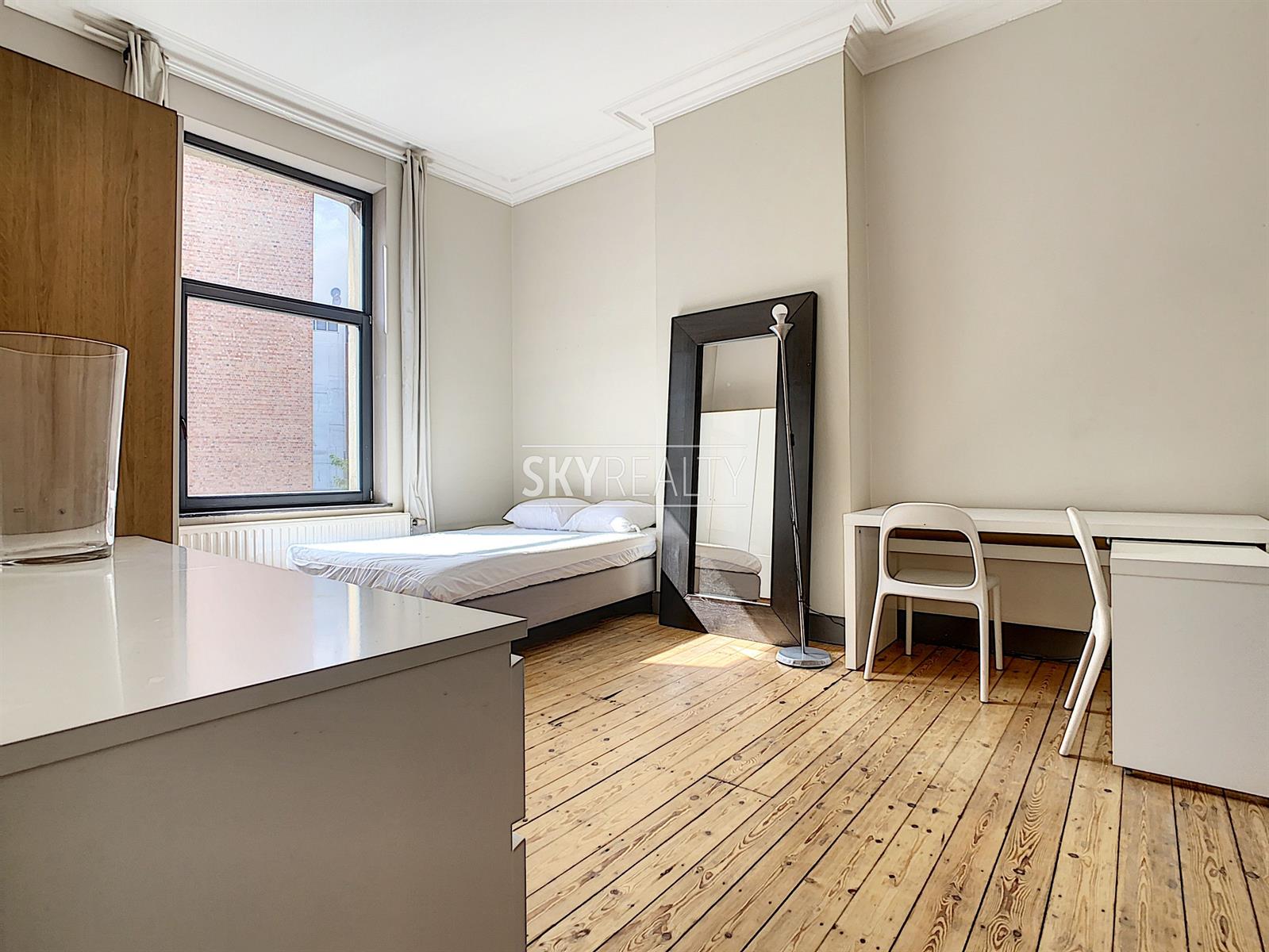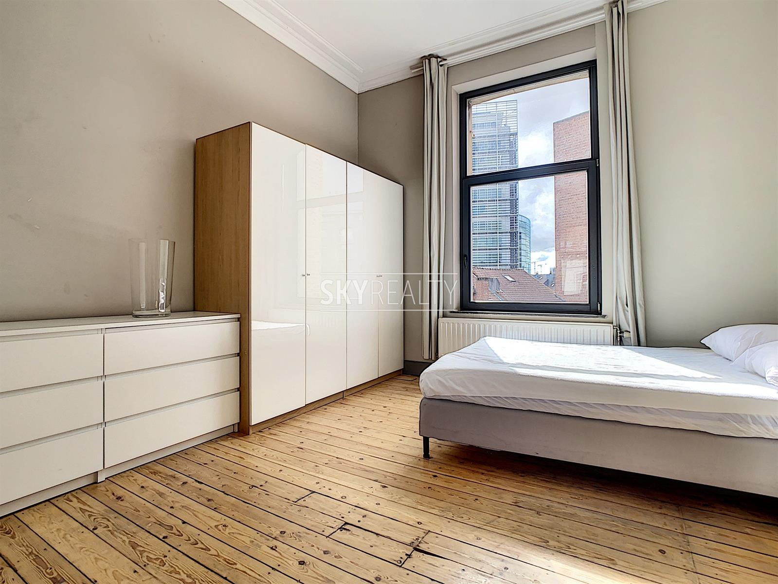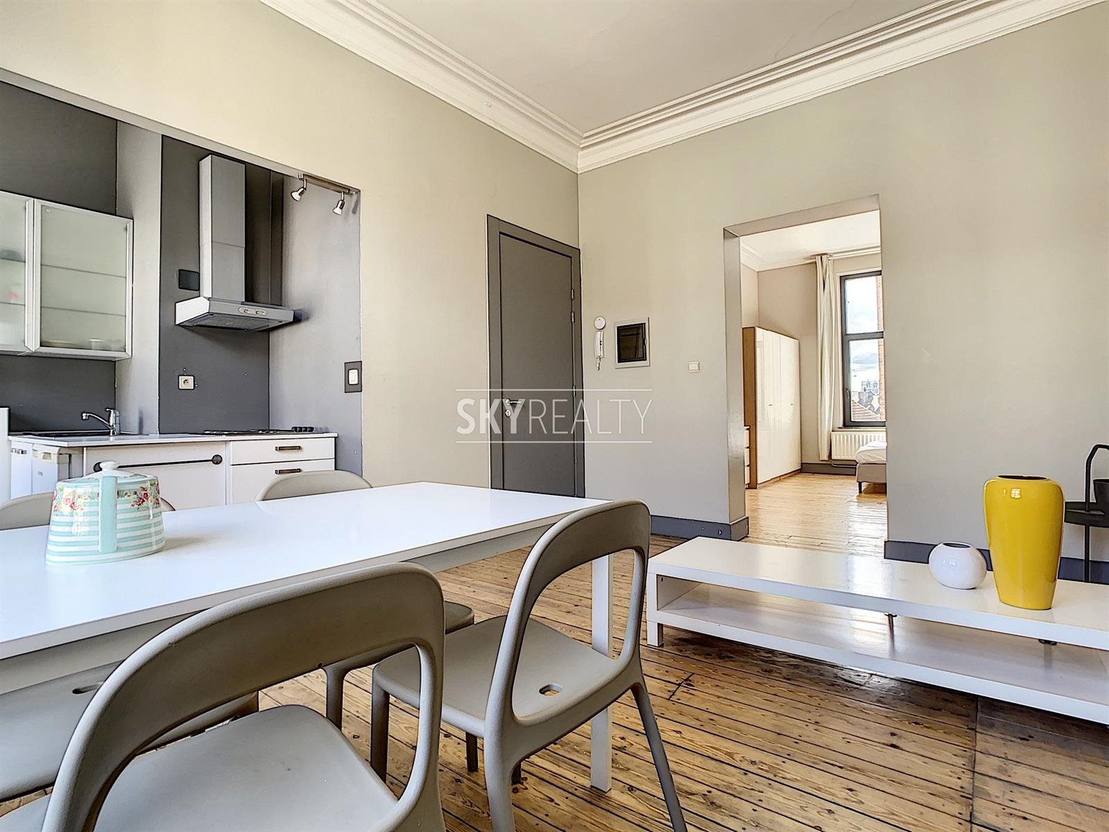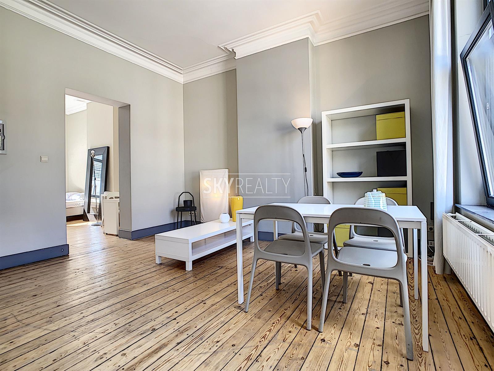 SCHUMAN | EUROPEAN QUARTER: Beautiful fully furnished 1 bedroom apartment of ± 55 sqm located on the second floor (no lift) of a beautiful mansion dating from 1899. This apartment is composed as follows: a bright living room (pleasant view of the street Archimède), an open equipped kitchen (ceramic hob, fridge, oven, etc.), a bedroom, 1 bathroom (shower, sink and WC). High ceilings, moldings, wood floors, double glazing. Fully furnished (iron and ironing board, vacuum cleaner, sheets, plates, cutlery, kitchen utensils, etc.). Washing machine accessible in the basement. A bright and pleasant apartment enjoying a perfect location 200m from Schuman (Metro - Station - Taxis - Villo - Cambio - STIB Airport Line) with all services nearby: cafes, restaurants, small shops, supermarkets, banks, pharmacies, post office, fitness and medical center, etc. Easy access to major motorways. The Parc du Cinquantenaire is a 2 minute walk away. Rent € 850 + € 80 charges (provision for water, gas central heating, maintenance of common areas, electricity and internet via wifi is free). Electricity of the apartment to be paid by the lessee. Info & Visits: send an email using the *** contact by email *** button on the ad.