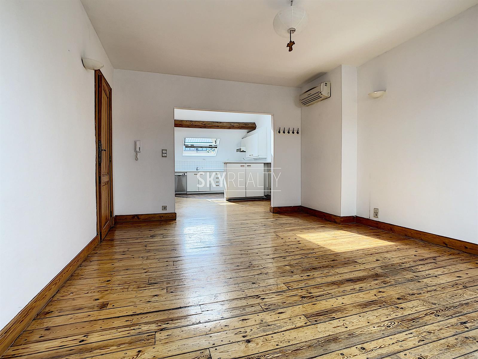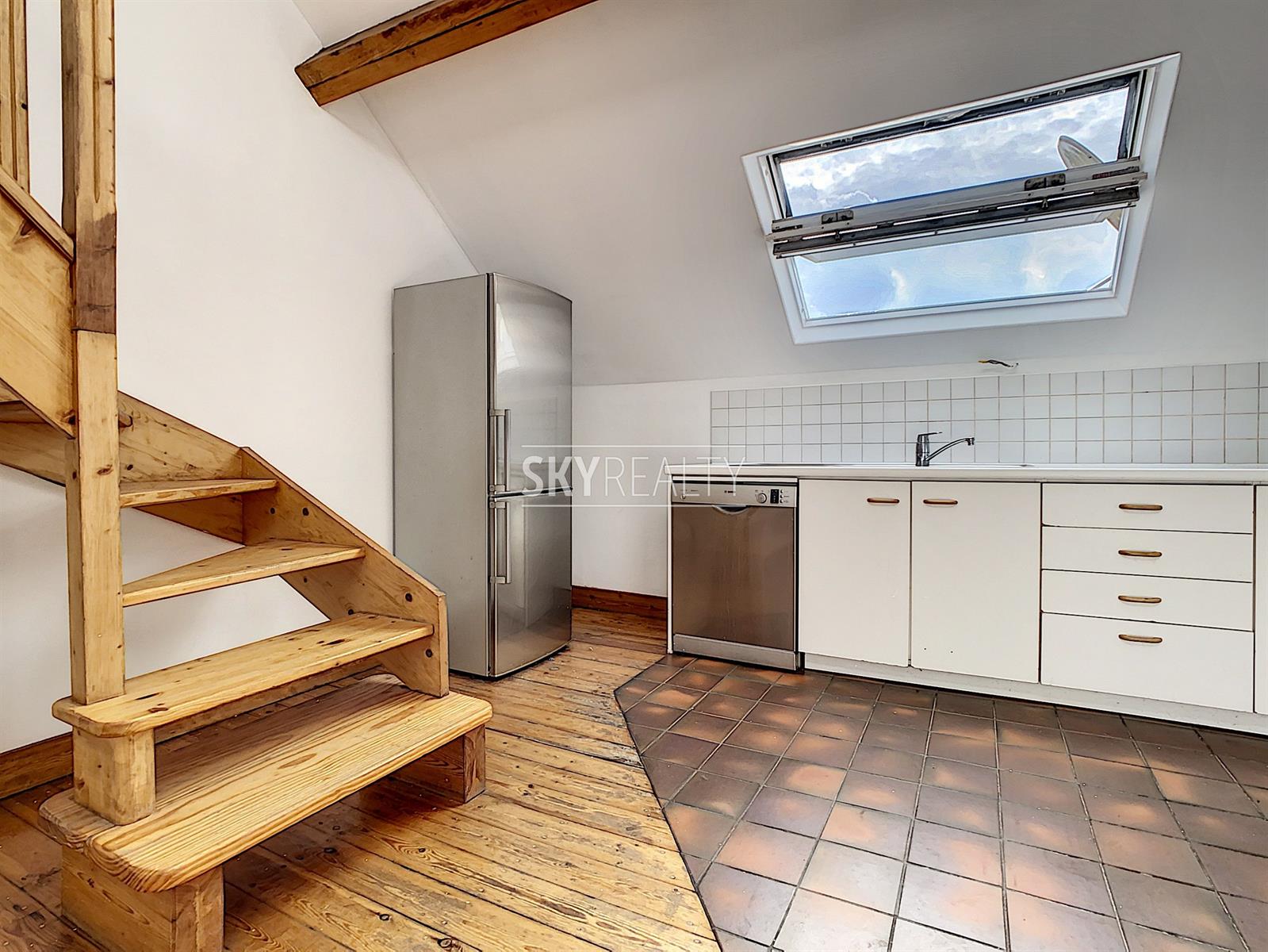 SCHUMAN | EUROPEAN DISTRICT: ideally located 300m from the Rond-point Schuman, this pleasant unfurnished 2-bedroom duplex apartment of ± 90 sqm located on the 4th and top floor (no elevator) of a beautiful mansion from 1902 will enchant you for its excellent quality / price ratio. It includes: a spacious and bright living room of ± 25 sqm with a large fully equipped kitchen (large fridge-freezer, ceramic hob, extractor, oven, dishwasher and washing machine), 1 bedroom (± 12 sqm); upstairs: a second bedroom (± 10 sqm), 1 bathroom (bath, sink) and separate toilet. No cellar. Parking possible for two bicycles in the hall on the ground floor. Perfect location 300m from Schuman (Metro - Station - Taxis - Villo - Cambio - STIB Airport Line) with all facilities and services nearby. Easy access to highways. Parc du Cinquantenaire 3 min. walk. Free immediately. Rent: € 850 + € 100 (provision for water and heating). No common charge and the internet (wifi) is offered free of charge! Electricity of the apartment to be paid by the lessee. Colocation accepted. Excellent value for money! But beware, the apartment is on the 4th floor of a large mansion and there is no elevator! Only for athletes! Info & Visits: David: please contact us only by using the *** contact by email *** button on the advertisement (no calls please).