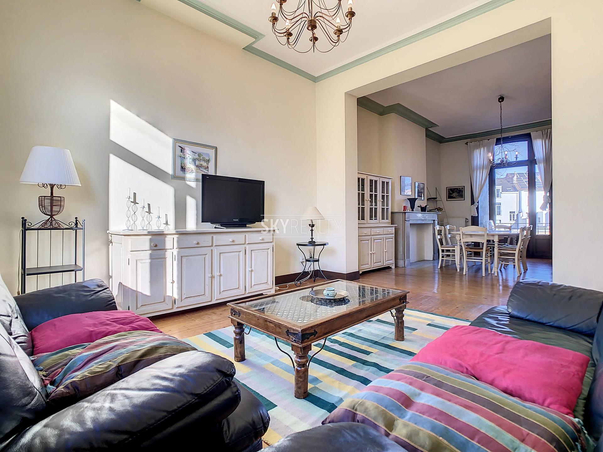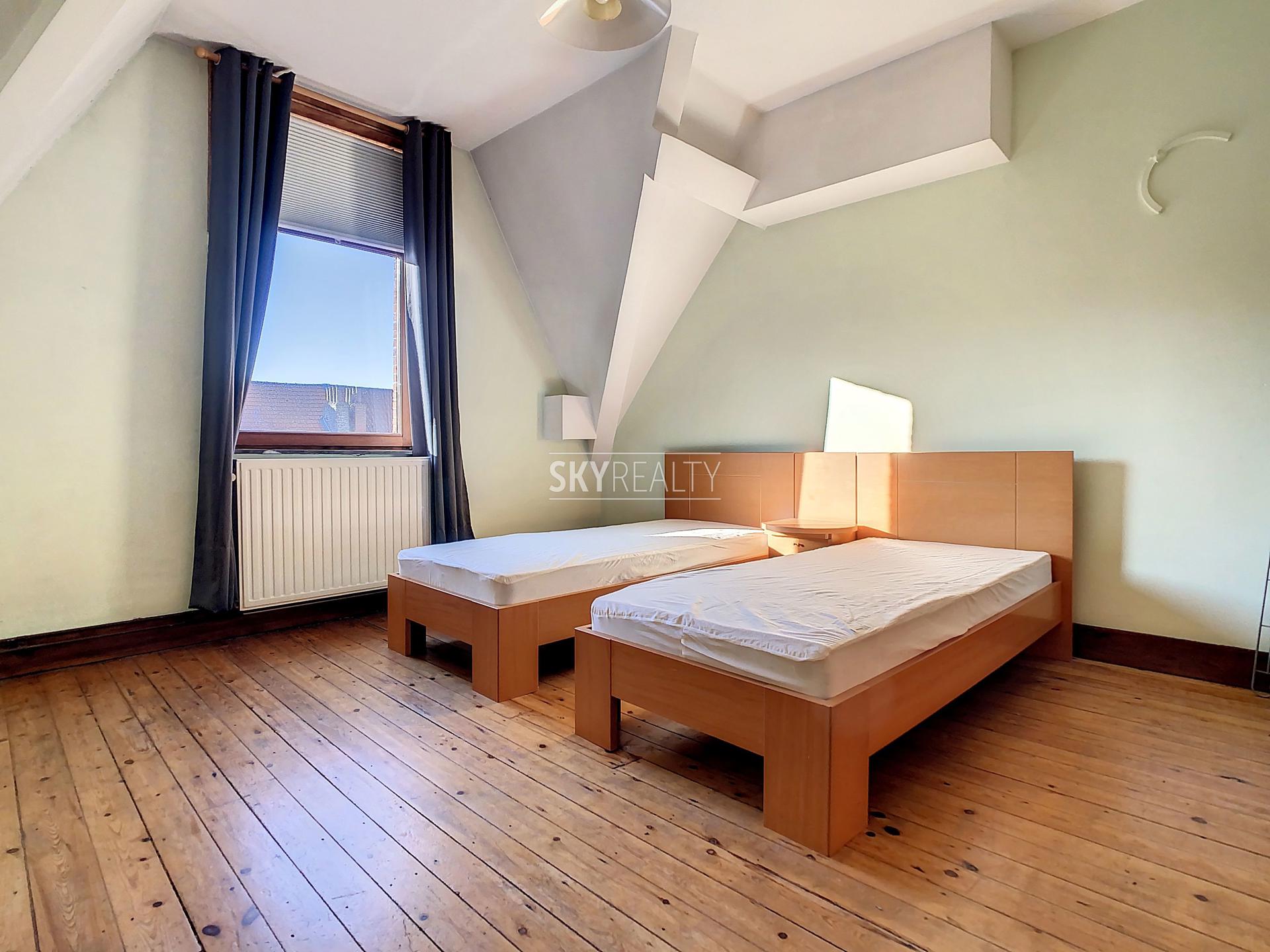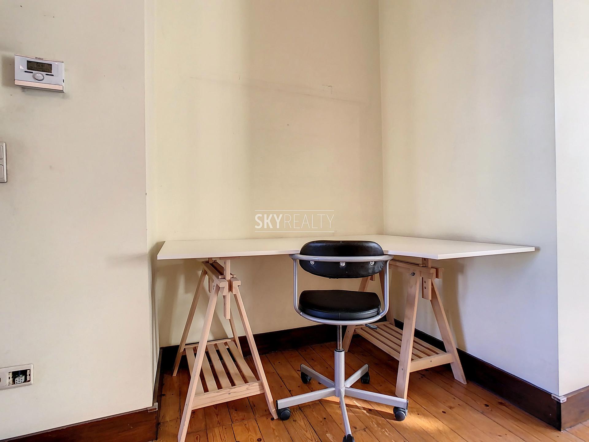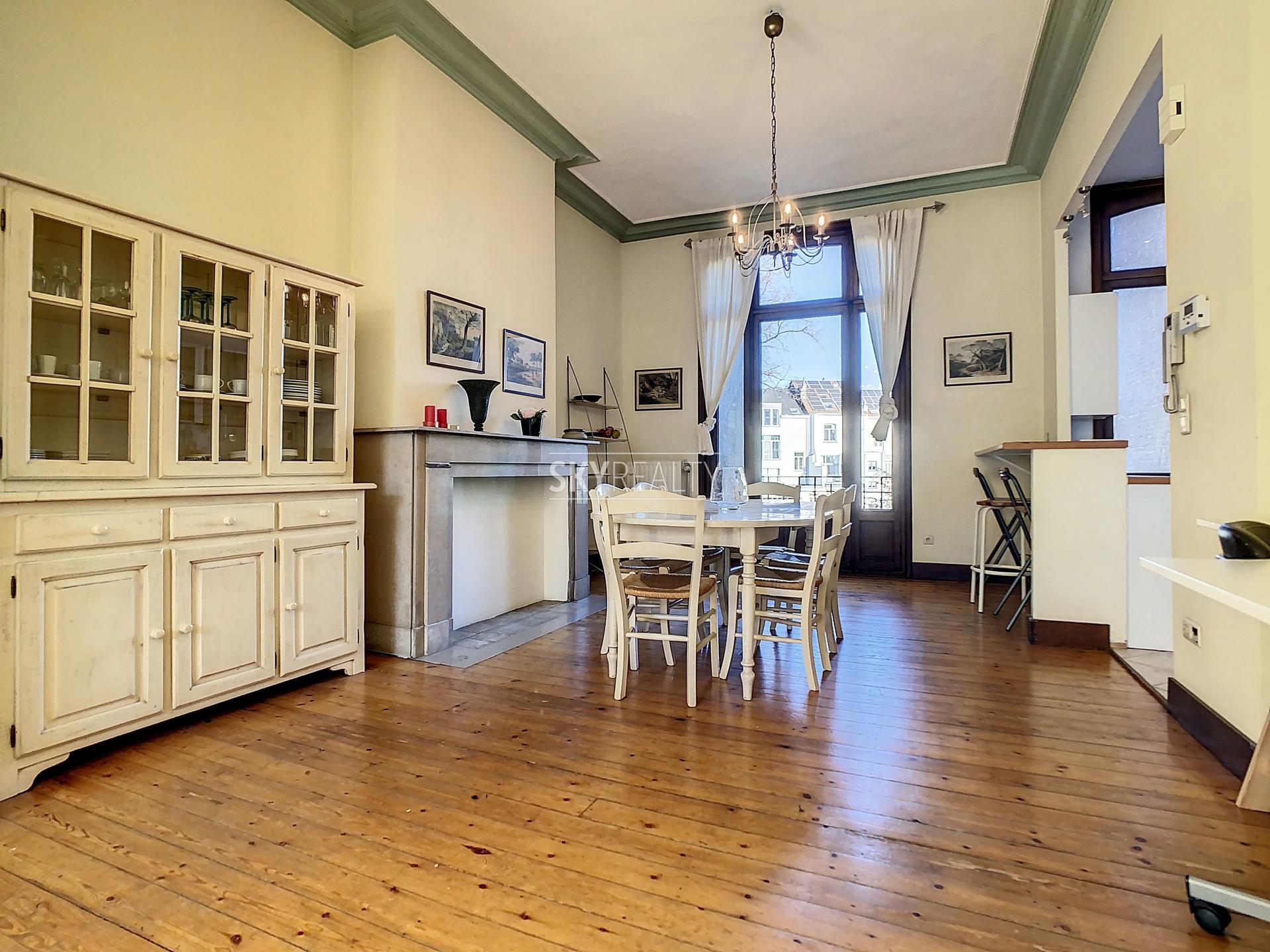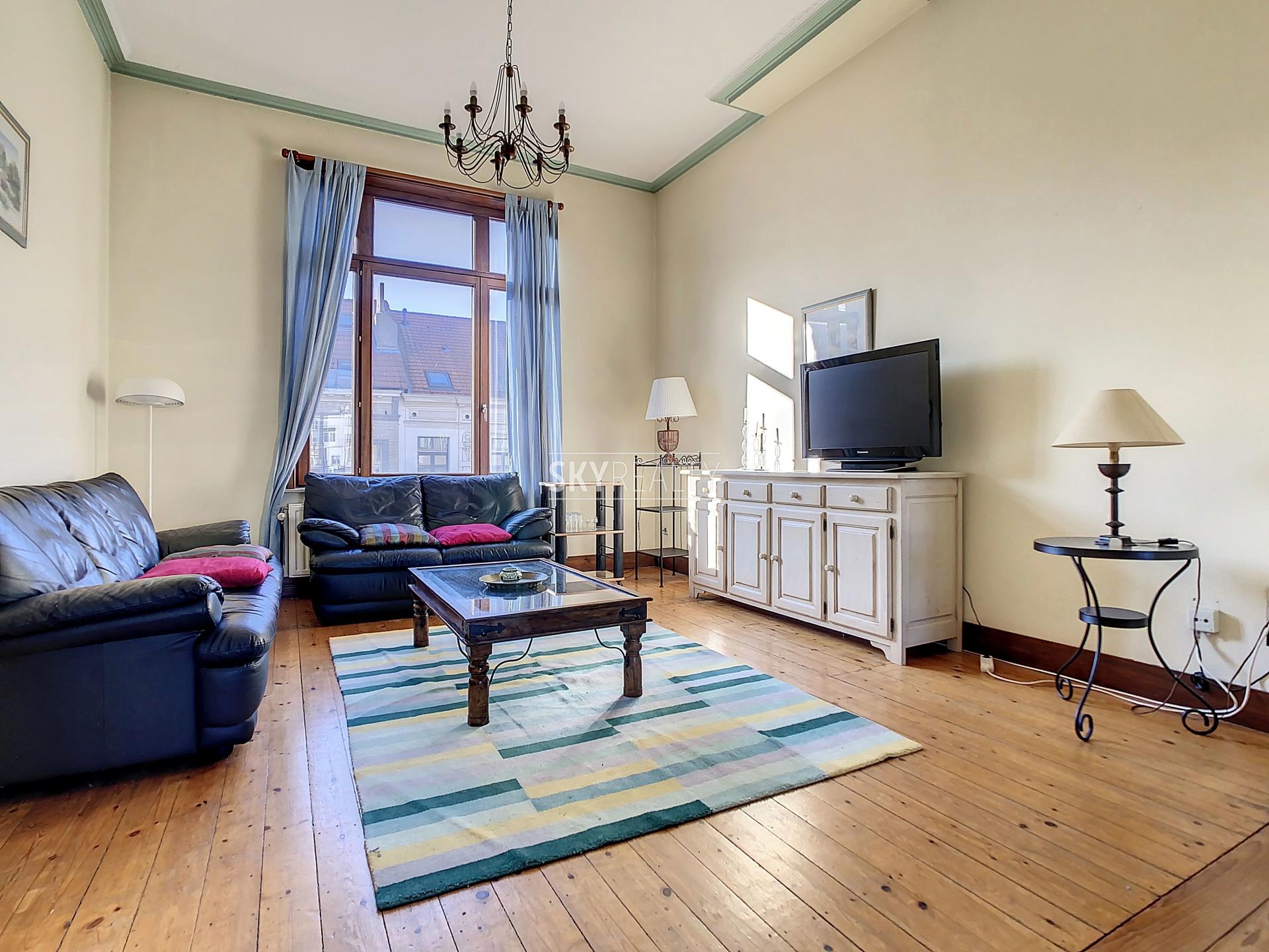 SHUMAN | EUROPEAN DISTRICT: Sky Realty is pleased to present to you exclusively this magnificent fully furnished duplex apartment (2 bedrooms / 1 bathroom) of ± 130 sqm on the 3rd and 4 floors (top floors with elevator) of a beautiful mansion. It offers: on the 3rd floor: a bright living room with dining area and office area, a super-equipped American kitchen (oven, gas hob, extractor, fridge, dishwasher), large cupboard; on the 4th and last floor: 2 large bedrooms, 1 bathroom (bath, shower, double sink) and a separate WC. Nice view. An apartment with character: high ceilings, moldings, marble fireplace, period wooden floors, etc. Double glazing. Well fully furnished (beds, sofas, iron and ironing board, vacuum cleaner, sheets, plates, cutlery, cooking utensils, coffee maker, toaster, etc.). A bright and pleasant duplex enjoying a perfect location 300m from Schuman (Metro - Bus - Station - STIB Airport Line - Cambio - Villo) with all services nearby: cafes, restaurants, shops, supermarkets , pharmacies, post office, fitness and medical center, etc. Easy access to major highways. Parc du Cinquantenaire 3 min. walk. Rent € 1,475 € + € 95 of charges (45 € provision for water and 50 € fixed price for the common areas with the lift). Gas (individual boiler), electricity and internet payable by the lessee. Individual gas and electricity meters. Free immediately. Minimum 1 year lease. Visits: Please send a message via the *** Contact by e-mail *** button visible on the ad web page.