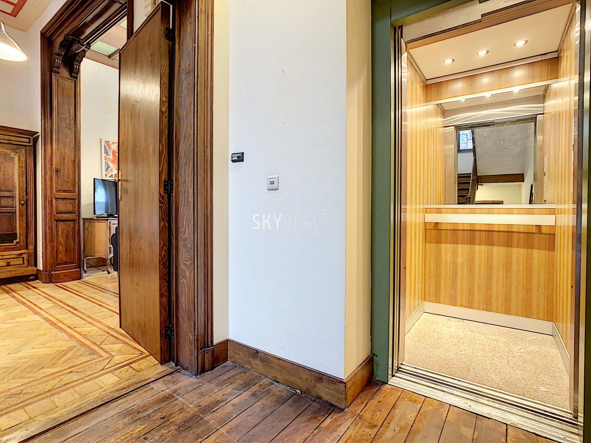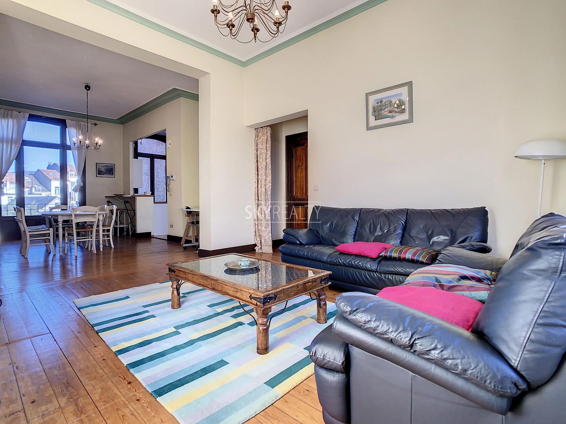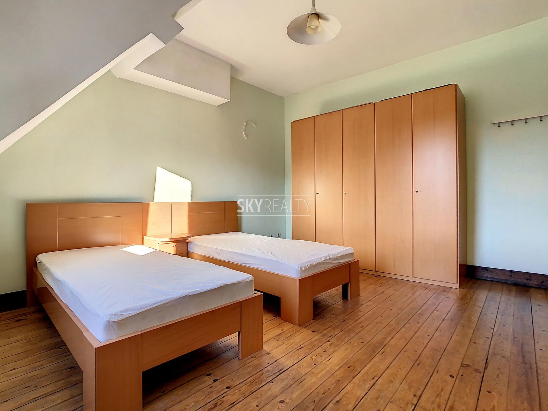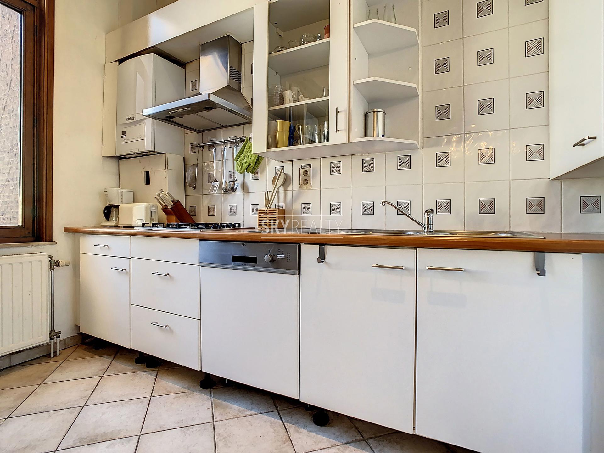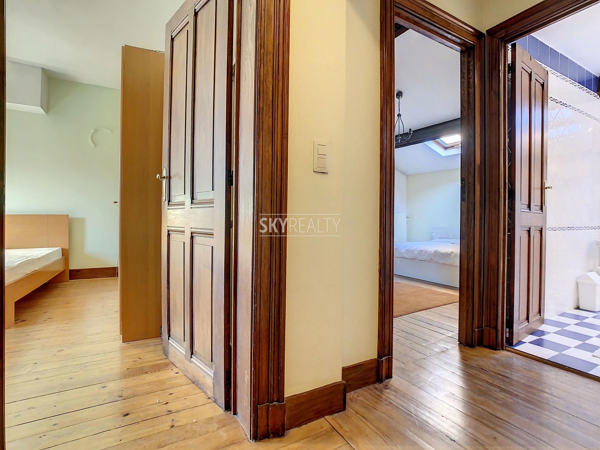 SHUMAN | EUROPEAN DISTRICT: Sky Realty is pleased to present to you exclusively this magnificent fully furnished duplex apartment (2 bedrooms / 1 bathroom) of ± 130 sqm on the 3rd and 4 floors (top floors with elevator) of a beautiful mansion. It offers: on the 3rd floor: a bright living room with dining area and office area, a super-equipped American kitchen (oven, gas hob, extractor, fridge, dishwasher), large cupboard; on the 4th and last floor: 2 large bedrooms, 1 bathroom (bath, shower, double sink) and a separate WC. Nice view. An apartment with character: high ceilings, moldings, marble fireplace, period wooden floors, etc. Double glazing. Well fully furnished (beds, sofas, iron and ironing board, vacuum cleaner, sheets, plates, cutlery, cooking utensils, coffee maker, toaster, etc.). A bright and pleasant duplex enjoying a perfect location 300m from Schuman (Metro - Bus - Station - STIB Airport Line - Cambio - Villo) with all services nearby: cafes, restaurants, shops, supermarkets , pharmacies, post office, fitness and medical center, etc. Easy access to major highways. Parc du Cinquantenaire 3 min. walk. Rent € 1,475 € + € 95 of charges (45 € provision for water and 50 € fixed price for the common areas with the lift). Gas (individual boiler), electricity and internet payable by the lessee. Individual gas and electricity meters. Free immediately. Minimum 1 year lease. Visits: Please send a message via the *** Contact by e-mail *** button visible on the ad web page.