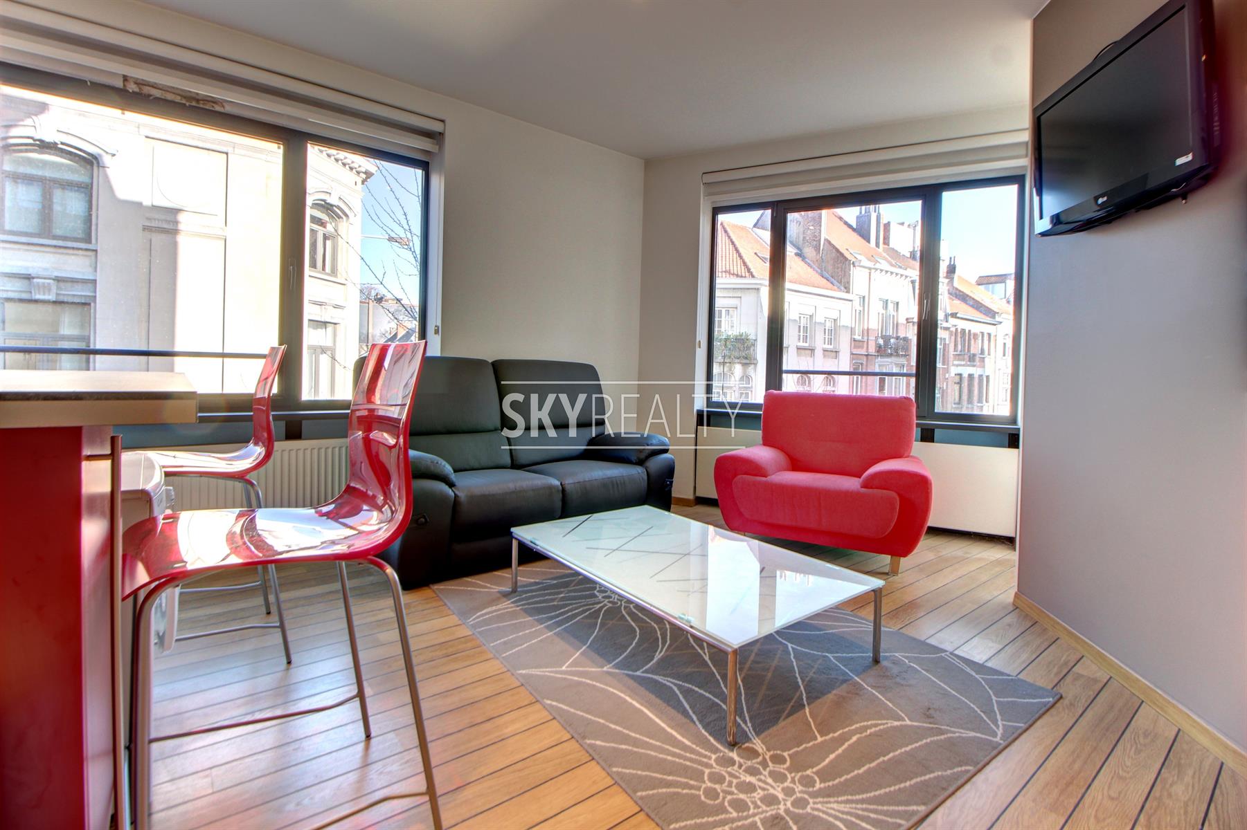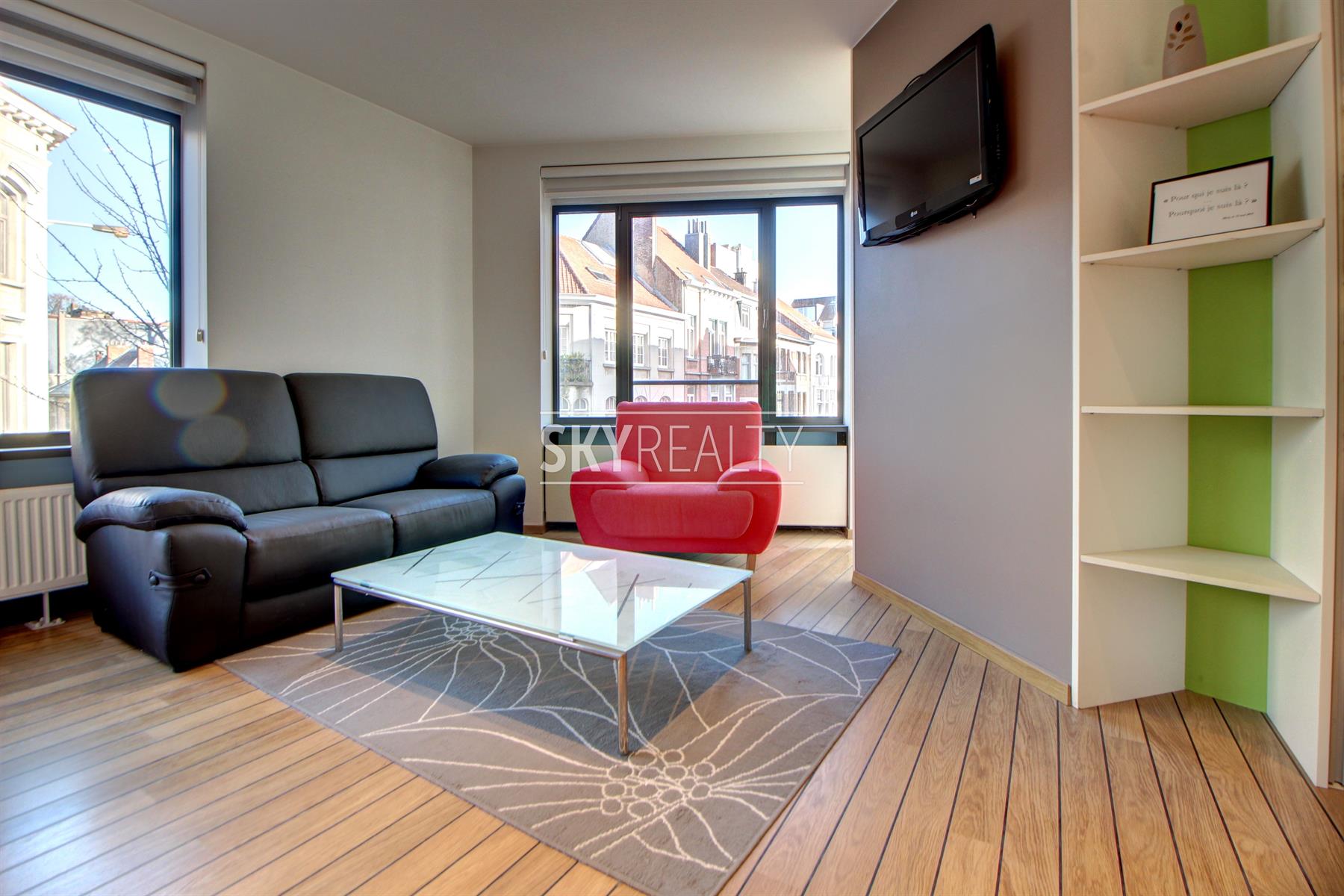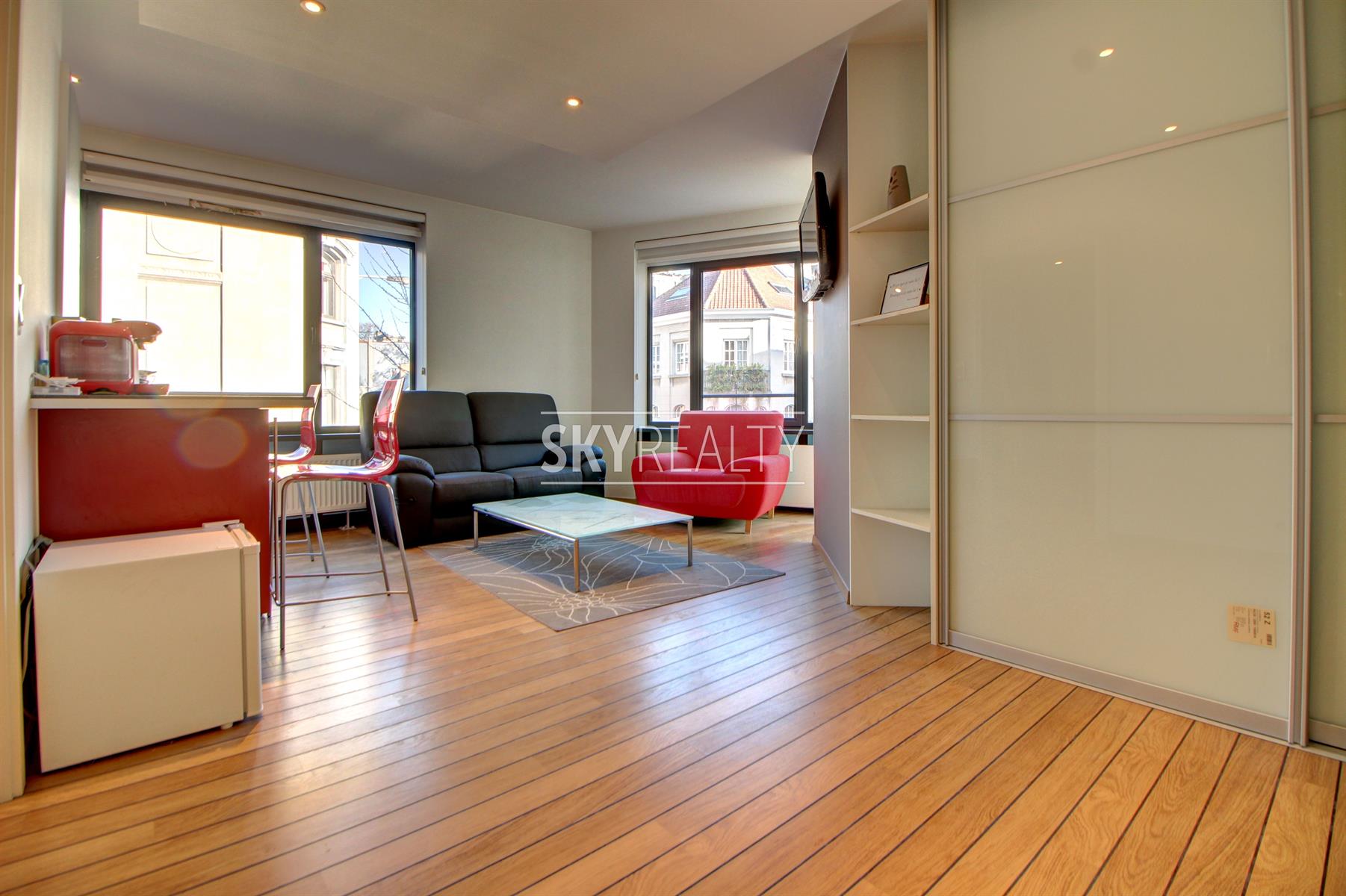 !!! RENTED !!! MONTGOMERY: A lovely and modern fully furnished flat, completely renovated by a interior designer! It offers: a hall with cloakroom and closet, a bright living-room with a fully-equipped american style kitchen (fridge, cooktop, exhaust hood, oven/micro-wave, dish-washer, connection for a washing machine), a corner for the bed (almost a true separate bedroom with custom wardrobe), 1 bathroom (bath/shower, double sink), a separate toilet, a cellar + PARKING space. Beautiful renovations: double glazing and spots everywhere in the ceilings, modern window blind, bar, customs wardrobe and closets, suspended TV unit, etc. Prime Location: Only 2 minutes from Montgomery (Metro - Tram - Merode Train Station - Taxis - Villo - Car sharing - etc.). Close to all amenities (restaurants, bars, supermarket, shops, banks, post office, fitness, schools, parcs, etc.) Only 5 minutes to Cinquantenaire / Jubelpark at 300m. A secure, pleasant, lively area. Rent: 725€ + 100€ for charges (provision for cold/hot water, heating and maintenance of the commun areas) + 100€ for the parking. Available from 1 January 2018. For any further information feel free to contact David : +32 495 511 555.