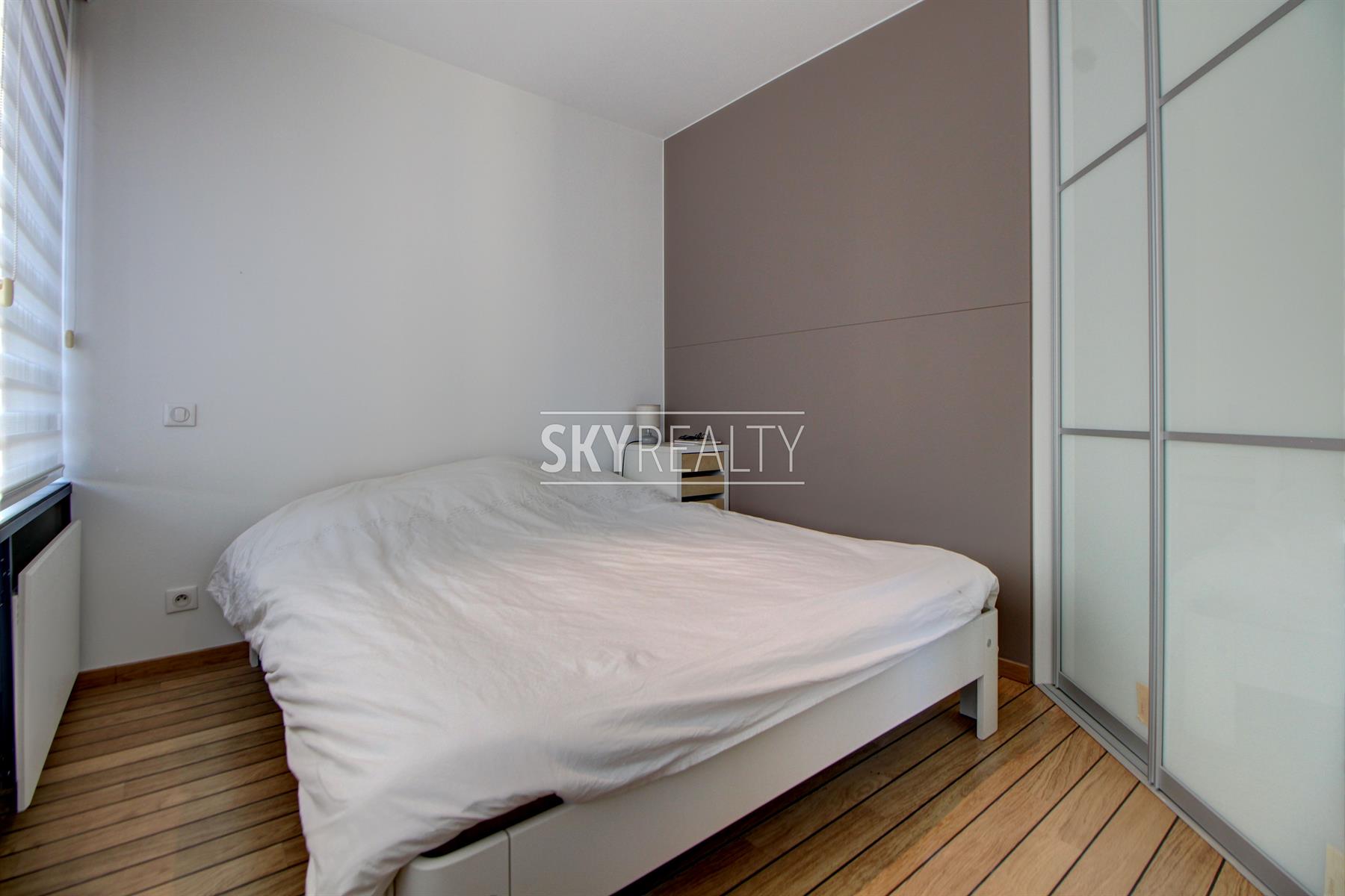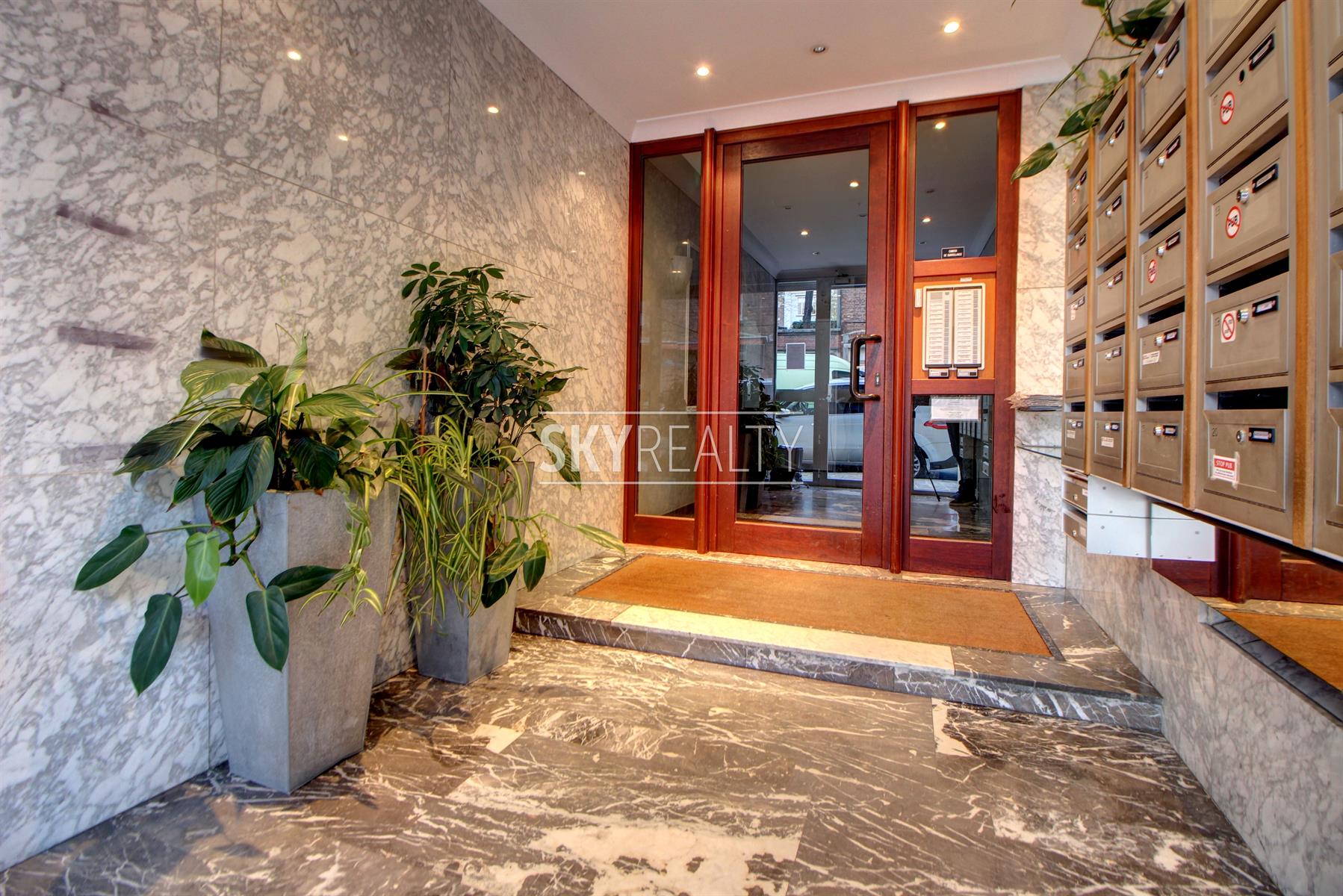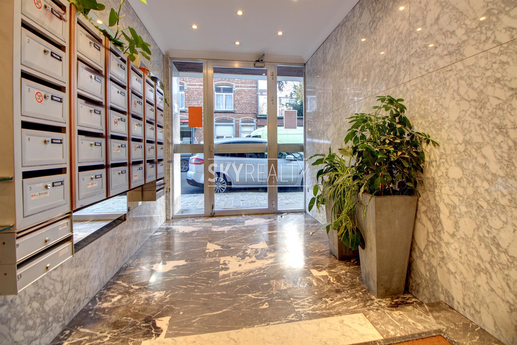 !!! RENTED !!! MONTGOMERY: A lovely and modern fully furnished flat, completely renovated by a interior designer! It offers: a hall with cloakroom and closet, a bright living-room with a fully-equipped american style kitchen (fridge, cooktop, exhaust hood, oven/micro-wave, dish-washer, connection for a washing machine), a corner for the bed (almost a true separate bedroom with custom wardrobe), 1 bathroom (bath/shower, double sink), a separate toilet, a cellar + PARKING space. Beautiful renovations: double glazing and spots everywhere in the ceilings, modern window blind, bar, customs wardrobe and closets, suspended TV unit, etc. Prime Location: Only 2 minutes from Montgomery (Metro - Tram - Merode Train Station - Taxis - Villo - Car sharing - etc.). Close to all amenities (restaurants, bars, supermarket, shops, banks, post office, fitness, schools, parcs, etc.) Only 5 minutes to Cinquantenaire / Jubelpark at 300m. A secure, pleasant, lively area. Rent: 725€ + 100€ for charges (provision for cold/hot water, heating and maintenance of the commun areas) + 100€ for the parking. Available from 1 January 2018. For any further information feel free to contact David : +32 495 511 555.