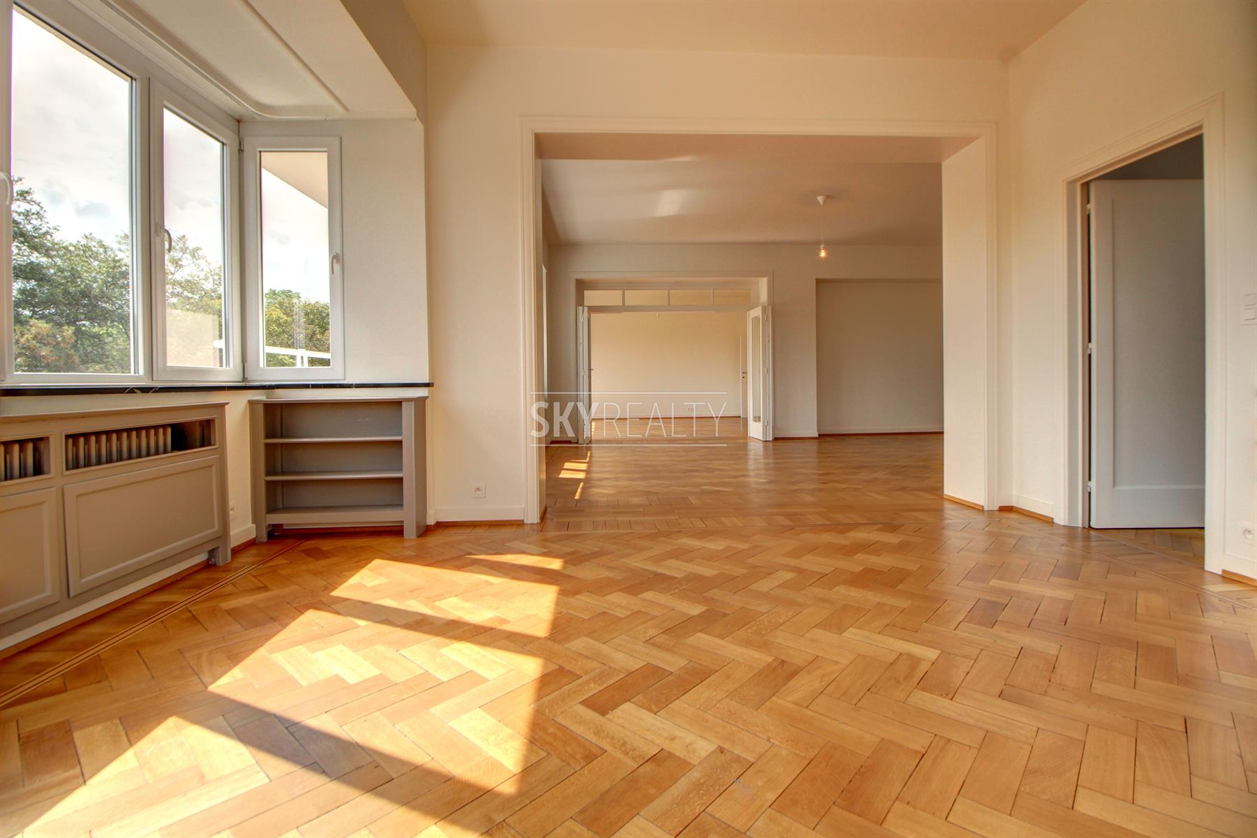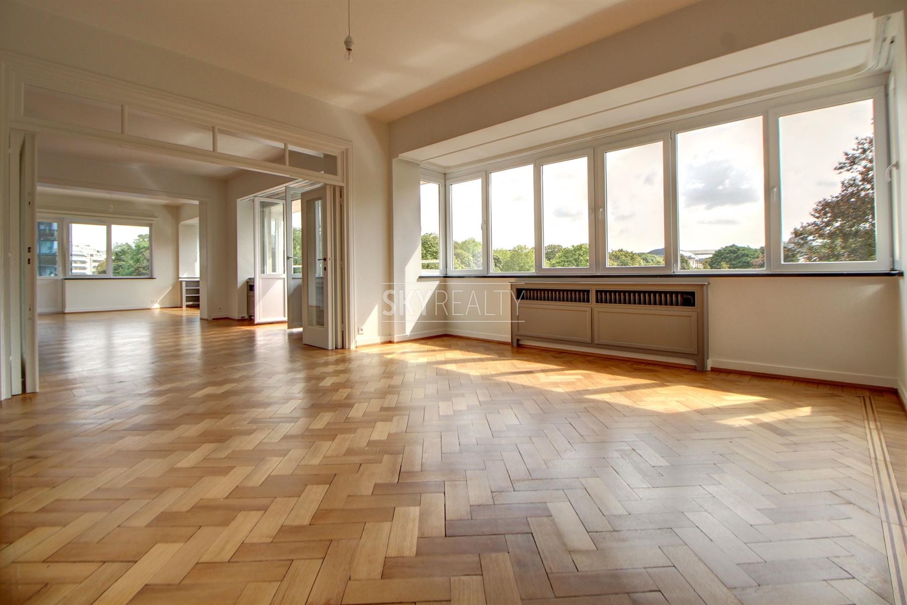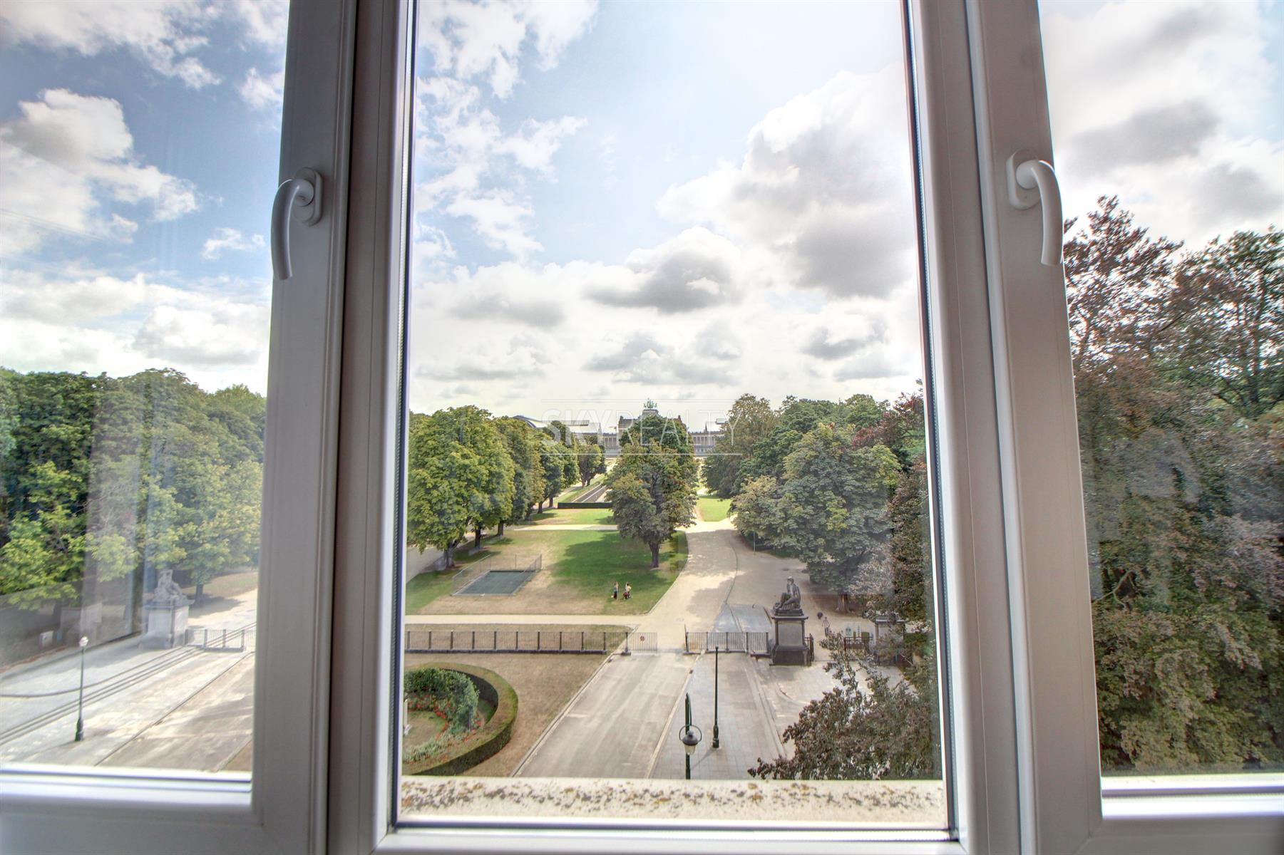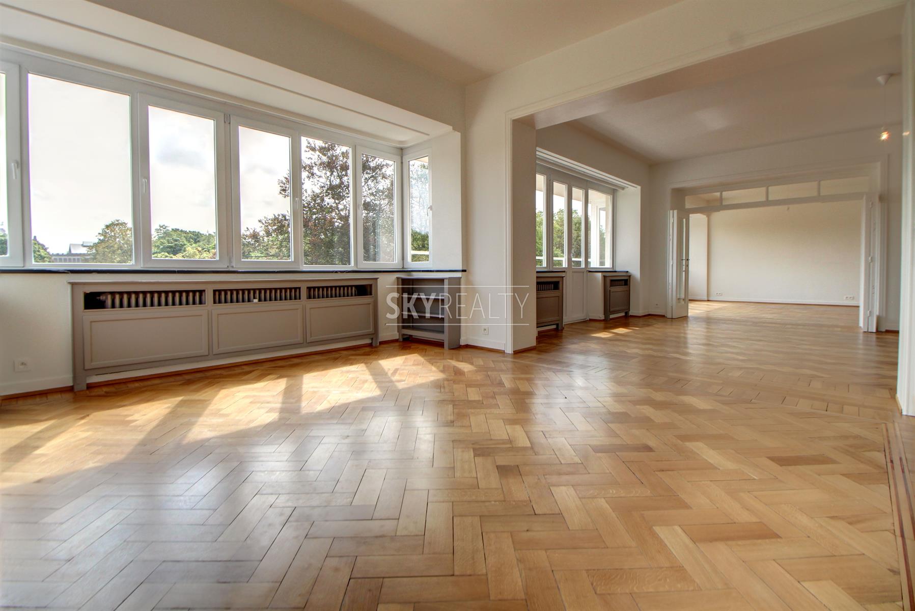 SCHUMAN | EUROPEAN QUARTER | CINQUANTENAIRE PARK : Ideally located at only 100m of the Robert Schuman Roundabout , this beautiful 4 bedroom apartment on the 5th floor of a beautiful luxury building will fill you with its 300 sqm of living space and its 97 sqm of receptions enjoying splendid views on the Cinquantenaire Park. It is composed as follows: a large entrance hall, beautiful receptions with sumptuous views of the Park, a spacious fully equipped kitchen, a laundry w/ washing machine & dryer, a night hall with a very large dressing room, 4 bedrooms (25 , 20, 18, 10 sqm), 3 bathrooms (with bath or shower, sink and toilet), 1 guest toilet, 1 toilet for the servants, a large cellar, a garage box. Double glazing, solid oak flooring, high ceiling, beautiful marble in the lobby, entrance and service elevator for the servants, concierge. EPC: C+. Prime location on the edge of the most beautiful parks in Brussels and only 100m from all Schuman facilities (Metro - Bus - Station - STIB Airport Line - Taxis - Shared cars), with all services nearby: restaurants, cafes, supermarkets, small shops, banks, fitness, medical centers, etc. Easy access to major highways. A green district, calm and very pleasant to live. Free immediately. Rent 3750€ + 525€ charges (provision for water, heating and common areas) with closed garage box included. For any further information or to schedule a viewing please feel free to call David: +32 495 511 555