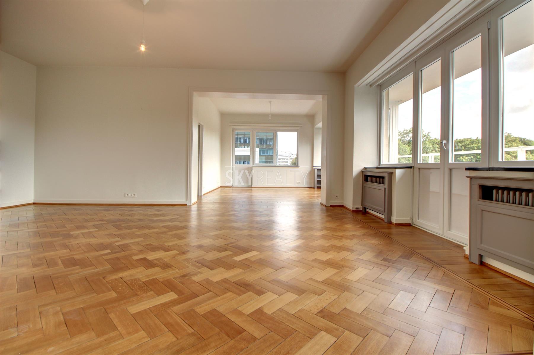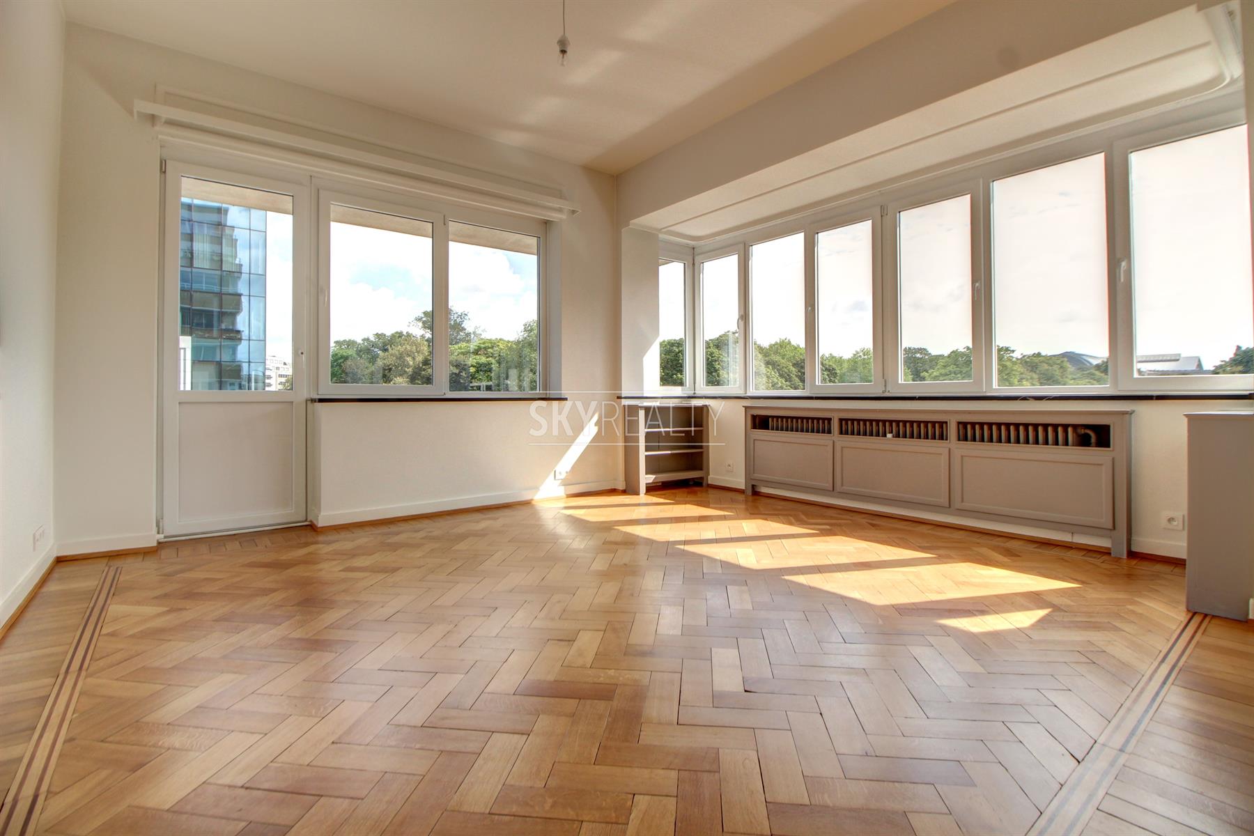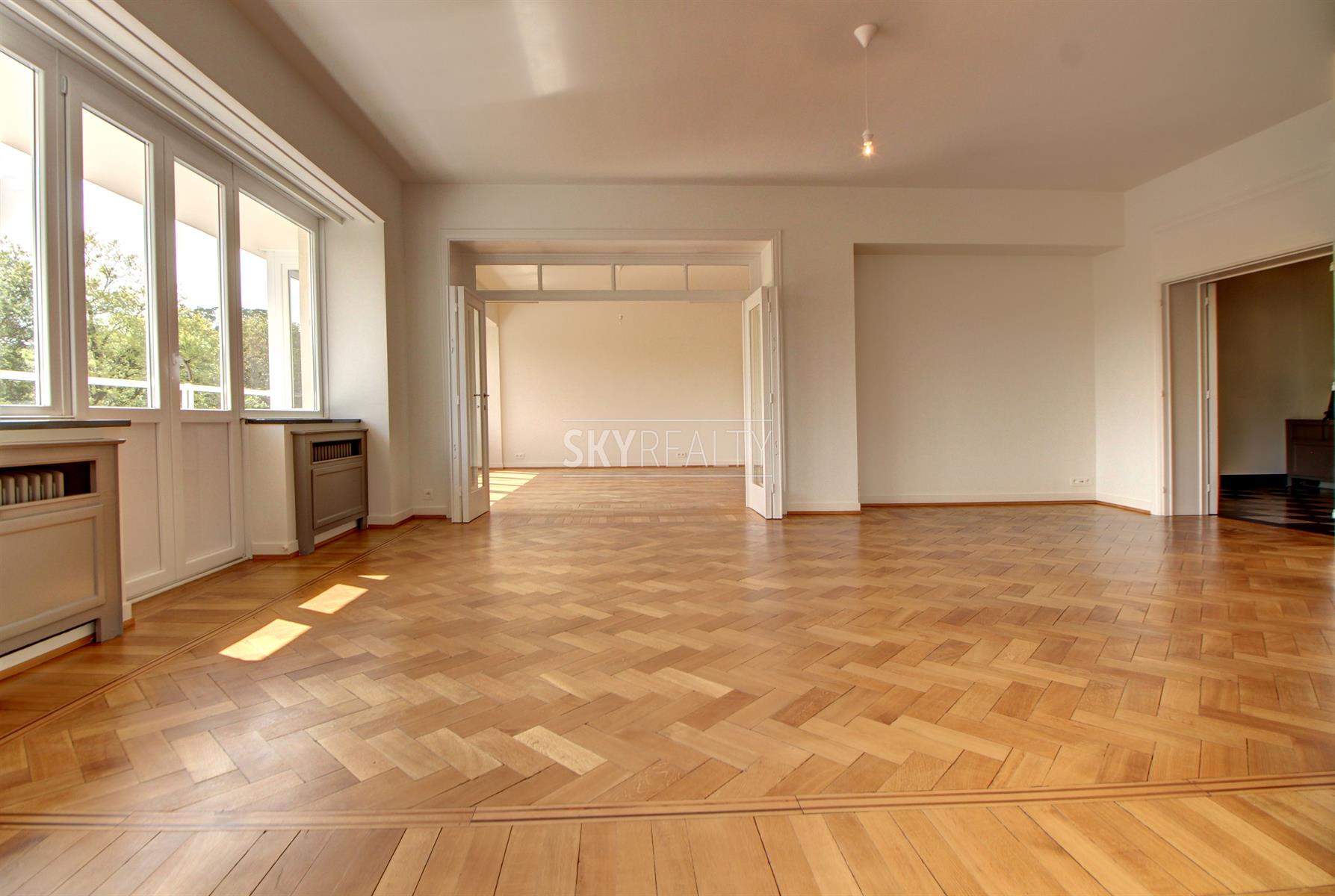 SCHUMAN | EUROPEAN QUARTER | CINQUANTENAIRE PARK : Ideally located at only 100m of the Robert Schuman Roundabout , this beautiful 4 bedroom apartment on the 5th floor of a beautiful luxury building will fill you with its 300 sqm of living space and its 97 sqm of receptions enjoying splendid views on the Cinquantenaire Park. It is composed as follows: a large entrance hall, beautiful receptions with sumptuous views of the Park, a spacious fully equipped kitchen, a laundry w/ washing machine & dryer, a night hall with a very large dressing room, 4 bedrooms (25 , 20, 18, 10 sqm), 3 bathrooms (with bath or shower, sink and toilet), 1 guest toilet, 1 toilet for the servants, a large cellar, a garage box. Double glazing, solid oak flooring, high ceiling, beautiful marble in the lobby, entrance and service elevator for the servants, concierge. EPC: C+. Prime location on the edge of the most beautiful parks in Brussels and only 100m from all Schuman facilities (Metro - Bus - Station - STIB Airport Line - Taxis - Shared cars), with all services nearby: restaurants, cafes, supermarkets, small shops, banks, fitness, medical centers, etc. Easy access to major highways. A green district, calm and very pleasant to live. Free immediately. Rent 3750€ + 525€ charges (provision for water, heating and common areas) with closed garage box included. For any further information or to schedule a viewing please feel free to call David: +32 495 511 555