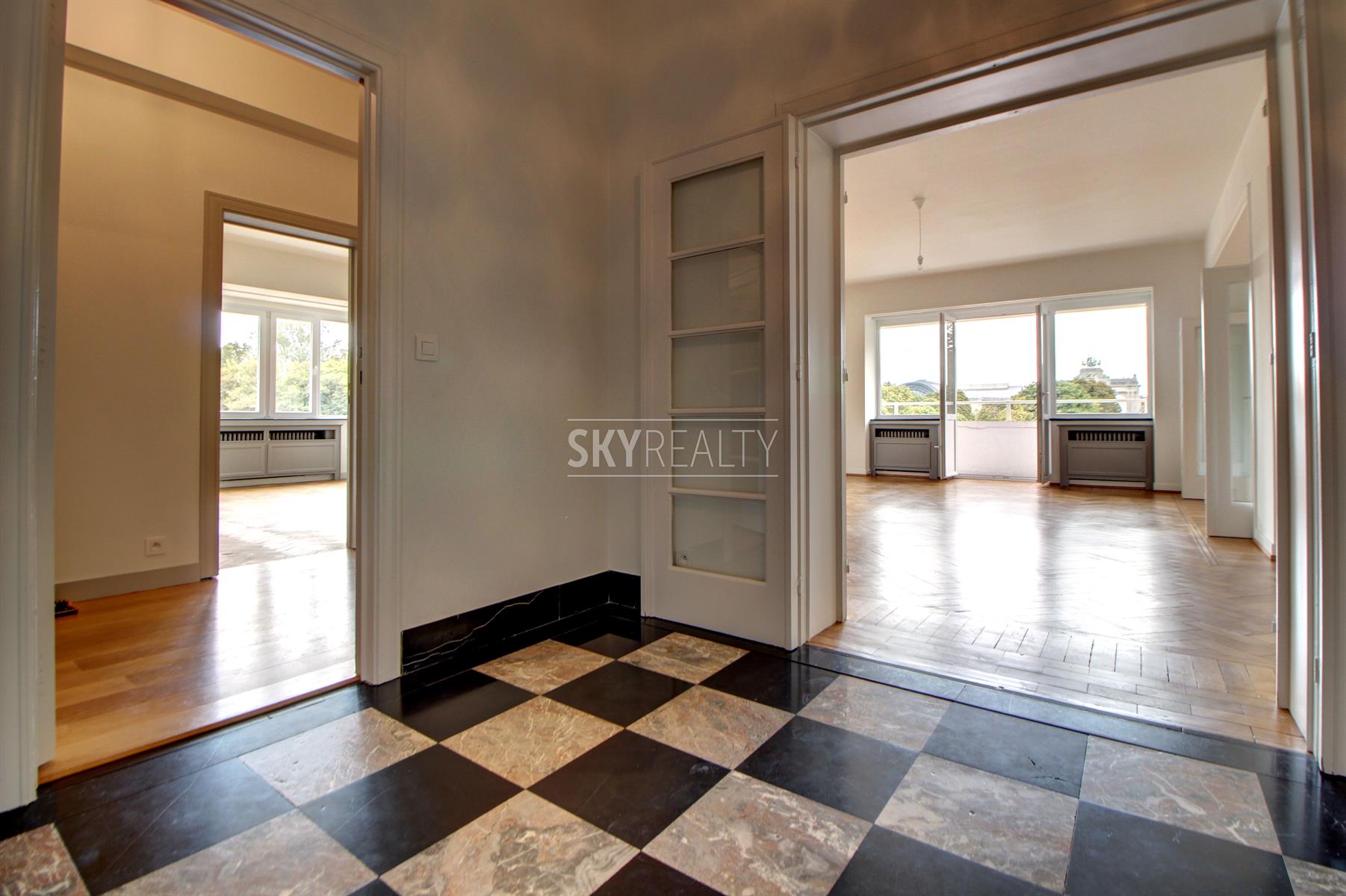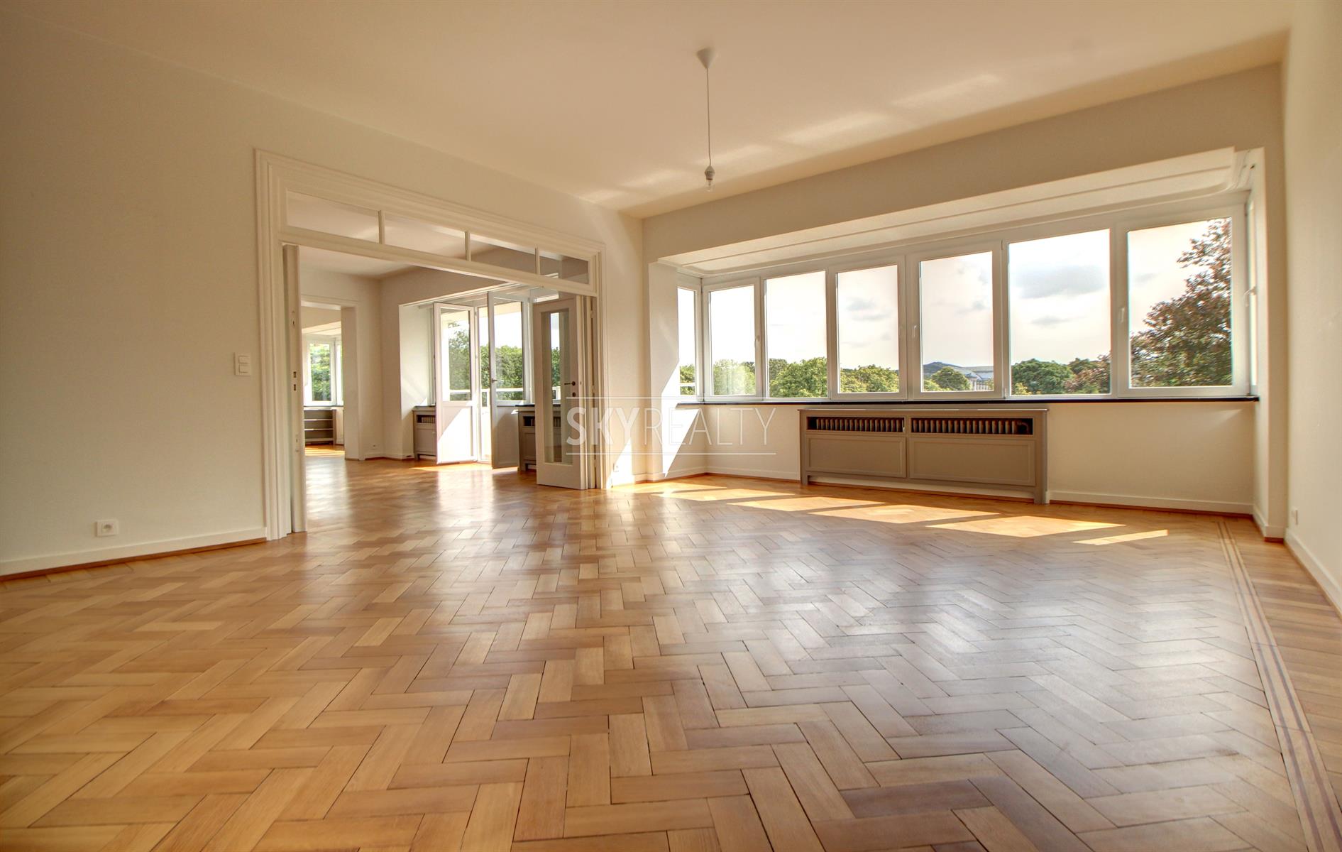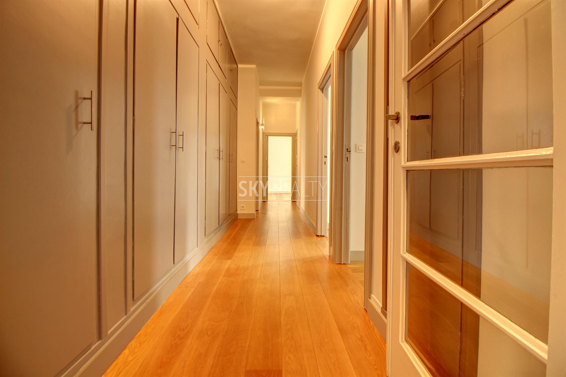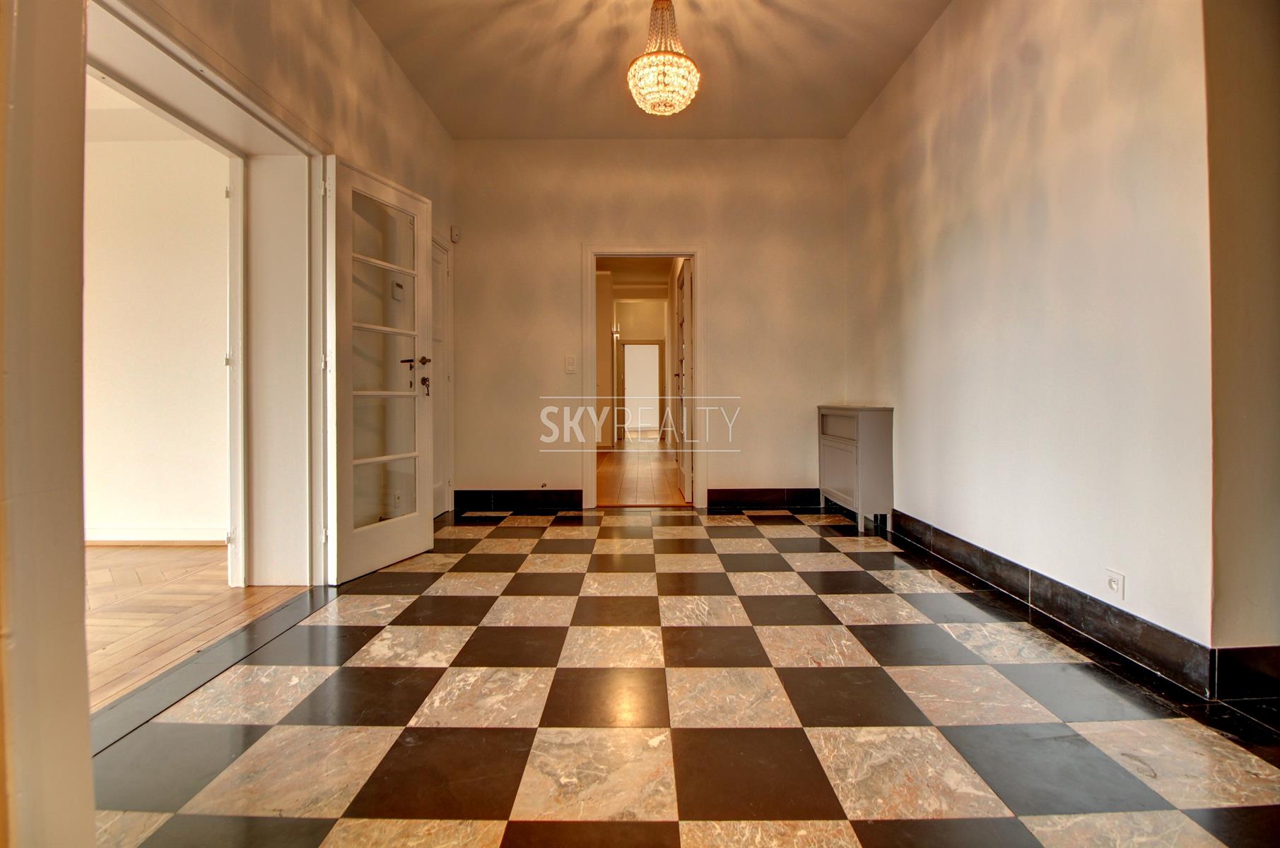 SCHUMAN | EUROPEAN QUARTER | CINQUANTENAIRE PARK : Ideally located at only 100m of the Robert Schuman Roundabout , this beautiful 4 bedroom apartment on the 5th floor of a beautiful luxury building will fill you with its 300 sqm of living space and its 97 sqm of receptions enjoying splendid views on the Cinquantenaire Park. It is composed as follows: a large entrance hall, beautiful receptions with sumptuous views of the Park, a spacious fully equipped kitchen, a laundry w/ washing machine & dryer, a night hall with a very large dressing room, 4 bedrooms (25 , 20, 18, 10 sqm), 3 bathrooms (with bath or shower, sink and toilet), 1 guest toilet, 1 toilet for the servants, a large cellar, a garage box. Double glazing, solid oak flooring, high ceiling, beautiful marble in the lobby, entrance and service elevator for the servants, concierge. EPC: C+. Prime location on the edge of the most beautiful parks in Brussels and only 100m from all Schuman facilities (Metro - Bus - Station - STIB Airport Line - Taxis - Shared cars), with all services nearby: restaurants, cafes, supermarkets, small shops, banks, fitness, medical centers, etc. Easy access to major highways. A green district, calm and very pleasant to live. Free immediately. Rent 3750€ + 525€ charges (provision for water, heating and common areas) with closed garage box included. For any further information or to schedule a viewing please feel free to call David: +32 495 511 555