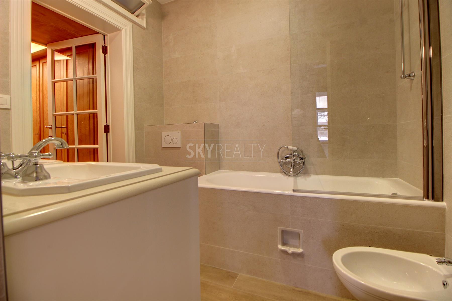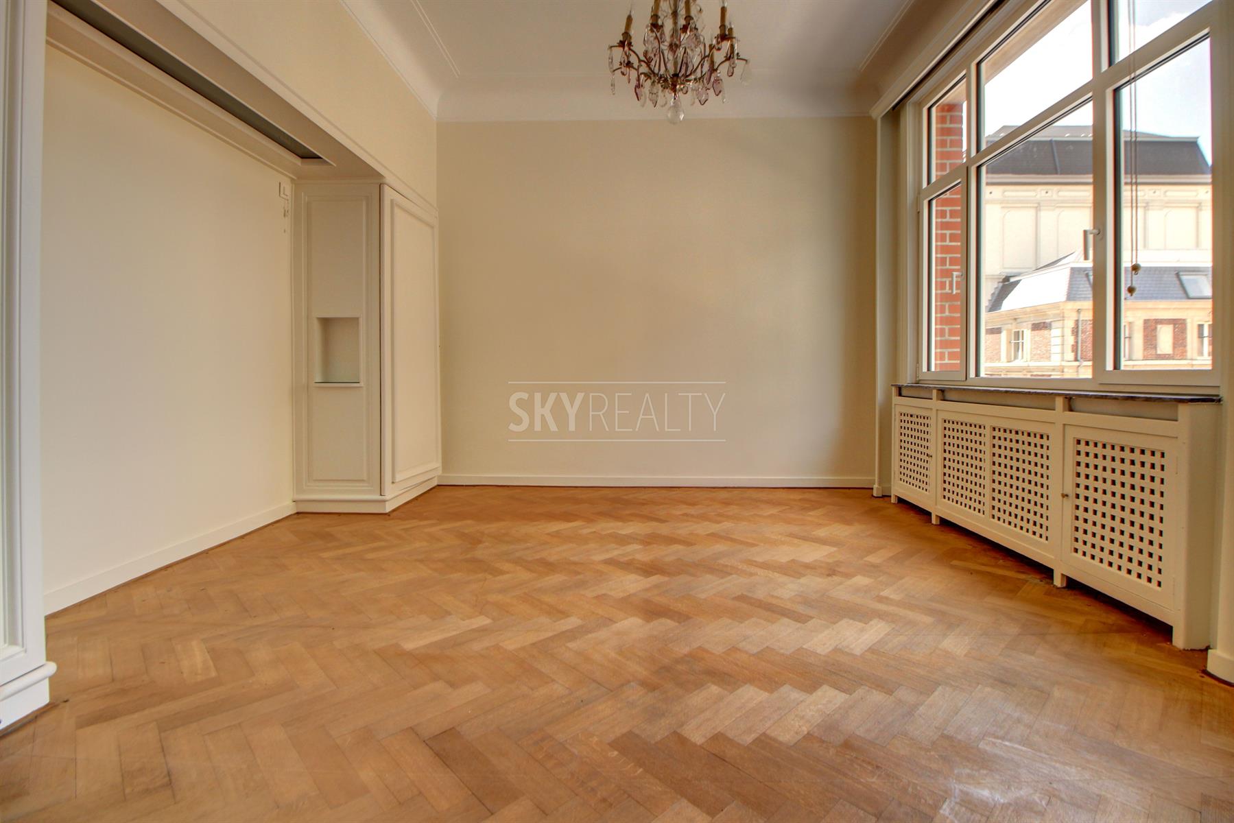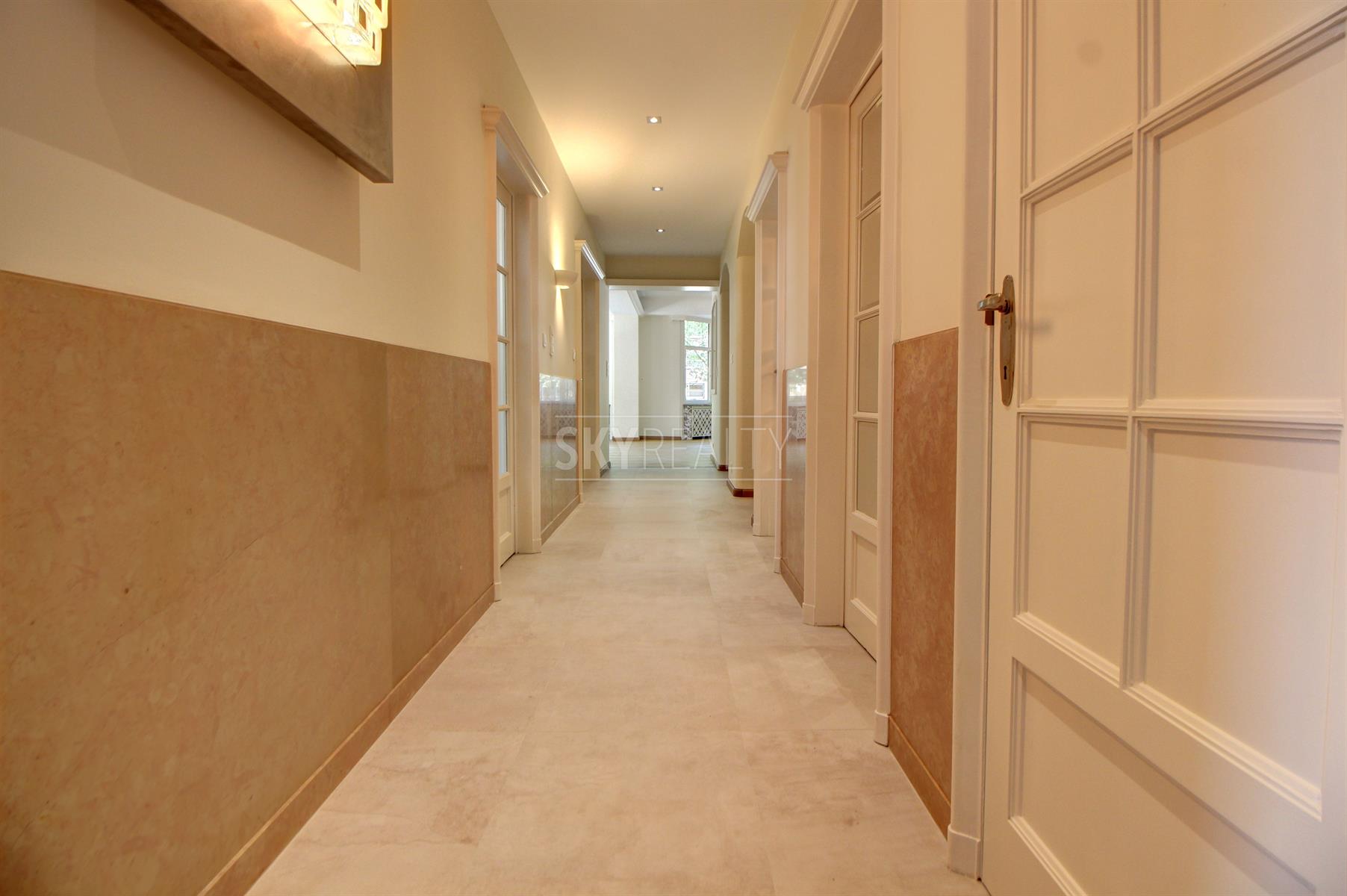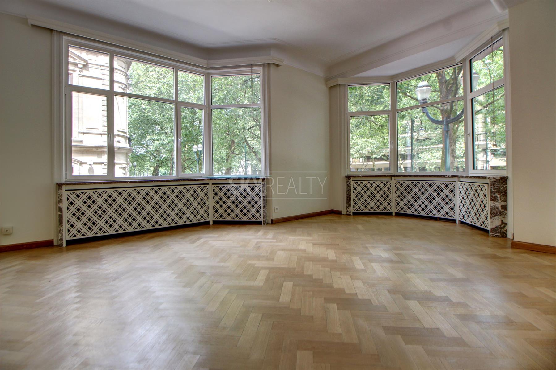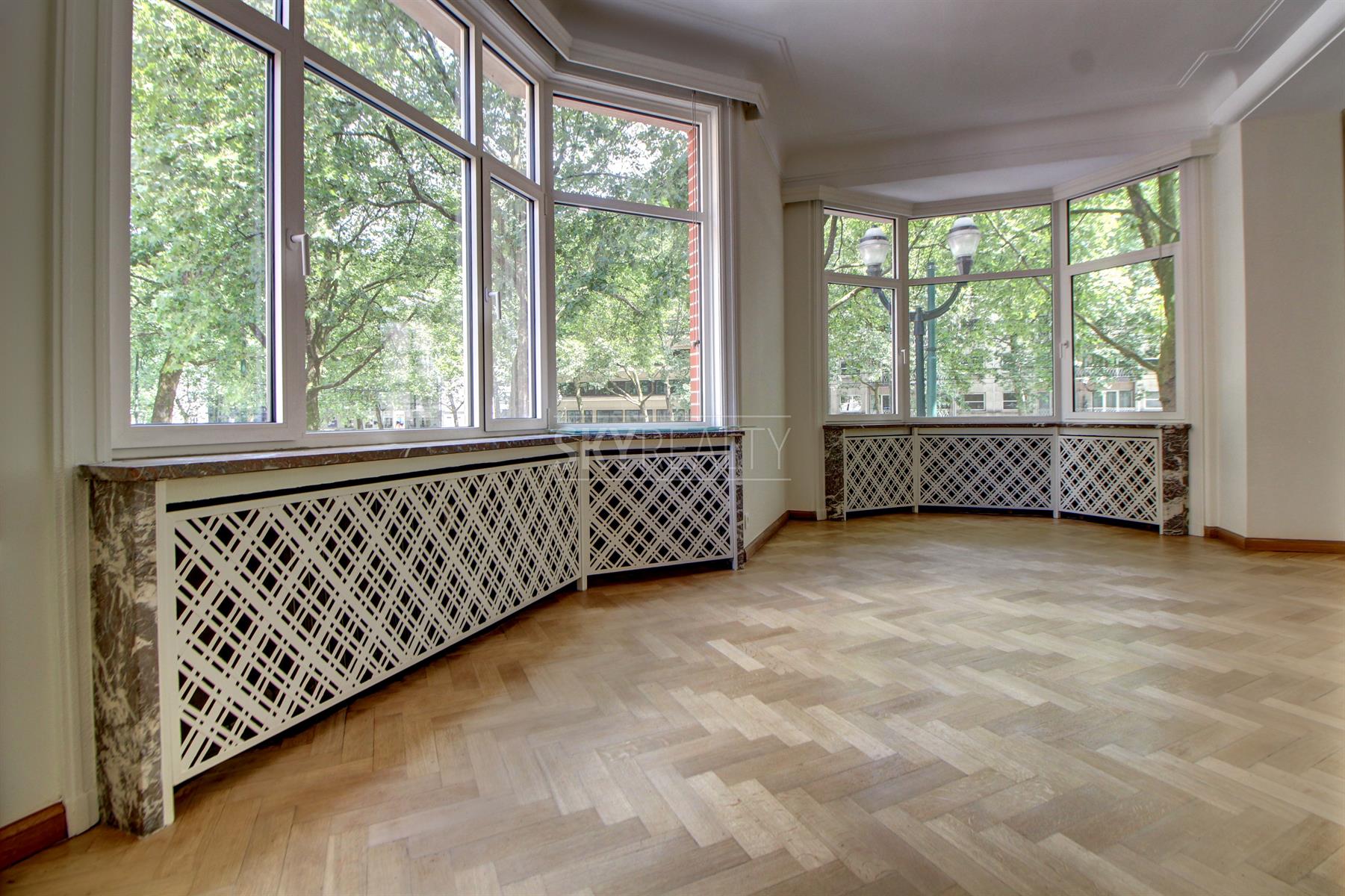 *** Rented *** Louise Avenue: High standing 3 bedroom apartment of ± 158 sqm located on the first floor of a luxury building Art Deco style (1933). It offers: a large entrance hall, a spacious living room with double exposure and large windows on both sides, a large open kitchen fully equipped (Siemens appliances: refrigerator, induction hob, hood, oven, micro- waves, dishwasher), three large bedrooms + an adjoining room (office or dressing room or 4th extra bedroom), a bathroom (bath / shower, double sink, towel radiator, toilet, bidet) with large dressing room adjoining, an Italian shower room, a large laundry area and a cellar. First occupation after a complete renovation with quality materials. All the decorative elements of times have been preserved. Very beautiful finishes (high molded ceilings, beautiful solid oak flooring, marble, indirect light, double glazed aluminum, etc.). A pleasant property with a perfect location close to all facilities (public transport, major highways, schools, parks, etc.) and next to the famous shops of Place Stephanie, Goulot Louise and Bd of Waterloo. Near Chatelain Square. Rent € 1900 + € 300 charges (provision for cold / hot water, heating and maintenance of common areas). Optional Parking (+ €100). Free immediately. For any further information or to schedule a viewing please feel free to call or text David @ 0495 511 555.