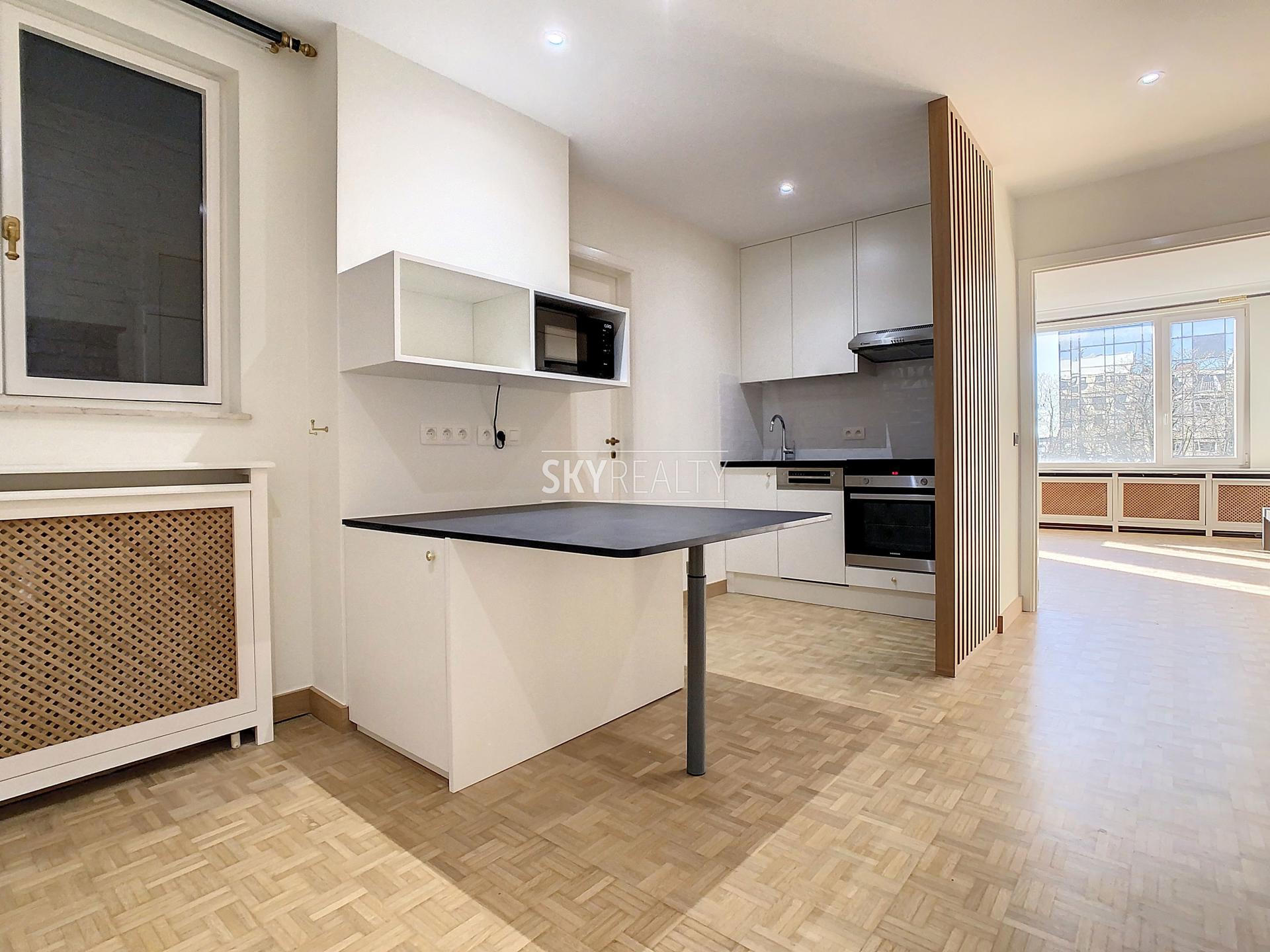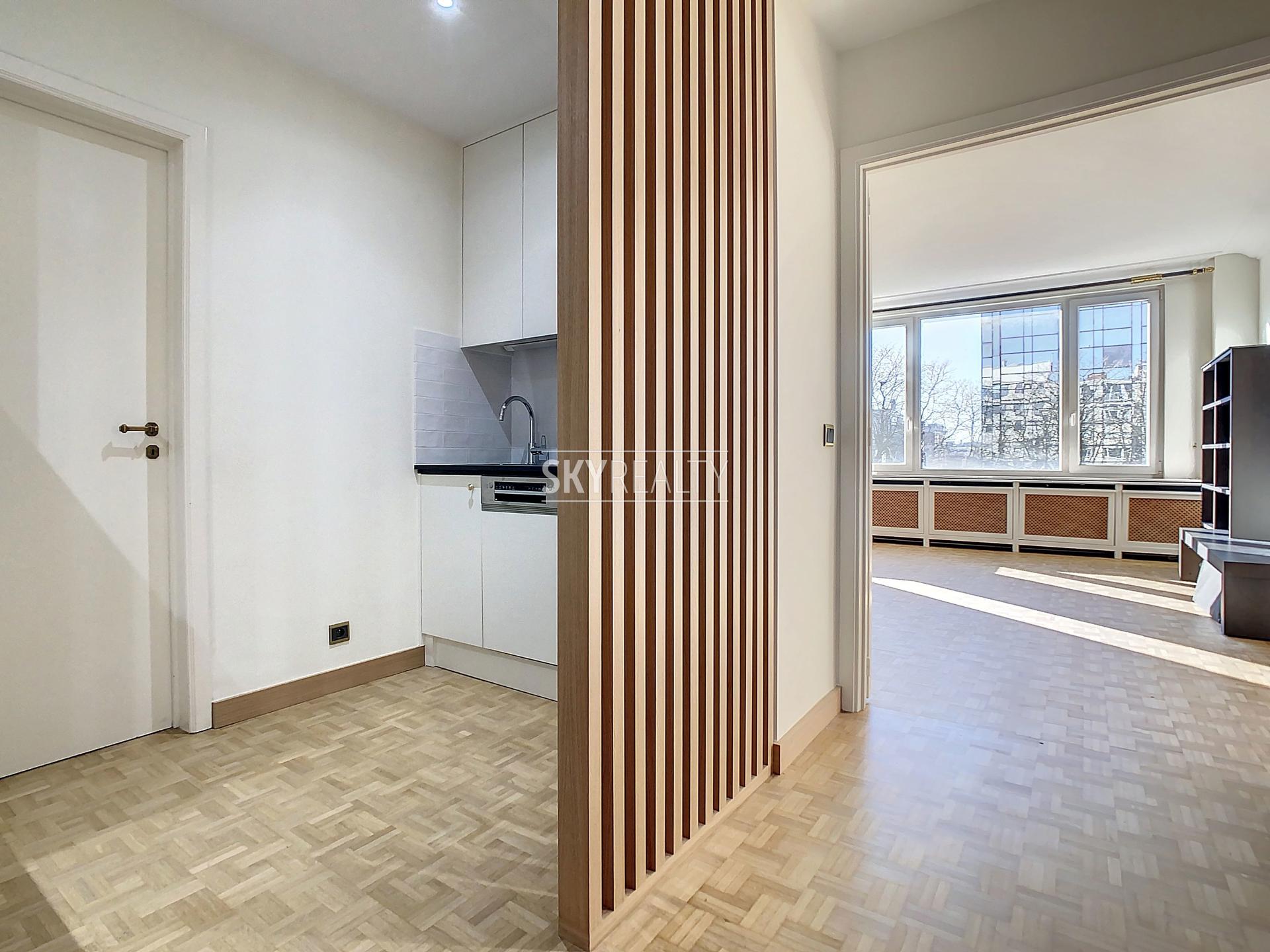 *** R E N T E D *** LOUISE AVENUE | NEAR BOIS DE LA CAMBRE & ABBAYE: Sky Realty is pleased to present this magnificent unfurnished studio of ± 50 sqm completely renovated on the 5th floor (/8) of a well-maintained luxury building. It is composed as follows: a bright living room with a sleeping area and a nice view of Avenue Louise, a fully equipped kitchen with a dining table area (ceramic hob, extractor, oven, microwave , dishwasher, sink, large fridge-freezer), a large bathroom (large Italian shower, washbasin, toilet, towel radiator, washer-dryer combo, access to a small balcony), large closet, a cellar in the basement. EPC: C. First occupation after complete renovation. Solid oak parquet, double glazing, designer spotlights, armored door, etc. Exceptional location next to transport, shops, restaurants, cafes, parks (Cambre, Abbaye). Immediate proximity to Chatelain. Free immediately. Rent: €900 + €150 charges (provision for water, heating and common areas). Furnished rental option possible (+80 € / month). Info & visits: calls/messages @ +32 495 511 555 (David) or request via the ** contact by email ** button on the ad.