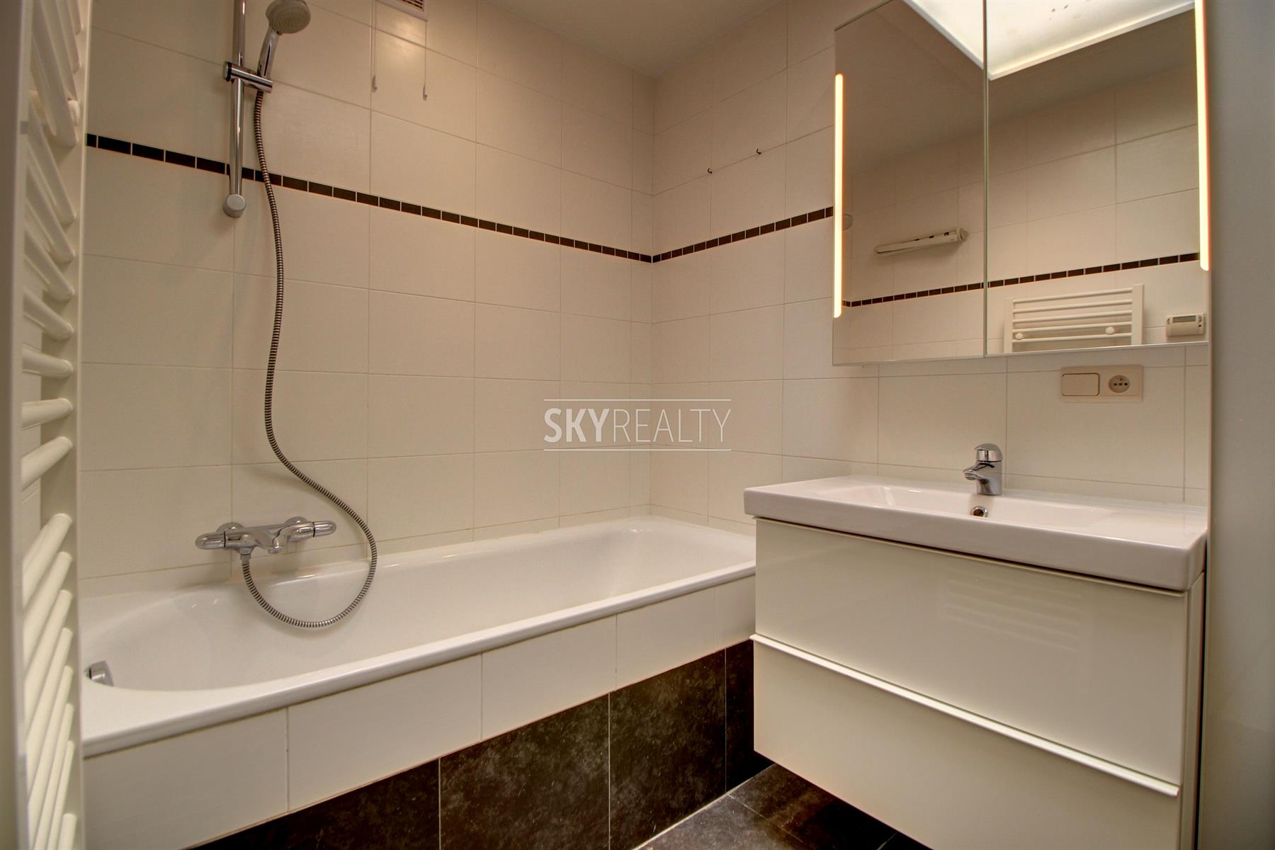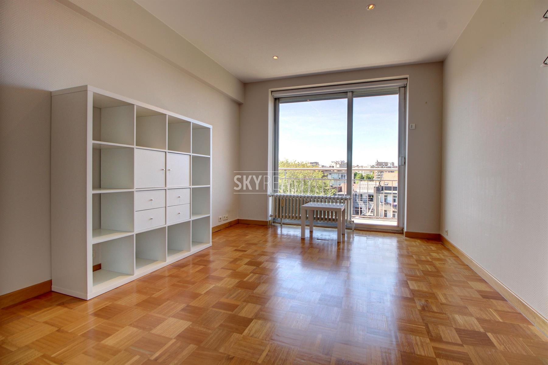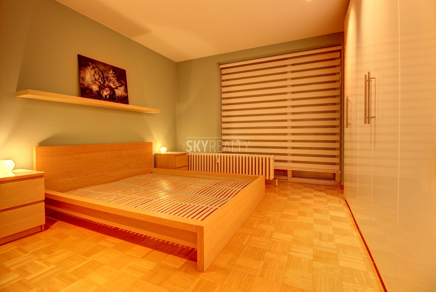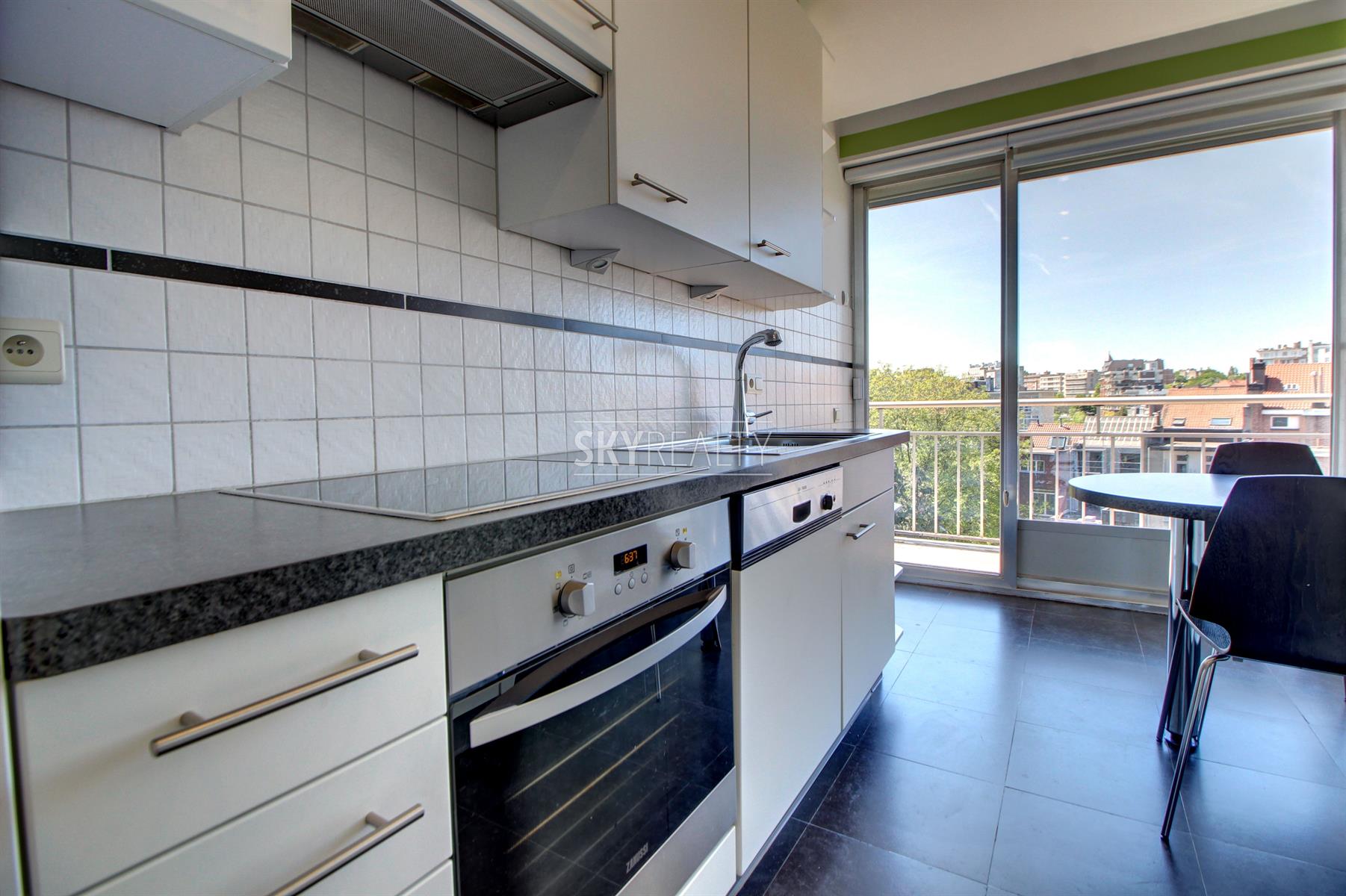 *** R E N T E D *** Gribaumont / Josephine Charlotte: Ideally located in a small condominium, in a quiet place but close to the metro and all facilities, this beautiful 2 bedroom penthouse of 90 sqm will seduce you with its nice amenities. It offers: an entrance hall with cloakroom, a guest toilet, a living room (parquet and open fire) opening onto a pleasant terrace with a nice view and equipped with an open fire (ideal for barbecues), a fully equipped kitchen (fridge, ceramic hob, extractor, oven, microwave, dishwasher), night hall, 2 large bedrooms, 1 bathroom (bath, washbasin, programmable towel radiator), an en-suite shower (shower, sink, toilet), laundry room (washing machine included), cellar, large garage box (automatic door with remote control) in the basement accessible by elevator. The bedrooms and the kitchen give access to the second terrace. Possibility to sublet the garage. Nice amenities: Alarm, 2 bathrooms, 2 toilets, 2 terraces, double glazing throughout, solid oak flooring (bedrooms and living room), carrara marble in the hall, solar tent and open fire on the terrace, etc. Only one apartment on the landing (privacy guaranteed). Apartment rented semi furnished (tables, chairs, furniture with integrated TV & home cinema, library, bed frames with box spring and large wardrobe in the master bedroom). Option 100% furnished possible. Rent 1350 € (garage included) + 120 € charges (provision for heating, water and common area maintenance fees).