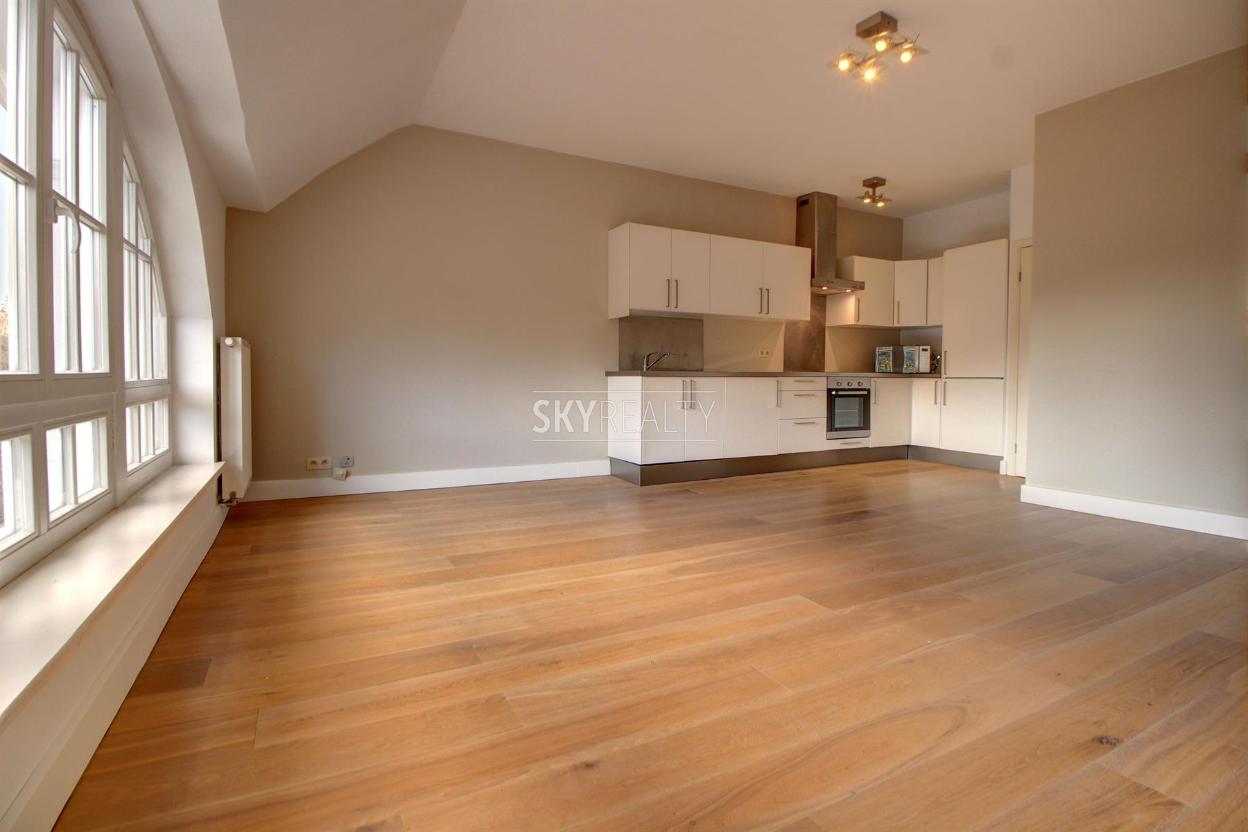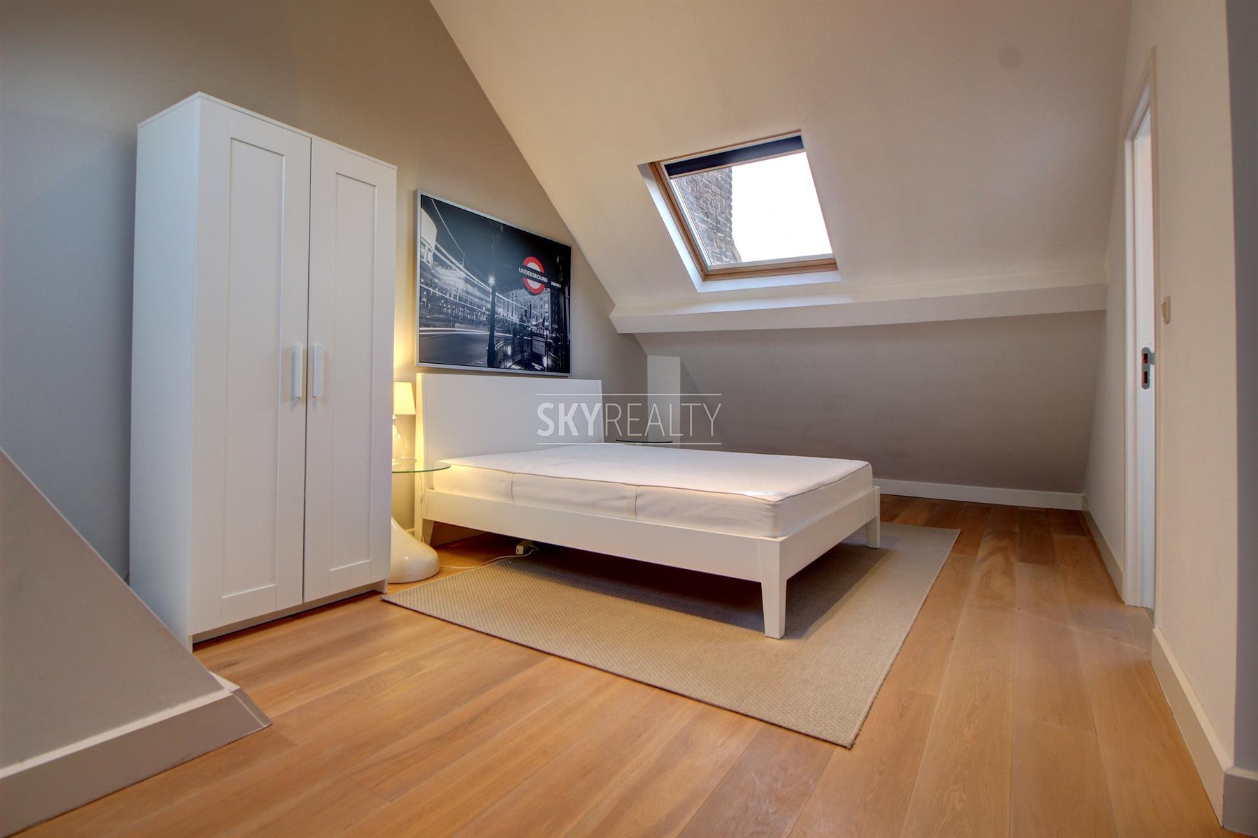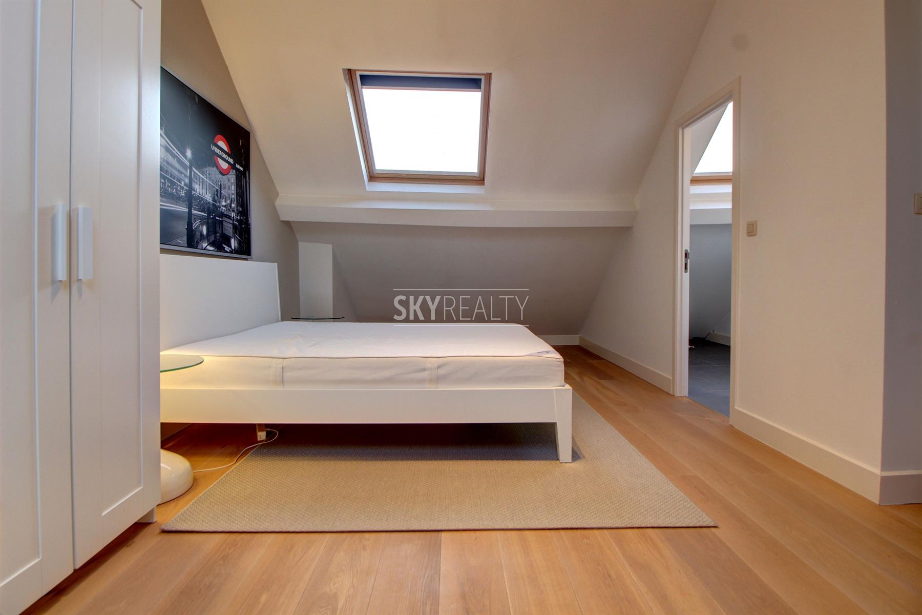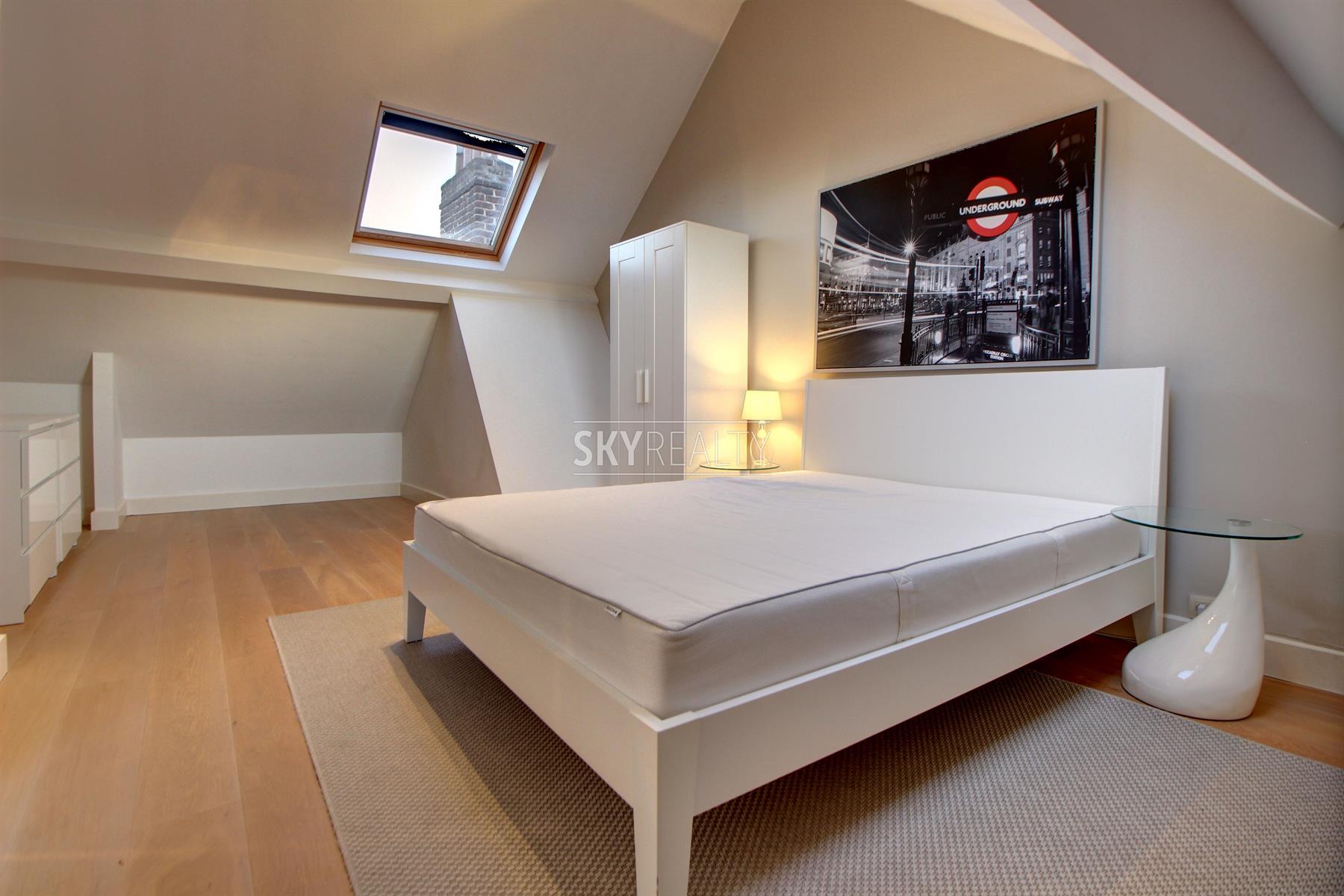 *** RE - LEASE *** Montgomery / Brand Whitlock / Georges-Henri: This beautiful 2 bedroom furnished duplex apartment of 100 sqm on the top floors (3rd and 4th / no elevator) of a beautiful mansion will seduce you with its brightness, the quality of its renovation and its popular location, next to transport, services and all facilities. It is composed as follows: on the 3rd floor: an entrance hall (armored door, intercom), a pleasant living room (nice view of the park), an equipped open kitchen (fridge-freezer, ceramic hob, hood, oven, microwave ), a bedroom and en-suite bathroom (bath / shower, sink, towel rail radiator, space with a connection for a washing machine), a separate toilet; on the 4th floor: a large bedroom (including bed and wardrobe) with en-suite bathroom (bath / shower, sink, towel rail radiator). Double glazing and oak flooring throughout. Beautiful stairwell. Ideal location close to Montgomery, next to major highways, transport (metro, tram, bus) and shops (rue Georges Henri). The duplex will be furnished. € 60 charges (€ 50 package for common and € 10 provision for water), heating (individual gas boiler), electricity and telecoms (internet / TV / Tel.) are the responsibility of the lessee. Free immediately. For any further information or to schedule a viewing please feel free to contact David @ +32 495 511 555 or by clicking on the *** Contact by Email *** Button on the Immoweb advertising.