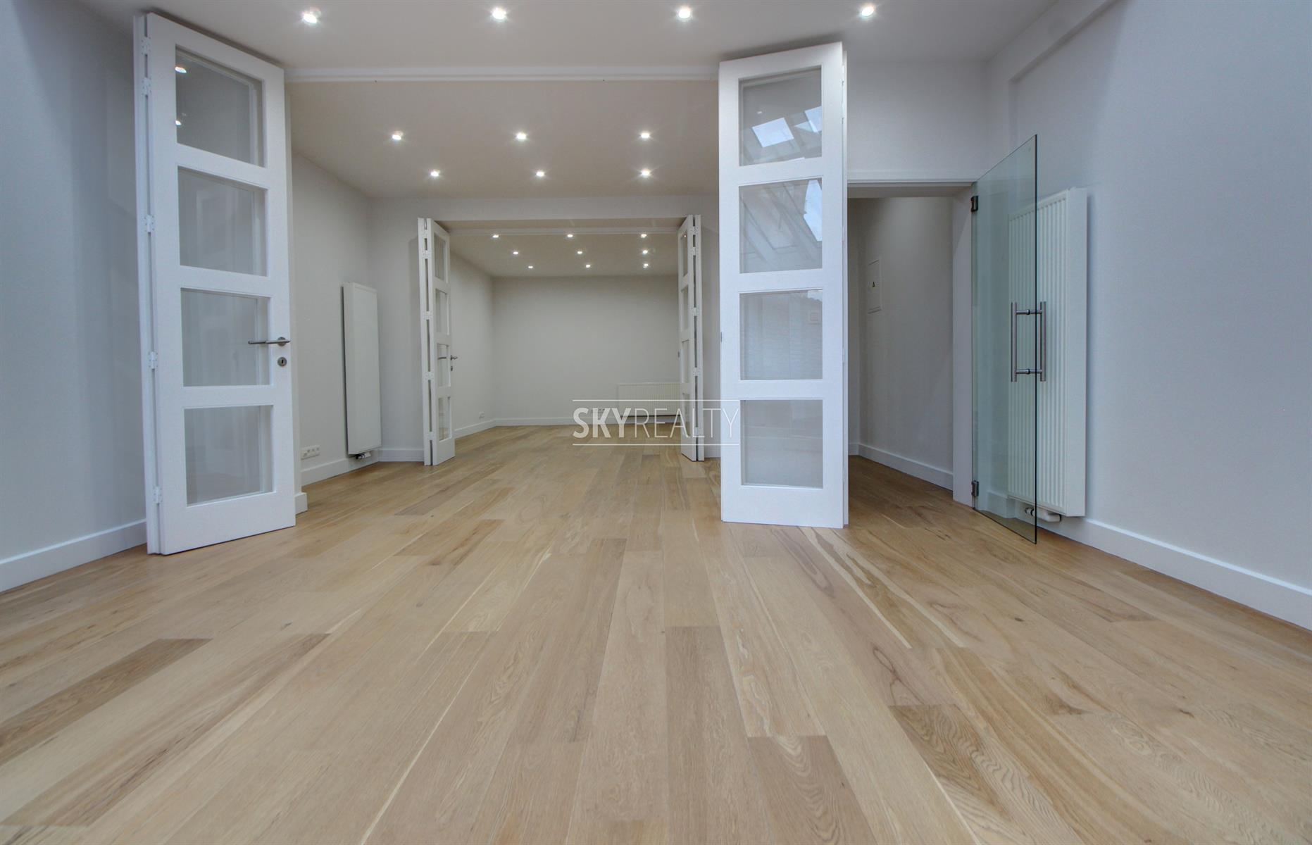 MONTGOMERY / BRAND WITHLOCK / GEORGES HENRI: This magnificent office space of ± 175 sqm on the ground floor and on the 1st floor of a beautiful bourgeois house will enchant you with its beautiful spaces, its pleasant terrace and its ideal location near transport, major highways and all facilities. It is composed as follows: In front of the building: two parking spaces and a reserved parking space in the street (option + € 200); on the ground floor: an entrance hall with a pretty staircase, two office spaces of ± 18 sqm (with kitchenette) on the front facade and a of ± 58 m² on the back opening onto a pleasant veranda (guaranteed brightness) and giving access to a large terrace of 50 sqm; on the 1st floor: 2 office spaces of ± 39 sqm and ± 47 sqm with a fully equipped kitchen and a terrace, a bathroom (bath / shower, sink) and a separate toilet; in the basement, two toilets, cellar(s), a bike space. The property has been completely refurbished. Air conditioning. Beautiful natural oak parquet. Double glazing. Ideal location near the Metro (Montgomery), transport and with easy access to major highways. Supermarkets, shops and restaurants nearby (Georges Henri). Rent € 2,500 + charges € 60 (common and water). Free immediately. The ground floor can be rented separately. N.B .: A 2 bedroom apartment is also available for rent in the property. For any further information or to schedule a viewing please feel free to call or text David @ 0495 511 555.