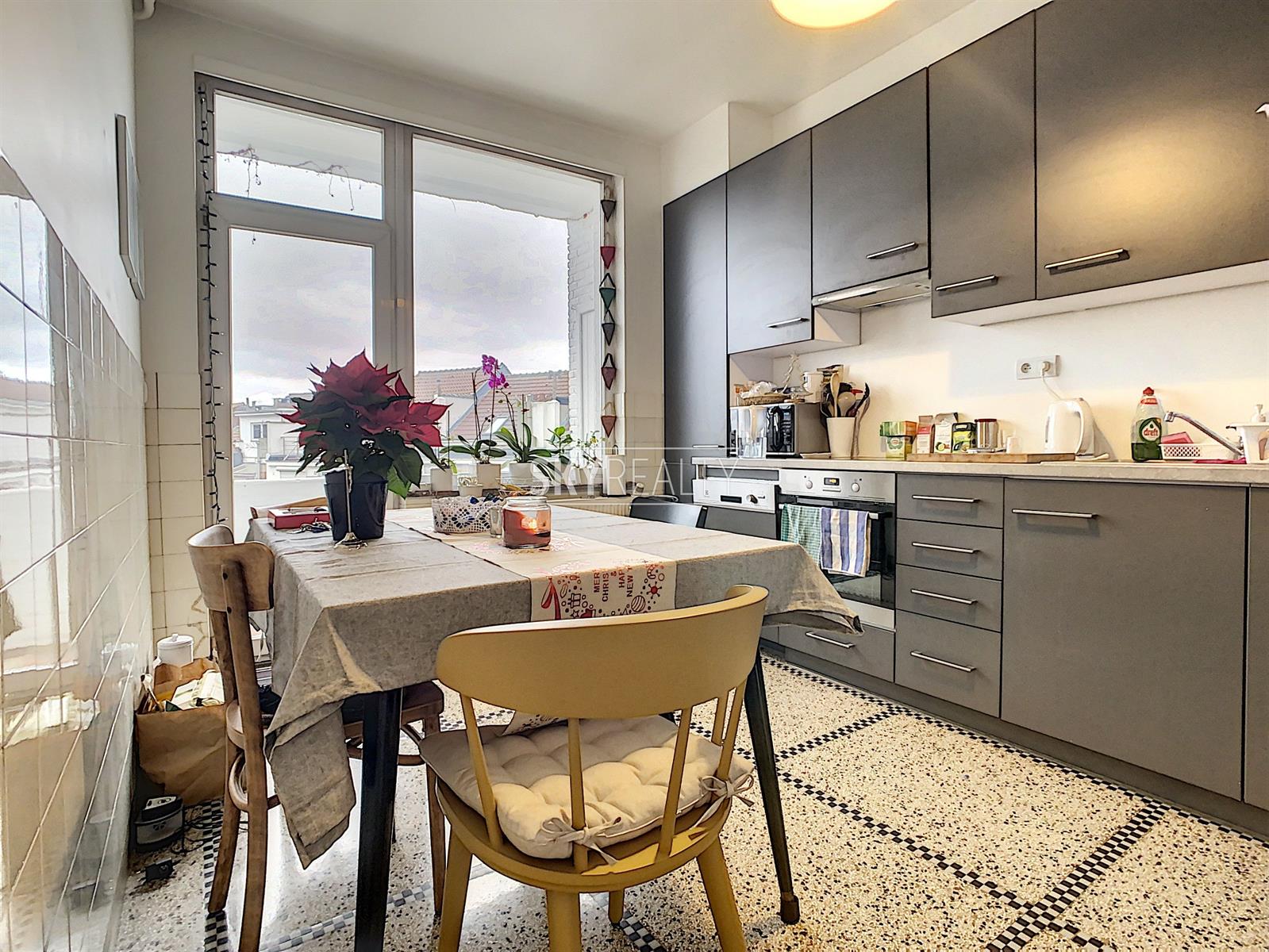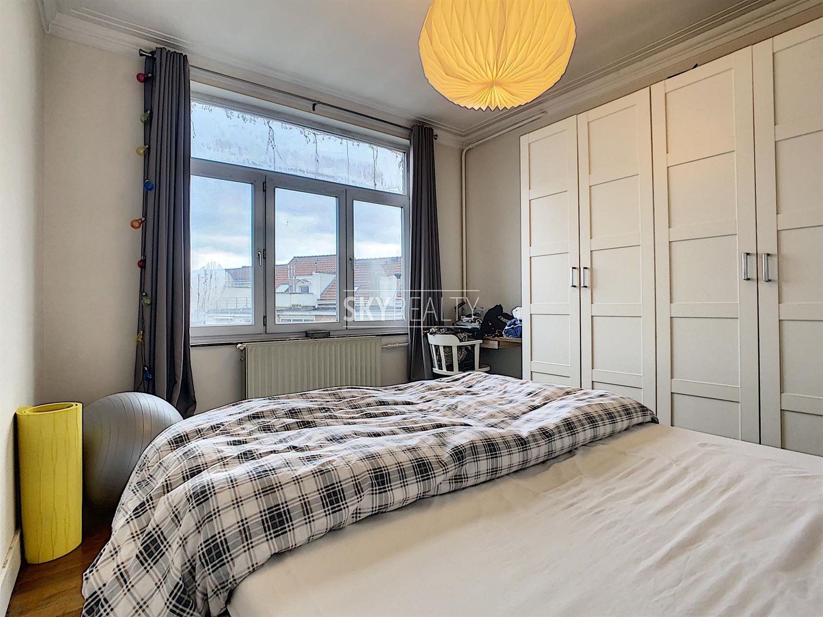 AV. DES VOLONTAIRES | BD LOUIS SCHMIDT | METRO PETILLON: We offer you this pleasant 2 bedroom apartment of 100 sqm located on the 2nd floor of a small building with no charge (no elevator, no trustee). Ideal location in a popular area (between Boulevard Louis Schmidt and Avenue des Volontaires), next to transport (metro, tram, bus), shops and all facilities. It is composed as follows: an entrance hall, a bright living room, a spacious fully-equipped kitchen (15 sqm) with access to the terrace at the back of the building (nice view towards a green island interior), two large bedrooms (17 & 15 sqm), a spacious bathroom (6 sqm), a separate toilet, a large closet (possibility of making a laundry room). One large cellar in the basement. Double glazing, beautiful parquet (living room & bedrooms) and Granito/Terrazzo in the other rooms, high ceilings, individual gas boiler. EPC: D-. Refreshment to be expected. Small building with only 4 units. NO ELEVATOR and NO COMMON LOAD !!! Ideal location in a pleasant neighborhood just 200m from the Pétillon metro station. Many shops and supermarkets within walking distance. Easy access to major highways. Perfect for a first-time buyer or for an investor. An excellent opportunity. Info & visits: David: 0495 511 555.