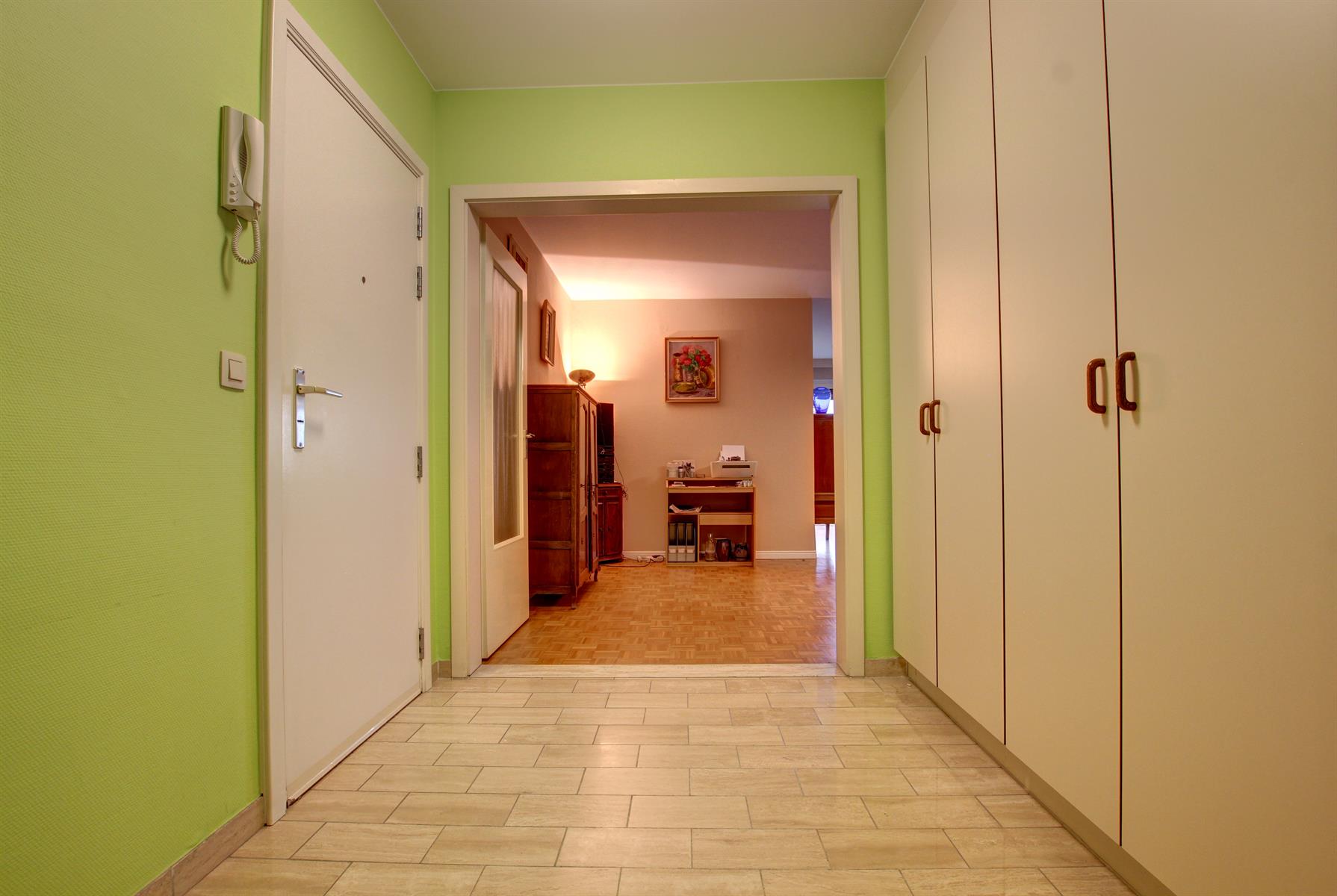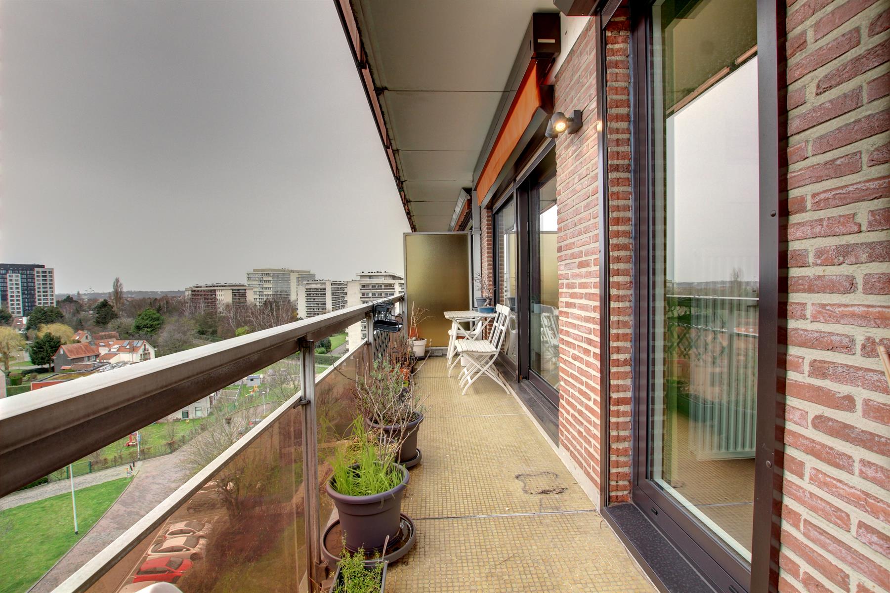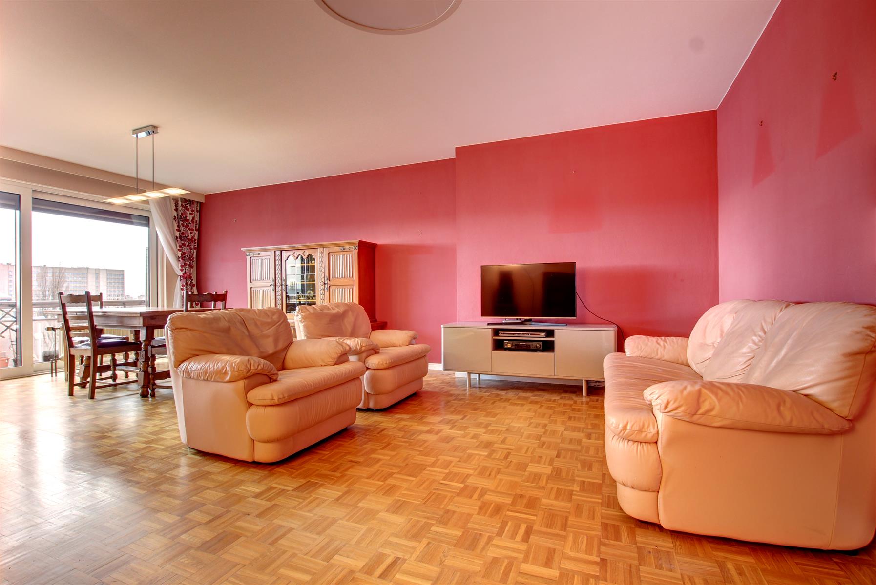 Ideally located next to shops, transport and all facilities, this splendid 2 bedroom crossing apartment of 101 sqm on the 7th floor (out of 8) will seduce you with the quality of its renovation, its beautiful light and its lovely views of Brussels. It offers: an entrance hall with cloakroom and cupboards, a spacious L-shaped living-room of 45 sqm opening onto a pleasant terrace of 9 sqm (southwest exposure), a fully-equipped kitchen with access to the terrace (fridge-freezer, plate vitro-ceramic, extractor, oven, microwave / open kitchen possible), a night hall, two large bedrooms of 14 sqm (access to the second terrace), a large bathroom (shower, sink, storage, laundry area), a separate toilet, a storage room (separate laundry room possible), a cellar. Beautiful solid oak parquet, armored door. Renovated in 2016: electricity in conformity, new kitchen & bathroom, new quality double glazing, electric shutters on all windows and Somfy motorized awning for the living room terrace. Nice views at the front and back. An apartment requiring no work, in which the move can be immediate, perfect for a family or for investors (close to Nato, EU). Well managed building: all major work has been completed. Easy access to motorways. Free to deed of sale. Cadastral Income: € 1,430 - Property Tax: € 1,398 - EPC: D+. Low heating loads. Charges € 144,41/month (heating, water, CAM). 33/5000. Offer from € 250,000. Visits: David: +32 495 511 555.