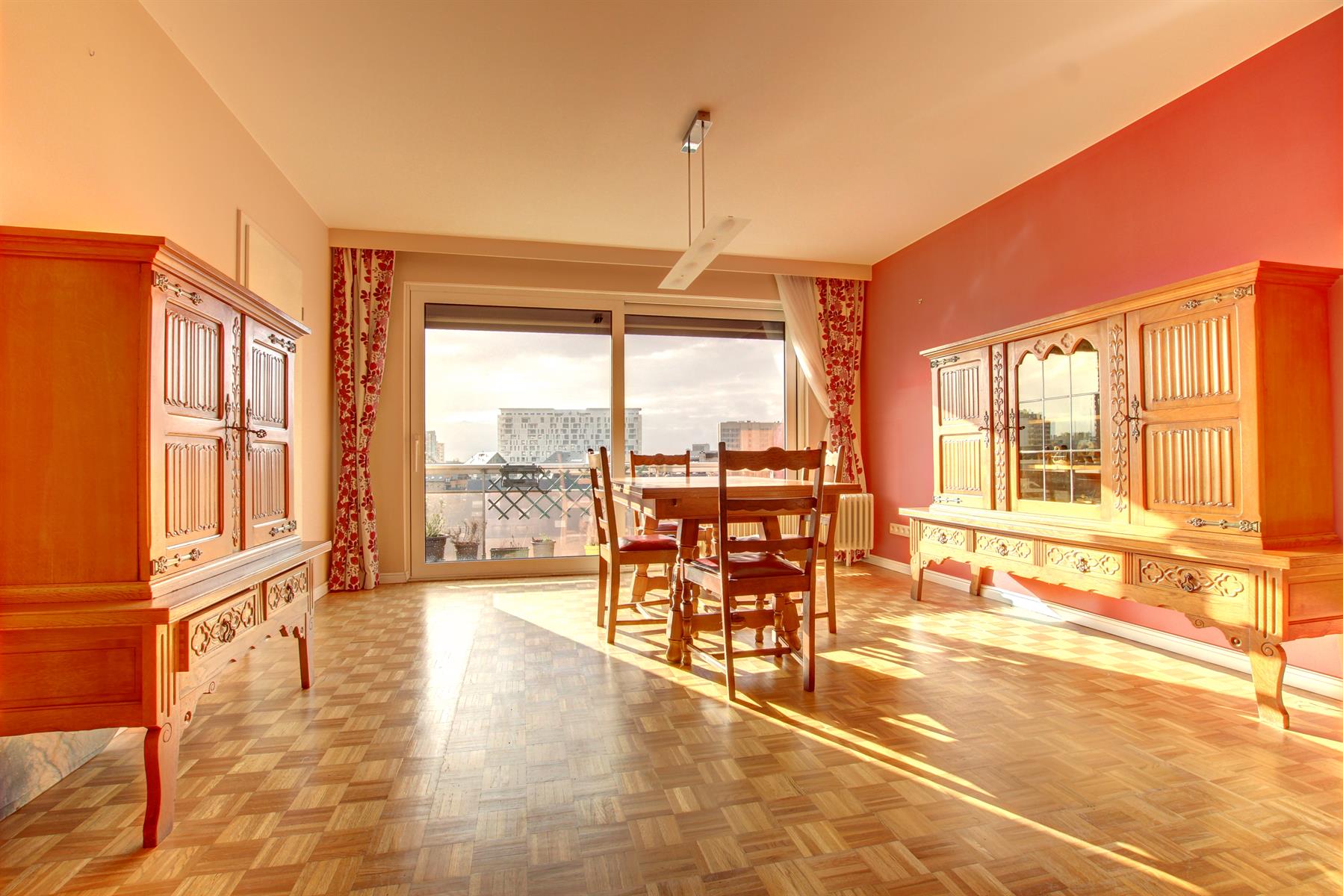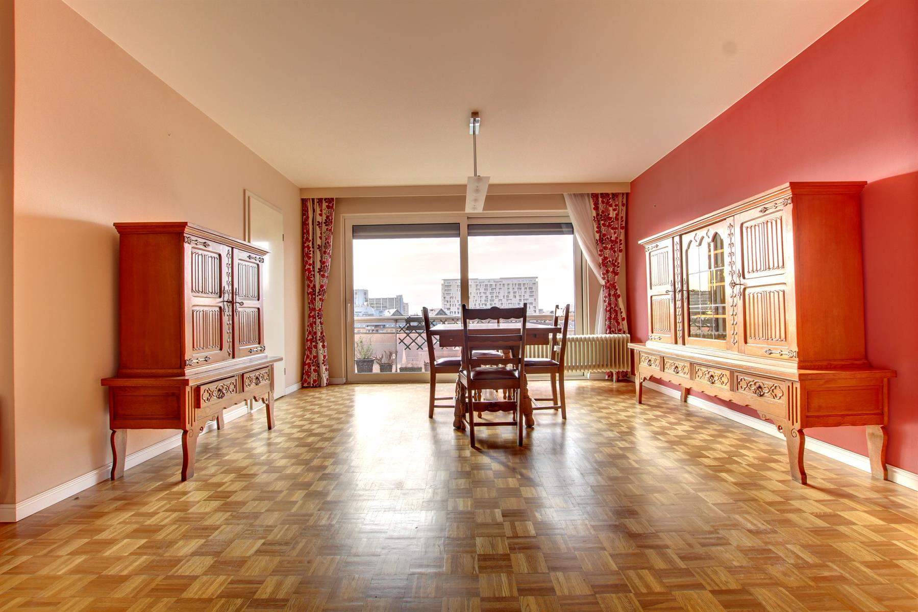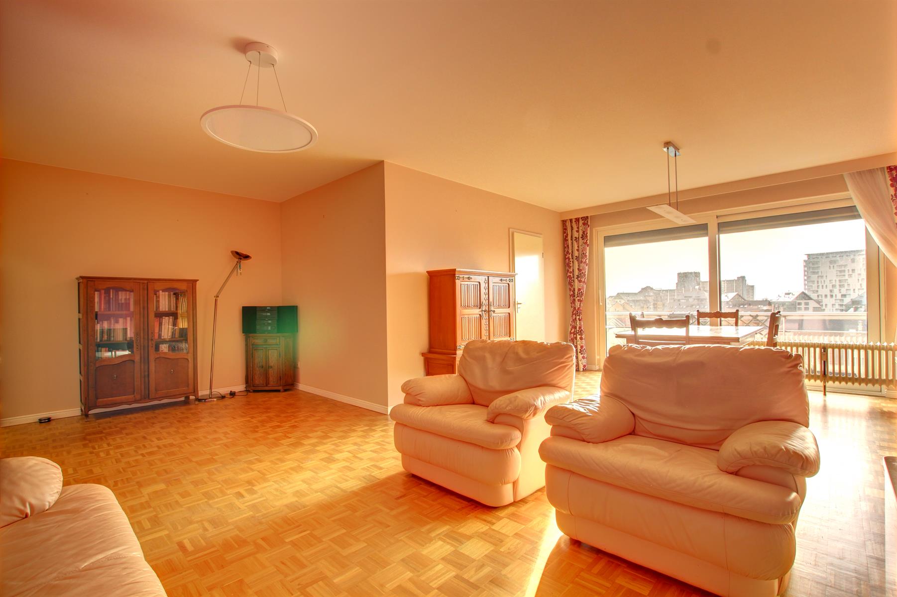 Ideally located next to shops, transport and all facilities, this splendid 2 bedroom crossing apartment of 101 sqm on the 7th floor (out of 8) will seduce you with the quality of its renovation, its beautiful light and its lovely views of Brussels. It offers: an entrance hall with cloakroom and cupboards, a spacious L-shaped living-room of 45 sqm opening onto a pleasant terrace of 9 sqm (southwest exposure), a fully-equipped kitchen with access to the terrace (fridge-freezer, plate vitro-ceramic, extractor, oven, microwave / open kitchen possible), a night hall, two large bedrooms of 14 sqm (access to the second terrace), a large bathroom (shower, sink, storage, laundry area), a separate toilet, a storage room (separate laundry room possible), a cellar. Beautiful solid oak parquet, armored door. Renovated in 2016: electricity in conformity, new kitchen & bathroom, new quality double glazing, electric shutters on all windows and Somfy motorized awning for the living room terrace. Nice views at the front and back. An apartment requiring no work, in which the move can be immediate, perfect for a family or for investors (close to Nato, EU). Well managed building: all major work has been completed. Easy access to motorways. Free to deed of sale. Cadastral Income: € 1,430 - Property Tax: € 1,398 - EPC: D+. Low heating loads. Charges € 144,41/month (heating, water, CAM). 33/5000. Offer from € 250,000. Visits: David: +32 495 511 555.