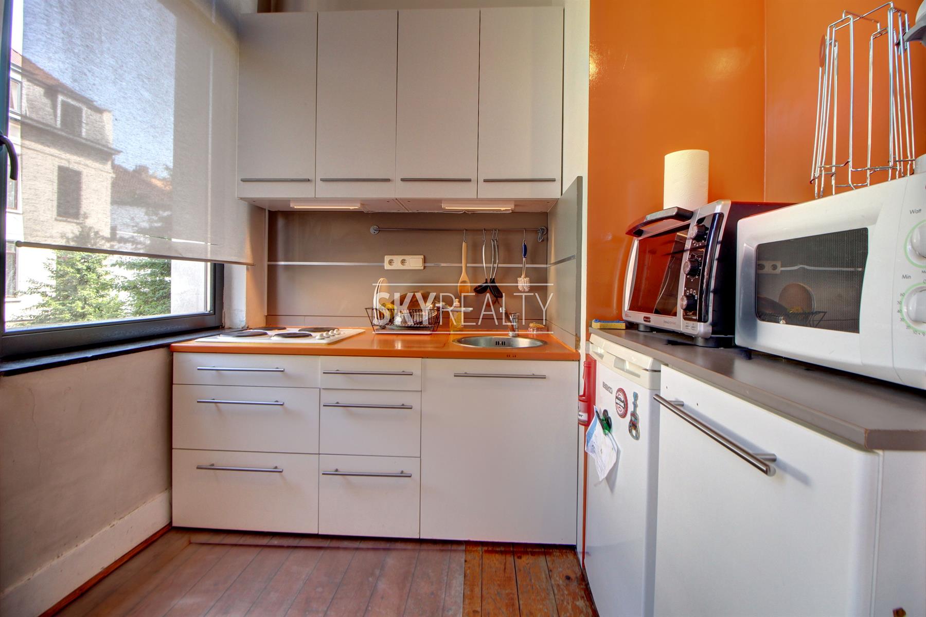 SCHUMAN : Bel appartement 1-Chambre "traversant" entièrement meublé de ± 55m² sis au premier étage (pas d'ascenseur) d’une belle maison de maître datant de 1899. Cet appartement se compose comme suit: un living lumineux avec balcon avant (vue agréable sur la rue Archimède), une cuisine «américaine » équipée (plaque vitro, frigo, four, etc.), 1 chambre (séparée du living par une bibliothèque), 1 salle de bain (douche, lavabo et WC). Hauts plafonds, moulures, planchers bois, double vitrage. Bien entièrement meublé (fer et table à repasser, aspirateur, draps, assiettes, couverts, ustensiles de cuisine, etc...). Machine à laver accessible au sous-sols. Un appartement lumineux et agréable à vivre jouissant d'une localisation parfaite à 200m de Schuman ... ... (Métro - Gare - Taxis - Villo - Cambio - STIB Airport Line) avec tous les services à proximité: cafés, restaurants, petits commerces, supermarchés, banques, pharmacies, poste, centre de fitness et médical, etc. Accès aisé aux grands axes autoroutiers. Le Parc du Cinquantenaire est à 2 minutes à pied. Loyer 790€ + 65€ de charges (provision pour eau chaude/froide, chauffage, entretien des espaces communs, électricité de l'appartement, internet et téléphone). Infos & Visites: David +32 495 511 555. Plusieurs biens similaires disponibles.