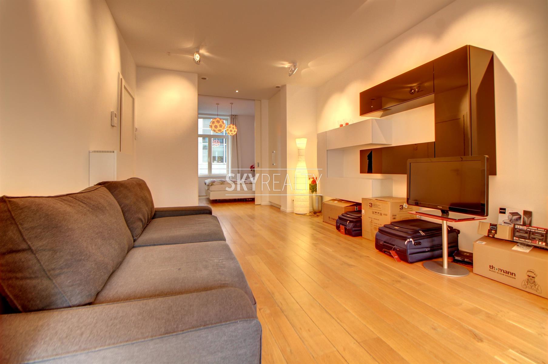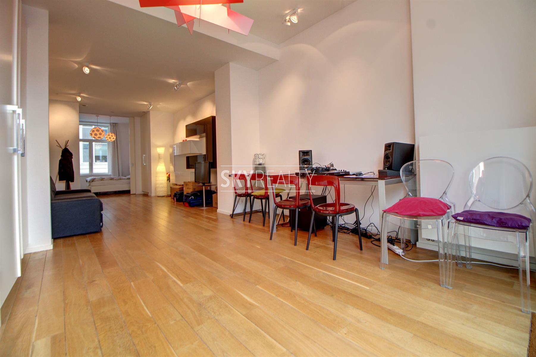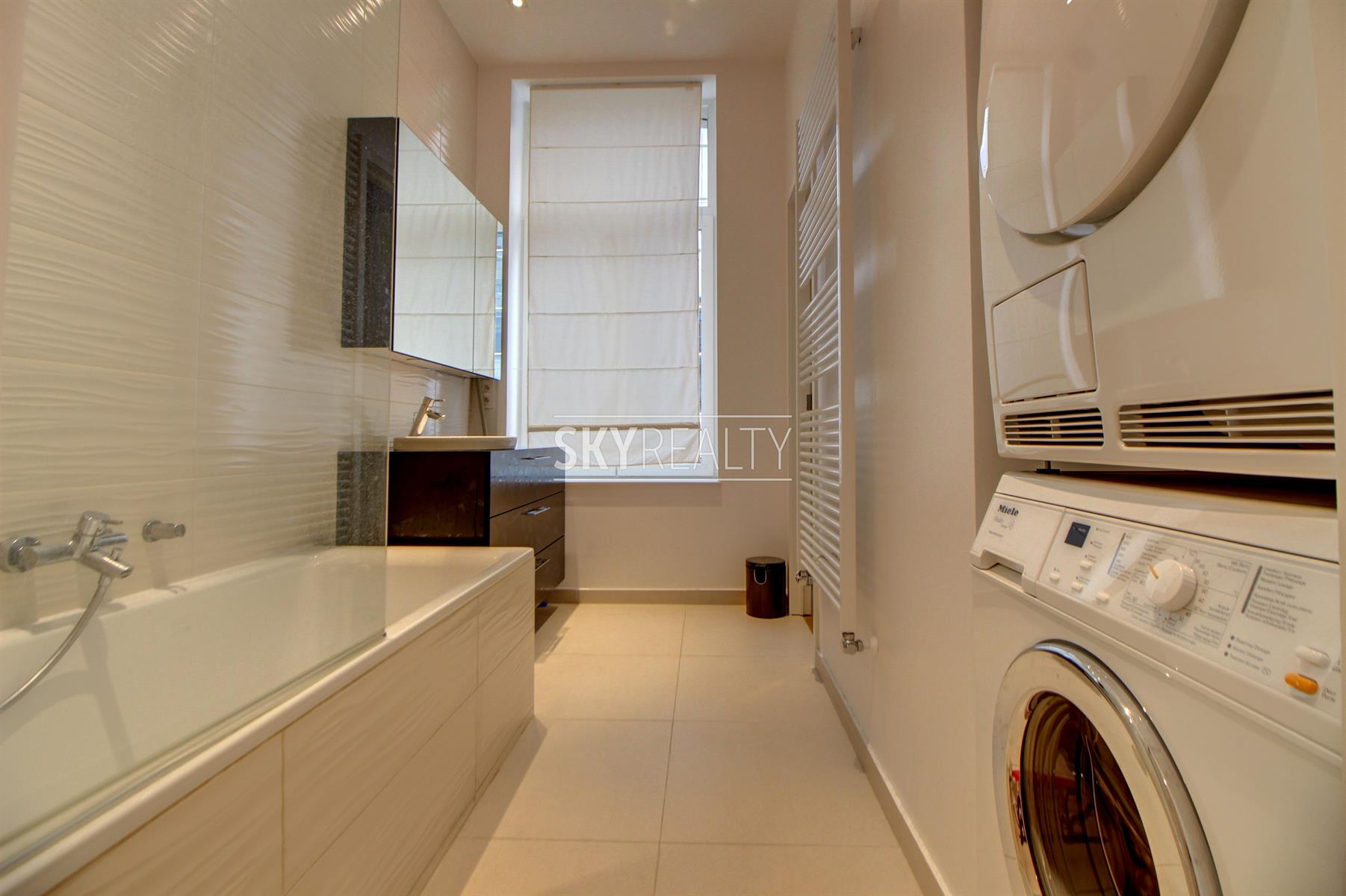SCHUMAN: Sublime Appartement 1 chambre Meublé de ± 80 m² entièrement rénové de A à Z avec un architecte d'intérieur (avec des matériaux de qualité) sis au 2e étage (avec ascenseur) d'une belle maison de Maître. Il se compose comme suit: un living lumineux de ± 40 m² (exposé ouest, avec un beau parquet en chêne massif, une cuisine hyper-équipée (100% Miele: réfrigérateur-congelateur, plaque vitro, hotte, lave-vaisselle, assiettes, couverts, ustensiles de cuisine, etc.), une grande chambre de ± 13m², une salle de bain (bain, évier, douche, un coin avec une machine à laver et séchoir Miele), une toilette séparée (avec porte coulissante pour un accès également via la SDB). Finitions haut de gamme, décoration moderne, luminaire design et spots leds, double vitrage de qualité supérieure partout, ascenseur, visiophone (Aiphone), armoires et rangement sur mesure dans tout l'appartement. Local vélos. Une adresse prisée à 2 minutes à pied de Schuman (Métro - Gare - Taxis - Villo - STIB Airport Line, Voitures partagées, etc.), au calme mais proche de toutes les commodités: restaurants, bars, supermarchés et commerces de proximité, centre de fitness et médical et accès aisé aux grands axes autoroutiers. Le Parc du Cinquantenaire à 2 minutes à pied. Un quartier sécurisé, verdoyant et très agréable à vivre. Libre immédiatement. Loyer 1390€ + 80€ de charges/mois (Chauffage, eau, communs et assurance locative incluse avec abandon de recours). Infos et visites: David: 0495 511 555.