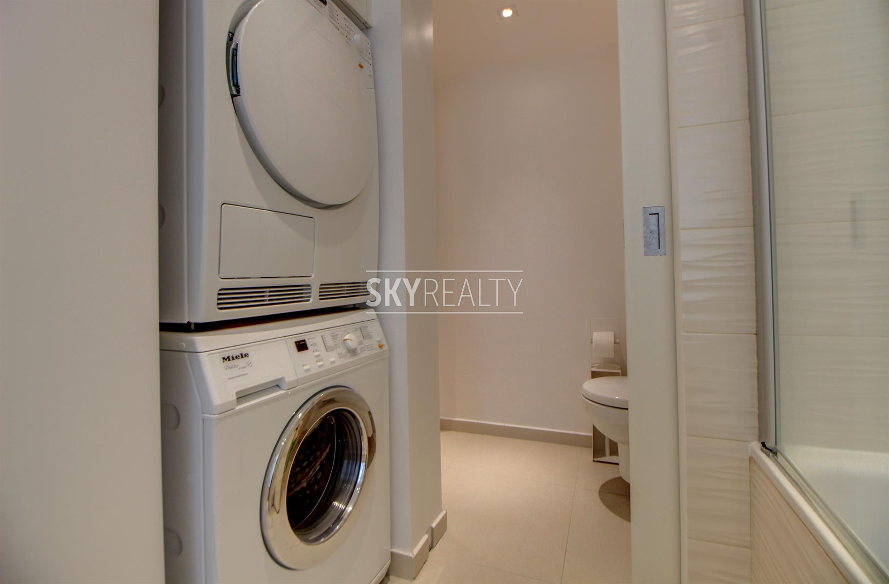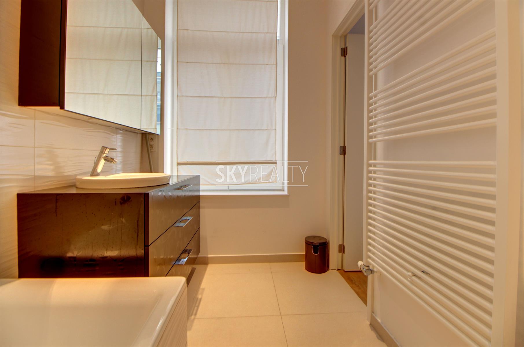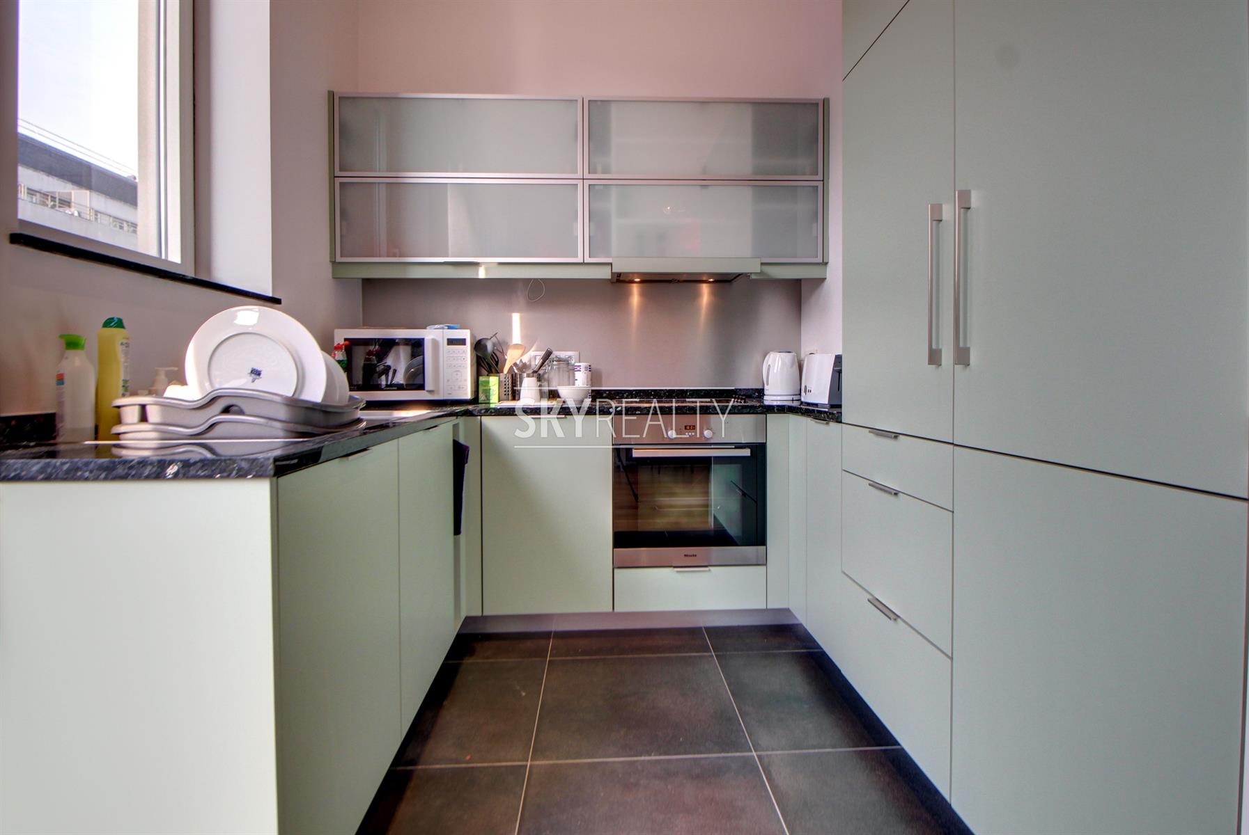 SCHUMAN: Sublime Appartement 1 chambre Meublé de ± 80 m² entièrement rénové de A à Z avec un architecte d'intérieur (avec des matériaux de qualité) sis au 2e étage (avec ascenseur) d'une belle maison de Maître. Il se compose comme suit: un living lumineux de ± 40 m² (exposé ouest, avec un beau parquet en chêne massif, une cuisine hyper-équipée (100% Miele: réfrigérateur-congelateur, plaque vitro, hotte, lave-vaisselle, assiettes, couverts, ustensiles de cuisine, etc.), une grande chambre de ± 13m², une salle de bain (bain, évier, douche, un coin avec une machine à laver et séchoir Miele), une toilette séparée (avec porte coulissante pour un accès également via la SDB). Finitions haut de gamme, décoration moderne, luminaire design et spots leds, double vitrage de qualité supérieure partout, ascenseur, visiophone (Aiphone), armoires et rangement sur mesure dans tout l'appartement. Local vélos. Une adresse prisée à 2 minutes à pied de Schuman (Métro - Gare - Taxis - Villo - STIB Airport Line, Voitures partagées, etc.), au calme mais proche de toutes les commodités: restaurants, bars, supermarchés et commerces de proximité, centre de fitness et médical et accès aisé aux grands axes autoroutiers. Le Parc du Cinquantenaire à 2 minutes à pied. Un quartier sécurisé, verdoyant et très agréable à vivre. Libre immédiatement. Loyer 1390€ + 80€ de charges/mois (Chauffage, eau, communs et assurance locative incluse avec abandon de recours). Infos et visites: David: 0495 511 555.