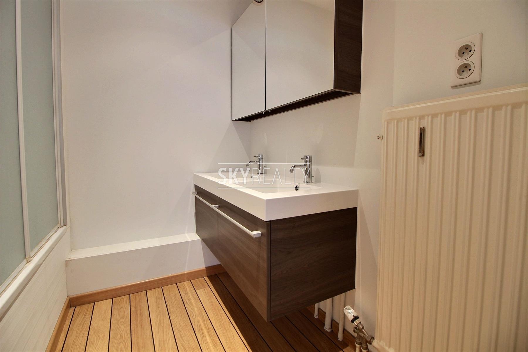 Square Ambiorix: Magnifique studio entièrement rénové de A à Z par un décorateur professionnel. Tout y a été pensé pour optimiser l'espace et obtenir un logement super fonctionnel. Tout est là et dans un style résolument moderne: un salon et sa cuisine ouverte de type américaine (table de cuisson, combi four/micro-ondes, hotte, frigo intégré, une machine à laver avec séchoir combiné), un coin à dormir (quasiment une vraie chambre séparée), une salle de bain, un WC séparé "suspendu", des spots design sont intégrés dans les plafonds de tout l'appartement, une cave, Immeuble de standing avec Concierge. En résumé: un vrai petit cocon douillet, bien localisé, hyper moderne, fonctionnel, lumineux et offrant une agréable vue sur le Square Ambiorix et la rue Archimède. Une adresse très prisée à 2 minutes à pied de Schuman (Métro - Gare - Airport Line - Taxis - Villo - Cambio), au calme mais proche de toutes les commodités, restaurants, bars, supermarchés, commerces de proximité, centre de fitness et médical, poste, etc. Accès aisé aux grands axes autoroutiers. Le Parc du Cinquantenaire à 3 minutes à pied. Un quartier hyper sécurisé, verdoyant, vivant et très agréable à vivre. Libre le 1 janvier 2016. Infos et visites: +32495511555. (7J/7).