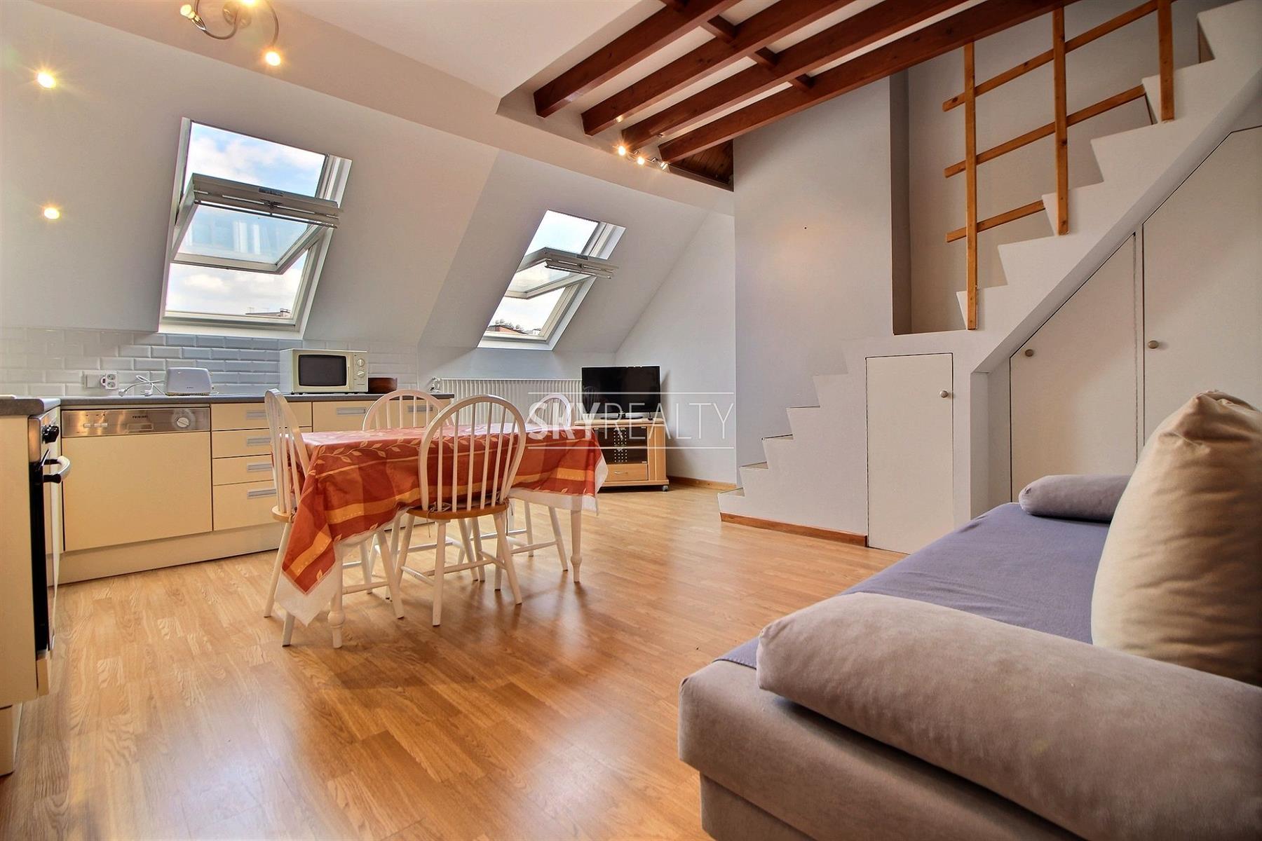 SCHUMAN: Bel appartement duplex 1 chambre “meublé” très lumineux de ± 60m² au 3e et dernier étage (avec ascenseur) dans une maison de maître, il offre: au 3e: un living (exposé sud) avec une spacieuse cuisine américaine hyper-équipée (frigo, plaque vitro, hotte, four, four à micro-ondes, lave vaisselle, petits électroménagers, ensemble complet couverts-assiettes-verres-et-ustensiles de cuisine, etc.), de nombreux placards très pratiques; à l'étage au 4e: une chambre à l’arrière (calme avec vue sur les jardins), une salle de bain (bain, évier, WC et une machine à laver), un coin bureau, une espace "lecture", des placards très pratiques. Double vitrage. Appartement complètement meublé (TV, fer à repasser, aspirateur, draps de lit, etc.). ... ... Option femme de ménage sur demande. Une adresse prisée à 200m de Schuman (Métro - Gare - Taxis - Villo - Cambio - STIB Airport Line - etc.) avec tous les services à proximité (supermarchés, petits commerces, banques, pharmacies, poste, centre de Fitness et médical, cafés, brasseries, restaurants, etc.). Accès aisé aux grands axes autoroutiers. Le Parc du Cinquantenaire est à 2 minutes à pied. Un quartier sécurisé, verdoyant et très agréable à vivre. Libre immédiatement. Loyer 700€ + 250€ de charges (Forfait ALL-IN pour : chauffage, eau chaude/froide, électricité, Internet et TV digitale chez Proximus, assurance "abandon de recours" et entretien des parties communes). Infos et visites: +32 495 511 555. available.