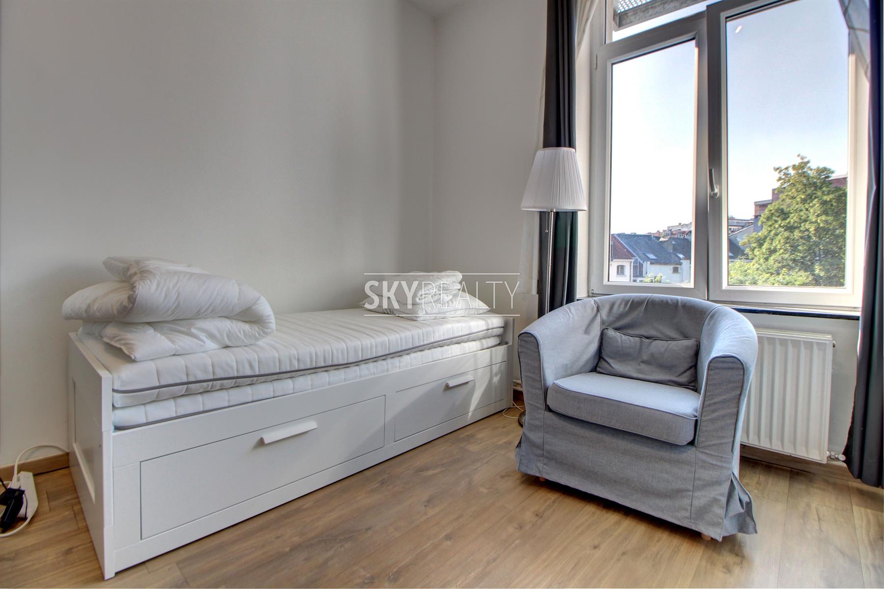 *** Loué *** SCHUMAN: à 200m du Rond-point Schuman, sis au 2e étage /3 (avec ascenseur) à l'arrière d'une belle maison de maître, charmant studio meublé de ± 20m² qui comprend: une pièce à vivre, une cuisine ouverte super-équipée et une grande SDB (bain/douche, évier, toilette et machine à laver). Un studio rénové (nouvelles peintures, nouveaux meubles, sols, double vitrage, etc.), très calme, à l'arrière de la maison avec vue sur les jardins et complètement meublés (télévision, routeur wifi, table, chaises, garde robe, lit, commode, couverts, assiettes, casseroles, édredon, coussin, etc.). Clé avec badge magnétique et option femme de ménage (nettoyage, repassage, etc.) sur demande. Une adresse prisée à 200m de Schuman (Métro - Bus - STIB Airport/Nato Line - Gare - Taxis - Villo - Voitures partagées - etc.) avec tous les services à proximité (cafés, restaurants, supermarchés, commerces, poste, pharmacies, centre de Fitness et médical, etc.). Accès aisé aux grands axes autoroutiers. Le Parc du Cinquantenaire est à 2 minutes à pied. Un quartier sécurisé, verdoyant et très agréable à vivre. Libre immédiatement. Loyer: 600€ + 200€ de charges "ALL IN" (chauffage, eau chaude/froide, charges pour les espaces communs, Internet, TV digitale, électricité, assurance "abandon de recours"). Libre immédiatement.
