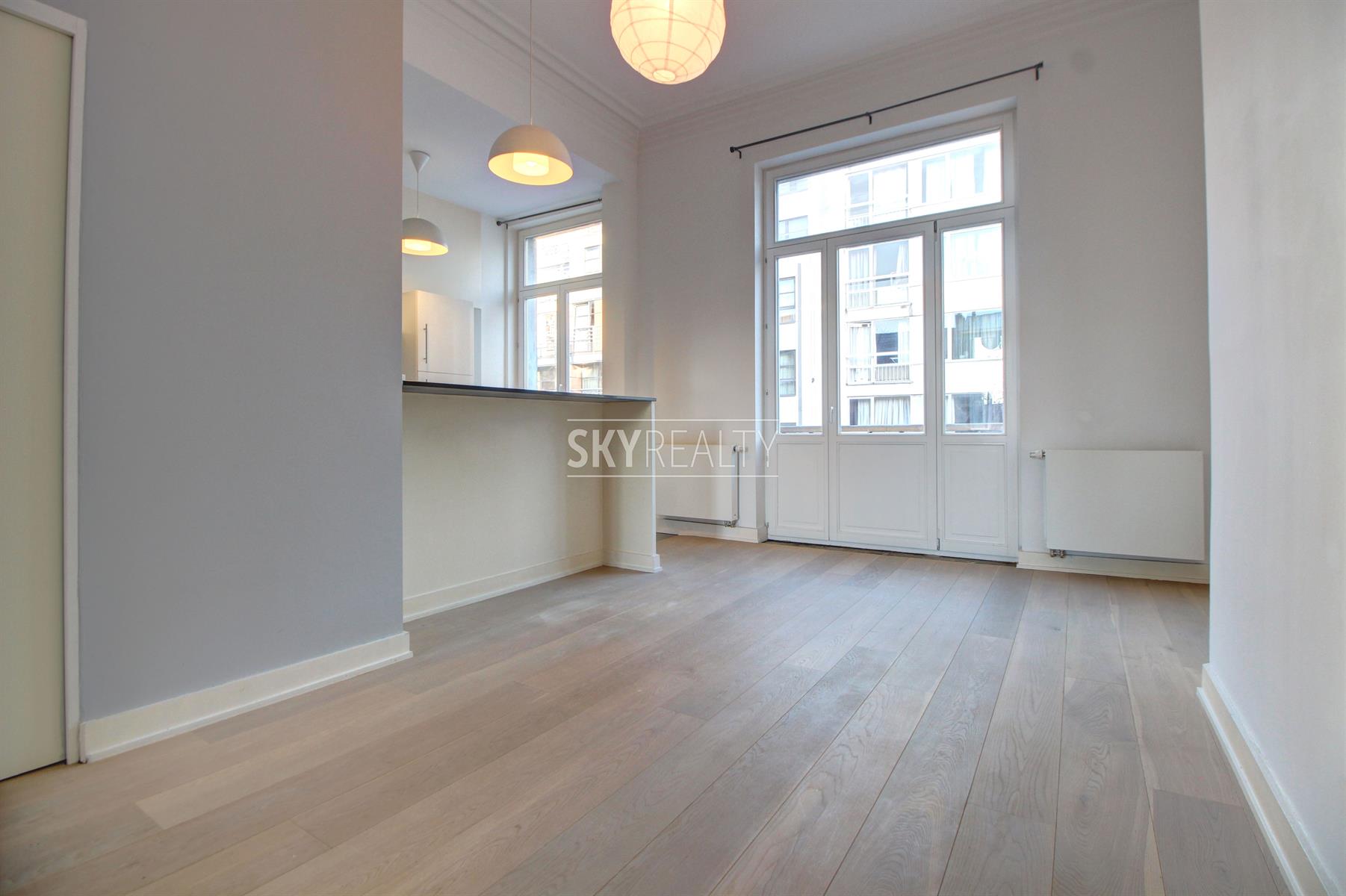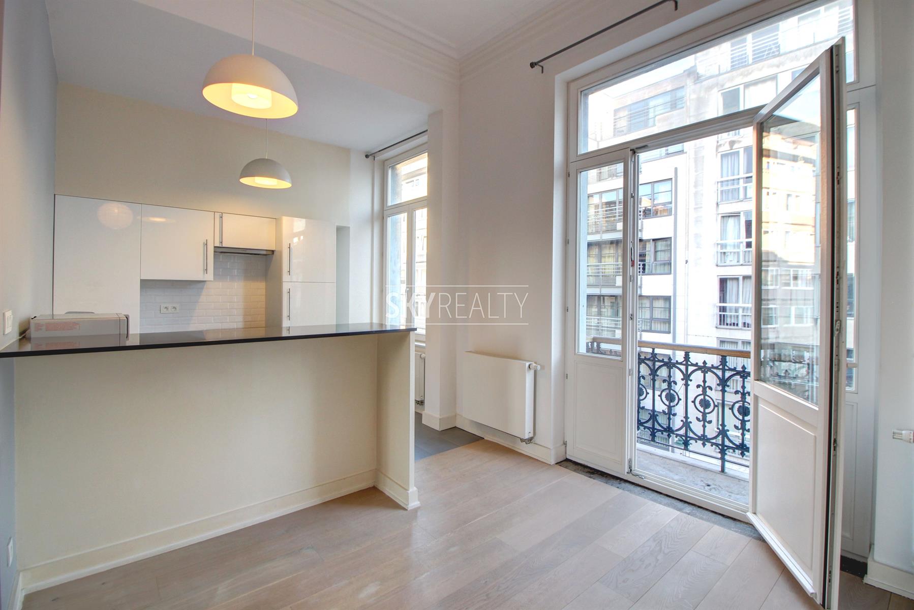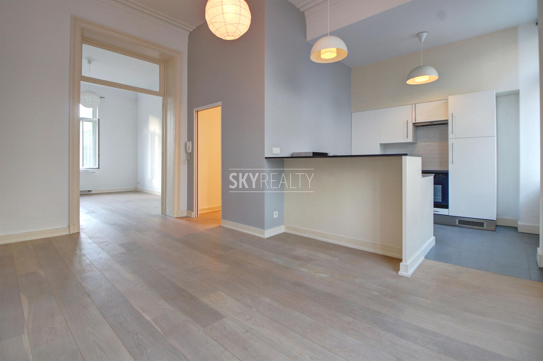* * * L o u é * * * SCHUMAN / QUARTIER EUROPEEN: Idéalement situé à 200m du Rond-point Schuman et de toutes ses facilités, ce charmant appartement 1 chambre non meublé de ± 65m² au 2e étage d'une belle Maison de Maître vous séduira pour la qualité de sa rénovation. Il se compose comme suit: une agréable living de ± 25m² avec un balcon donnant sur la rue Archimède, une spacieuse cuisine américaine super-équipée avec des appareils électroménagers SMEG (réfrigérateur, taque vitro-céramique, hotte, four, four micro-ondes, lave-vaisselle, machine à laver), une grande chambre de 16m², une salle de bain (douche, lavabo, toilette). Un appartement calme, lumineux et bénéficiant de très belles finitions: beau plancher en chêne, hauts plafonds moulurés, double vitrage avec chassis bois, plan de travail de la cuisine en quartz (Silestone), parlophone, porte sécurisée et porte d'entrée avec code d'accès, etc. Un appart agréable à vivre et une localisation prisée à deux pas de Schuman (Métro - Gare - Taxis - Villo - Cambio - STIB Airport Line - etc.) avec tous les services à proximité: restaurants, cafés, supermarchés, commerces, poste, centre de fitness, etc. Accès aisé aux grands axes autoroutiers. Le Parc du Cinquantenaire est à 3 minutes à pied. Un quartier vivant, verdoyant et sécurisé. Libre immédiatement. Bail minimum 1 année. Loyer 875€ + 50€ de charges (forfait pour les communs). Compteurs séparés à charge du preneur pour gaz de chauffage, eau et l'électricité.