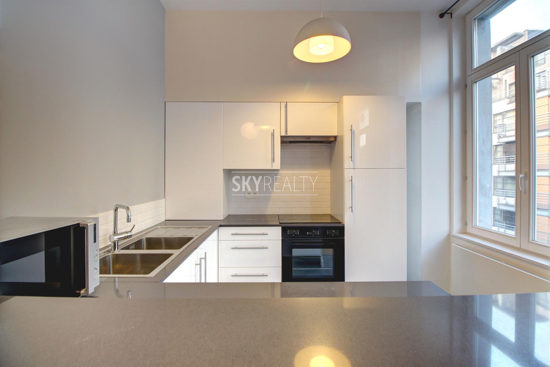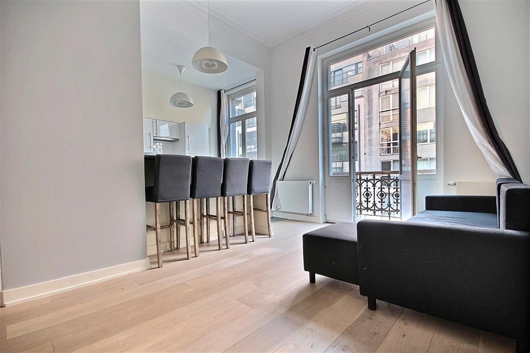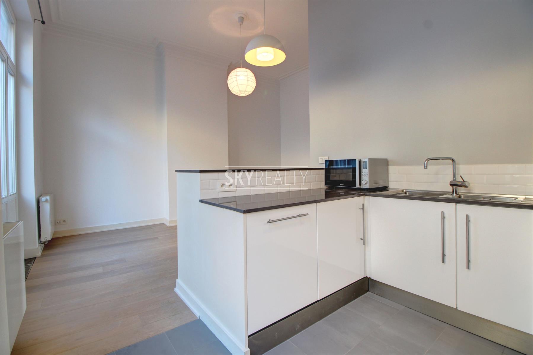 * * * L o u é * * * SCHUMAN / QUARTIER EUROPEEN: Idéalement situé à 200m du Rond-point Schuman et de toutes ses facilités, ce charmant appartement 1 chambre non meublé de ± 65m² au 2e étage d'une belle Maison de Maître vous séduira pour la qualité de sa rénovation. Il se compose comme suit: une agréable living de ± 25m² avec un balcon donnant sur la rue Archimède, une spacieuse cuisine américaine super-équipée avec des appareils électroménagers SMEG (réfrigérateur, taque vitro-céramique, hotte, four, four micro-ondes, lave-vaisselle, machine à laver), une grande chambre de 16m², une salle de bain (douche, lavabo, toilette). Un appartement calme, lumineux et bénéficiant de très belles finitions: beau plancher en chêne, hauts plafonds moulurés, double vitrage avec chassis bois, plan de travail de la cuisine en quartz (Silestone), parlophone, porte sécurisée et porte d'entrée avec code d'accès, etc. Un appart agréable à vivre et une localisation prisée à deux pas de Schuman (Métro - Gare - Taxis - Villo - Cambio - STIB Airport Line - etc.) avec tous les services à proximité: restaurants, cafés, supermarchés, commerces, poste, centre de fitness, etc. Accès aisé aux grands axes autoroutiers. Le Parc du Cinquantenaire est à 3 minutes à pied. Un quartier vivant, verdoyant et sécurisé. Libre immédiatement. Bail minimum 1 année. Loyer 875€ + 50€ de charges (forfait pour les communs). Compteurs séparés à charge du preneur pour gaz de chauffage, eau et l'électricité.