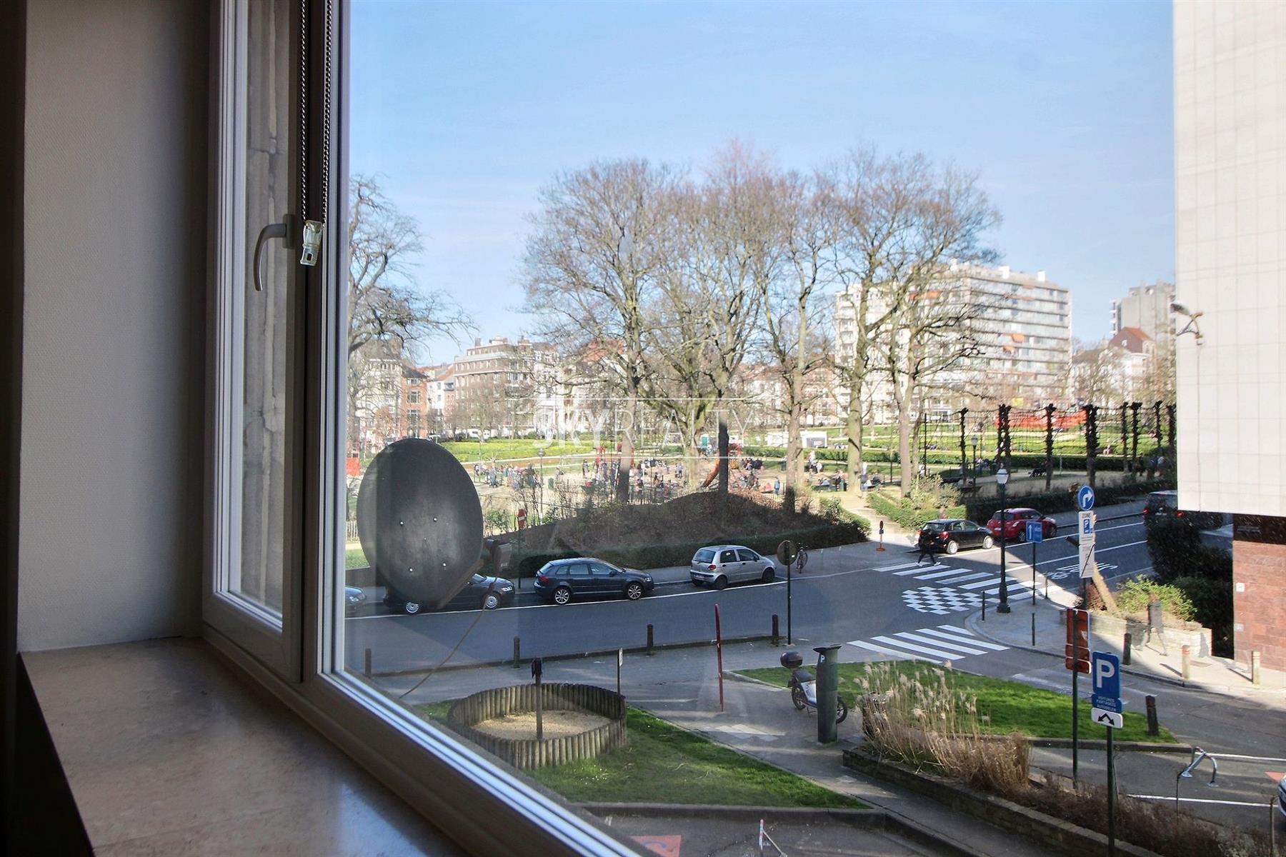 *** Loué *** SCHUMAN / QUARTIER EUROPEEN / SQUARE AMBIORIX : Bel appartement 3-Chambres d'une superficie de ± 115m² avec une jolie vue sur le Square Ambiorix. Il se compose comme suit: un grand hall d’entrée avec vestiaire et placards, un spacieux living (35m²), une cuisine hyper-équipée (accès à un petit balcon arrière), trois chambres (20m² avec accès à la terrasse arrière, 12m² et 10m²), une salle de bain (bain, et double évier), une salle de douche avec toilette et lavabo, nombreux placards et une cave. Un appartement entièrement rénové en 2014 et 2016 (nouvelles peintures, SDB, SDD, cuisine, installation électrique mise en conformité, nouveaux sols et double vitrage partout, etc.). Une adresse prisée à 300m de Schuman (Métro - Gare - Taxis - Villo - Voitures partagées - STIB Airport Line) avec tous les services à proximité: cafés, restaurants, petits commerces, supermarchés, banques, pharmacies, poste, centre de fitness et médical, etc. Accès aisé aux grands axes autoroutiers. Le Parc du Cinquantenaire est à 3 minutes à pied. Un quartier sécurisé, verdoyant et très agréable à vivre. PEB: "E". Loyer 1300€ + Charges 250€ / mois (provision pour l'eau, le chauffage et les charges communes). Infos & Visites: David : 0495.511.555.