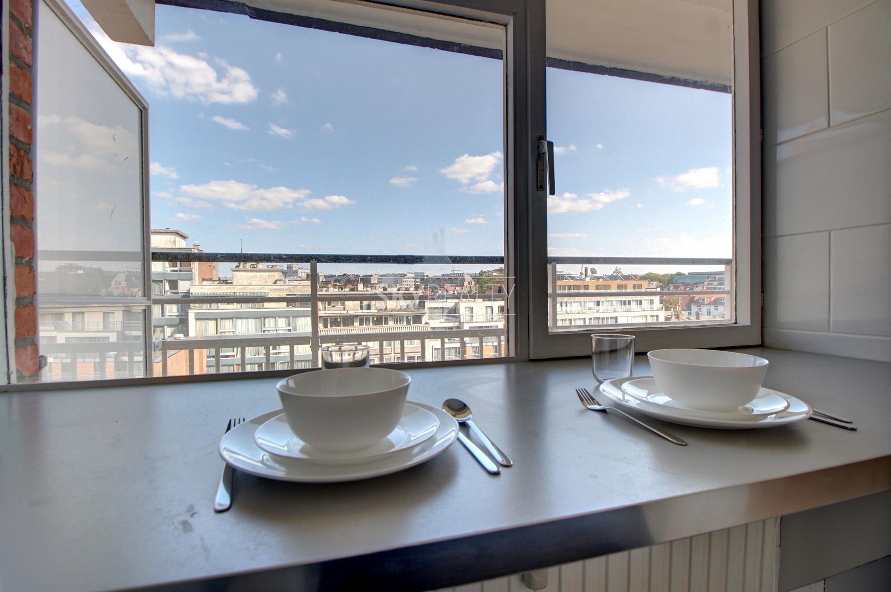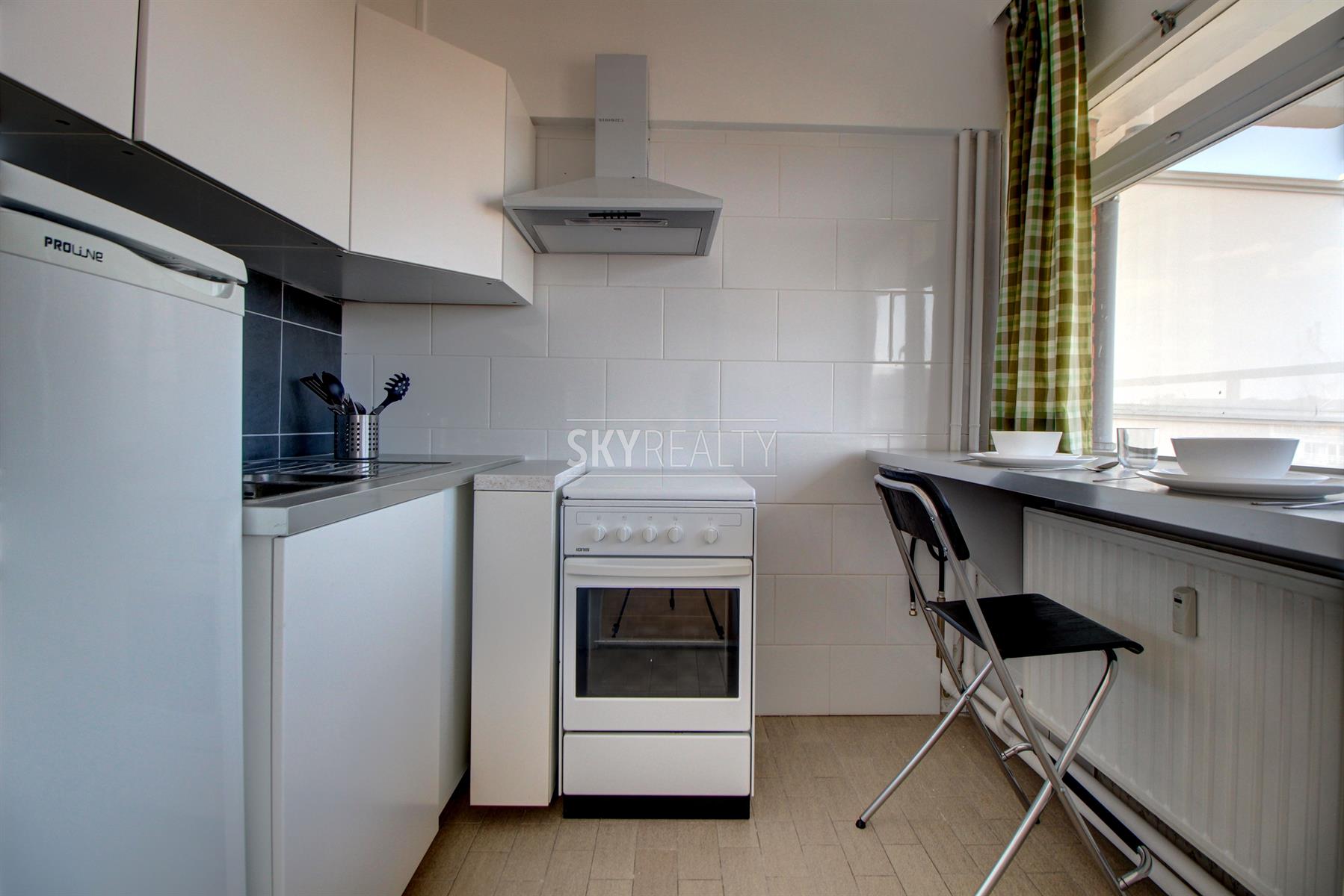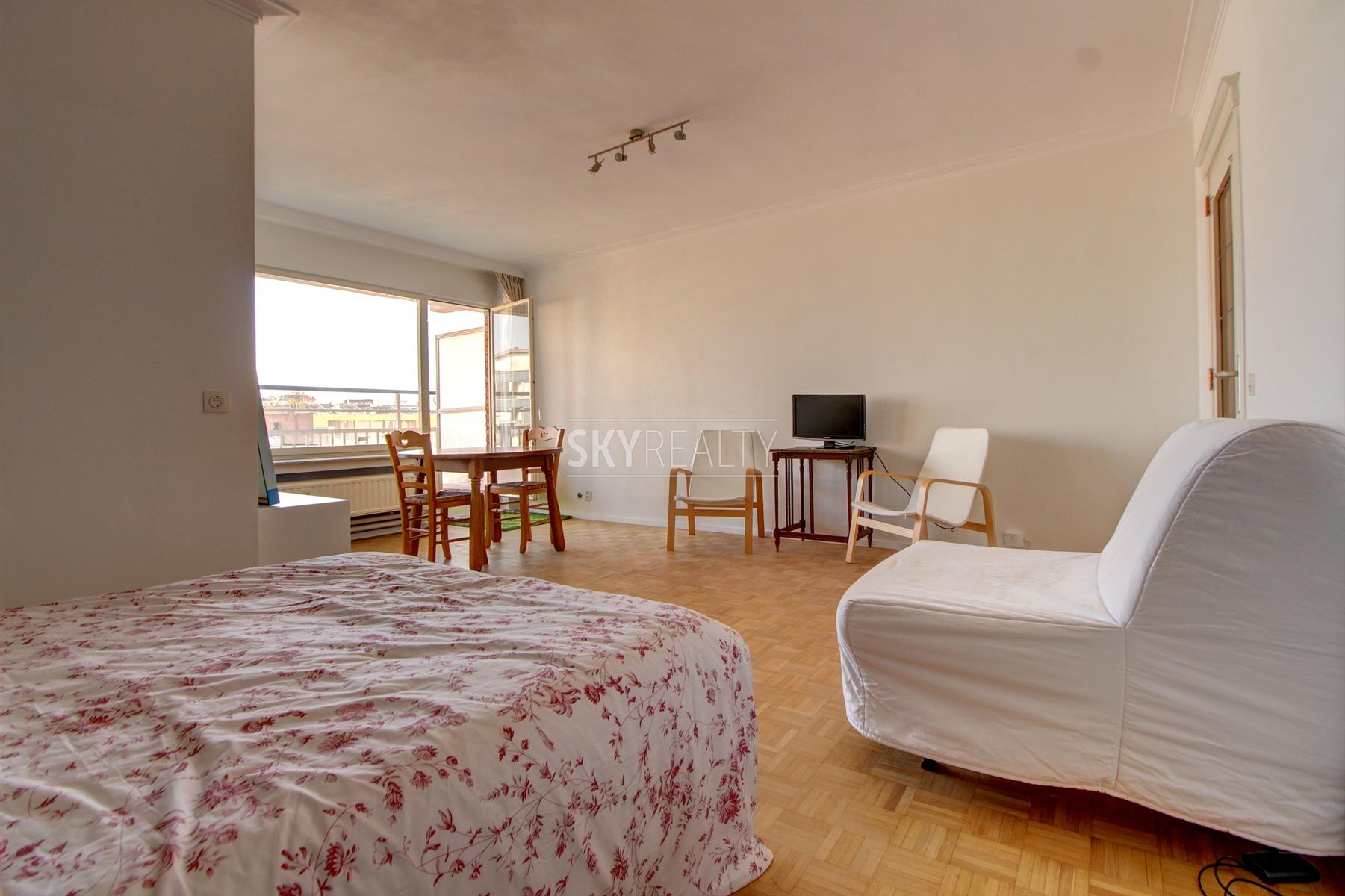 *** Loué *** SCHUMAN / QUARTIER EUROPEEN / BD CHARLEMAGNE / SQUARE AMBIORIX: Cet agréable studio meublé de ± 42m² au 9e et dernier étage (très calme) avec une belle terrasse ensoleillée se compose comme suit: un spacieux hall d'entrée avec placards et vestiaire, un séjour de ± 25m² avec un coin à dormir (lit double de 160cm de largeur) et avec un accès à la terrasse (exposée est), une cuisine équipée et rénovée (réfrigérateur, cuisinière avec taque au gaz et four, hotte, évier, meubles de rangement), une salle de douche rénovée (avec évier, toilette, un radiateur porte serviette et une machine à laver qui sera installée), une cave. Concierge dans l'immeuble. Ce studio situé à l'arrière de l'immeuble est très calme et offre une jolie vue sur le quartier. Une adresse prisée à deux pas de Schuman (Métro - Gare - Taxis - Villo - Voitures partagées - STIB Airport Line - etc.) avec tous les facilités et les services à proximité: restaurants, cafés, supermarchés, petits commerces, banques, pharmacies, poste, centre de fitness et médical, etc. Accès aisé aux grands axes autoroutiers. Le Parc du Cinquantenaire est à 3 minutes à pied. Un quartier hyper sécurisé, verdoyant, et très agréable à vivre. Loyer 700€ + 100€ de Charges (provision pour l'eau chaude/froide, le chauffage et l'entretien des parties communes). Libre 1er Mars 2019 (ou avant éventuellement). Bail minimum 1 année. Visites tous les samedis à 11h00. Confirmation par email obligatoire. Visites: David: 0495 511 555.