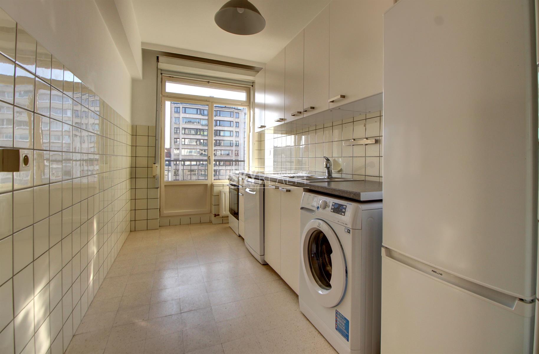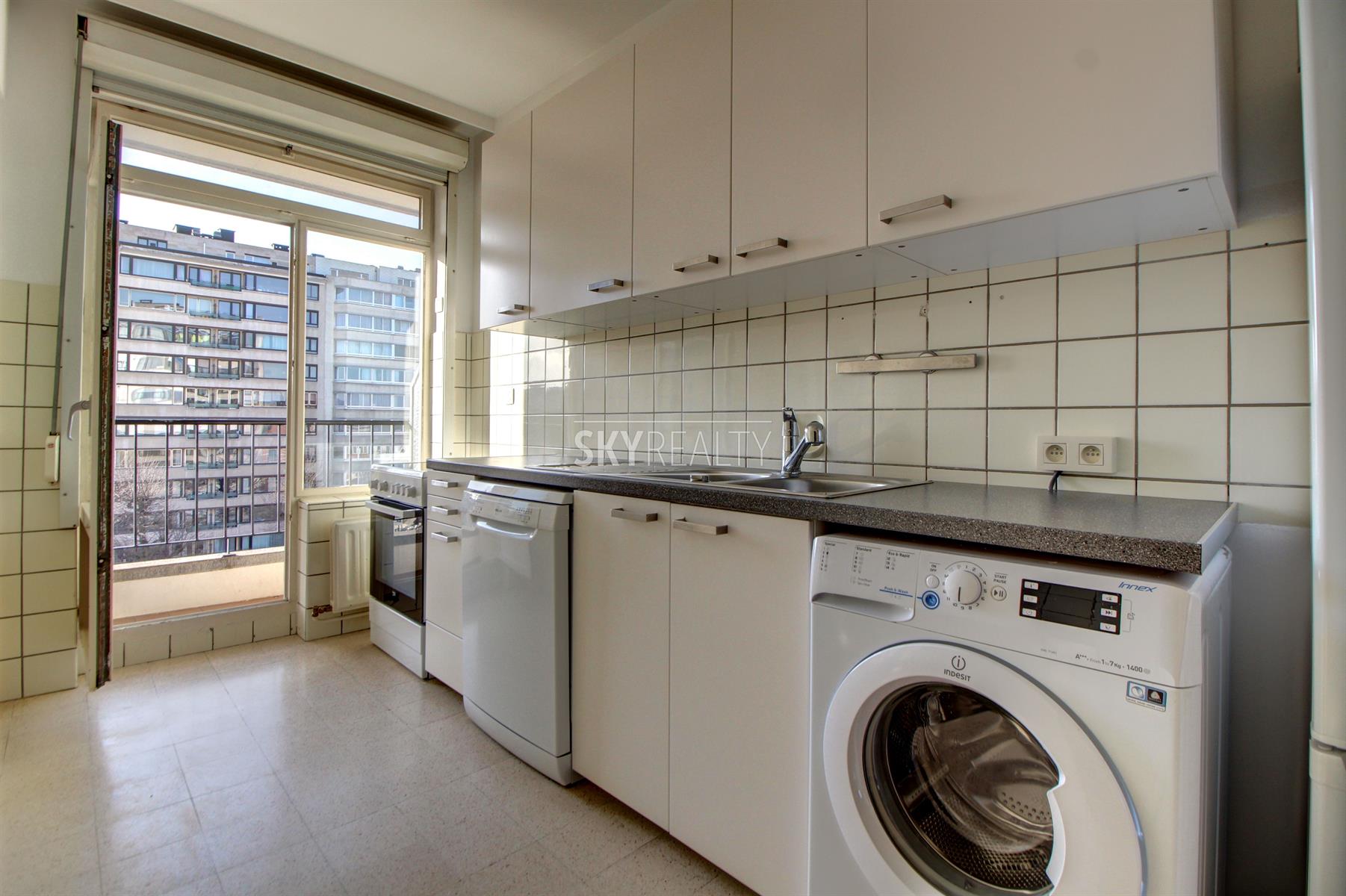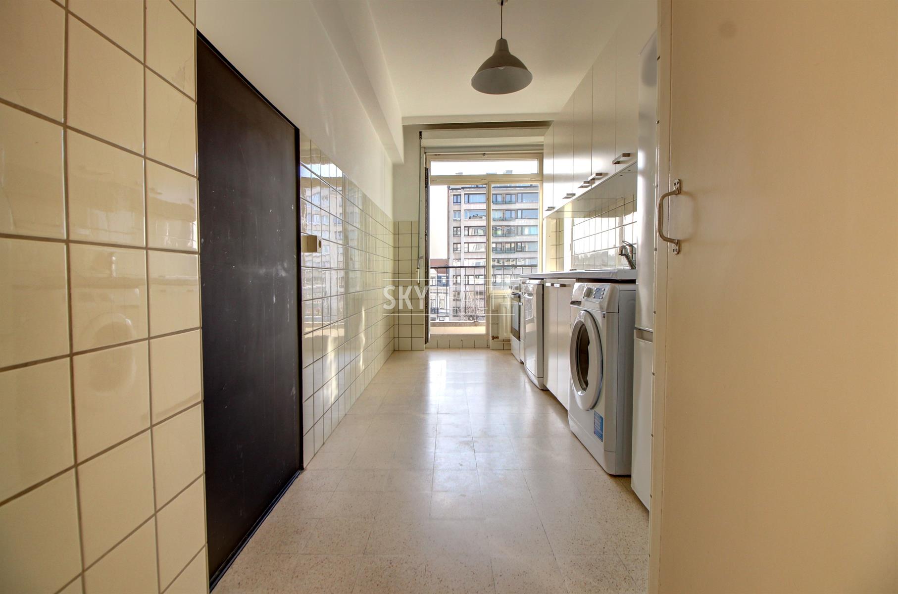*** Loué *** SCHUMAN / QUARTIER EUROPEEN: Idéalement situé à deux pas de Schuman et de toutes les facilités (commerce, métro, gare, etc.), ce bel appartement 3 chambres de ± 110 m² exposé plein sud au 5e étage (jolie vue) vous propose un excellent rapport qualité prix. Il se compose comme suit: un hall d’entrée (marbre au sol, vestiaire, placard, visiophone main libre), un grand living très lumineux (exposé sud) avec un beau parquet en chêne massif, une spacieuse cuisine super équipée (réfrigérateur-surgélateur, gazinière avec four et taque vitrocéramique, un lave vaisselle, une machine à laver) avec accès au balcon à l'avant, 3 chambres (14-12-10m² avec accès à la terrasse à l'arrière + volets occultants), une salle de bain (bain, lavabo, toilette), une salle de douche, une toilette séparée, une cave, un garage fermé au sous-sol (+100€). Concierge. Un appartement agréable à vivre. Une adresse prisée à 300m de Schuman (Métro - Gare - Taxis - Villo - Cambio - STIB Airport/Nato Line) avec tous les services à proximité: cafés, restaurants, commerces, banques, pharmacies, poste, centre de fitness et médical, etc. Accès aisé aux grands axes autoroutiers. Le Parc du Cinquantenaire est à 3 minutes à pied. Loyer 1100€ + charges 200€ (provision pour eau, chauffage et entretien des communs). Electricité de l'apartment et télécoms (TV/internet) à charge du preneur. Libre immédiatement. Appartement loué non meulé. Bail minimum 1 année. Infos & Visites: David: 0495/511.555.