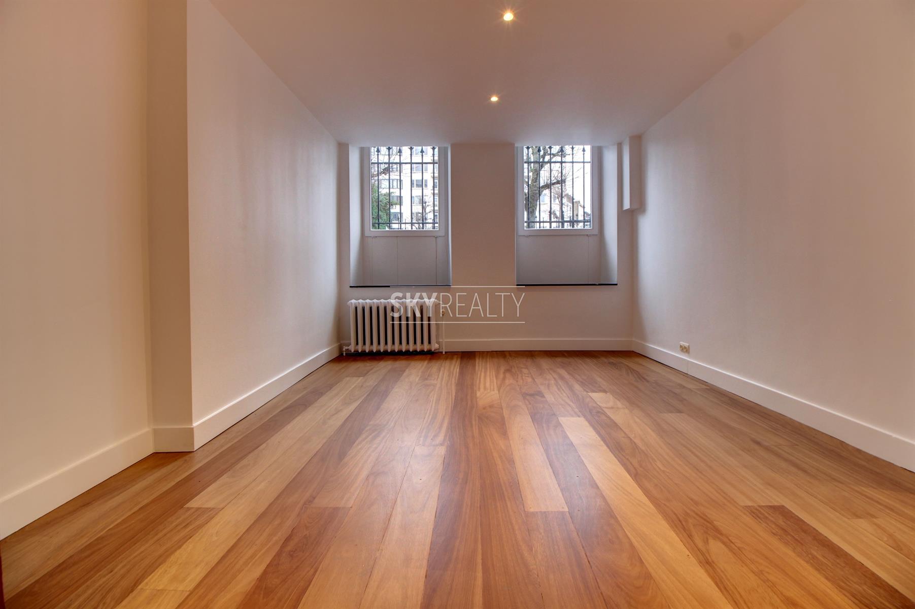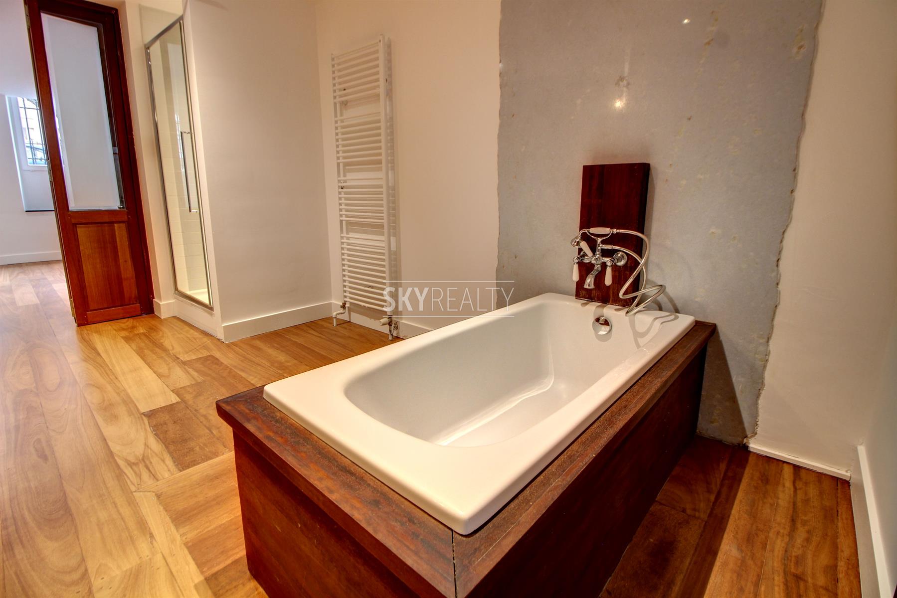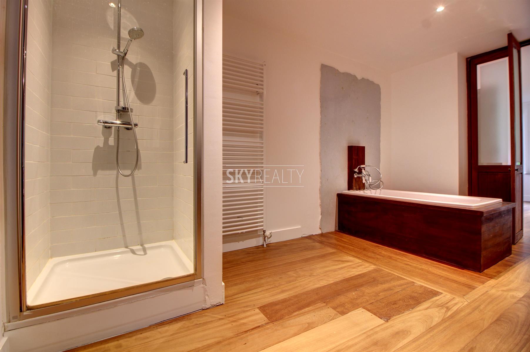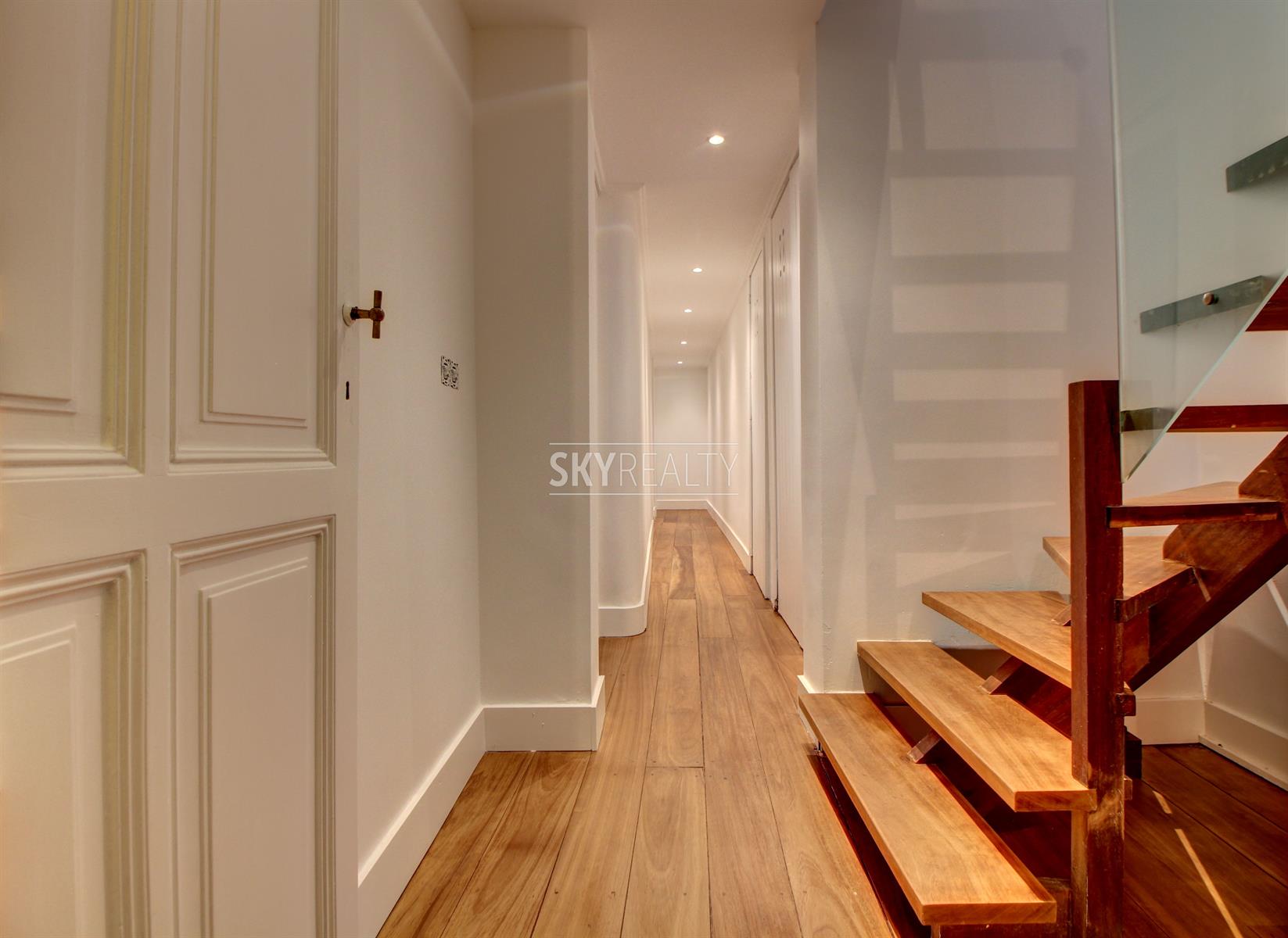 SCHUMAN / QUARTIER EUROPEEN / SQUARE AMBIORIX: Idéalement situé à proximité immédiate des transports en commun et de toutes les facilités, ce splendide duplex 2 chambres de 160 m² au rez-de-chaussée d'une belle maison de maître vous enchantera par ses beaux volumes, la qualité de sa rénovation, ses éléments d'époque parfaitement conservés et son agréable jardin exposé sud. Il se compose comme suit: au rez-de-chaussée: un hall d'entrée avec toilette invités, vestiaire et placards; un spacieux et lumineux séjour de 55 m² (3 pièces en enfilades avec beau parquet en chêne massif, hauts plafonds, moulures, cheminée en marbres, miroir), une grande cuisine design très haut de gamme (Bulthaup) et super équipée (réfrigérateur-surgélateur, taque vitrocéramique, hotte, four, lave-vaisselle, etc.), un agréable jardin exposé sud et une terrasse couverte. Au niveau inférieur: un hall de nuit, 2 grandes chambres (18 et 15 m²), une grande salle de bain de 16 m² (bain, douche, lavabo double, dressing), une toilette séparée, une buanderie équipée (machine à laver et séchoir inclus), de nombreux placards, une cave. Double vitrage chassis bois. Localisation prisée à 400m de Schuman à coté des transports (métro, bus, trains) et de tous les services (commerces, supermarchés, restaurants, etc.). Parc du Cinquantenaire à 3 min. à pied. Accès aisé aux grands axes autoroutiers. Loyer 1600€ + 250€ (provision pour chauffage, eau, entretien des communs et assurance). Infos & Visites: David: 0495 511 555