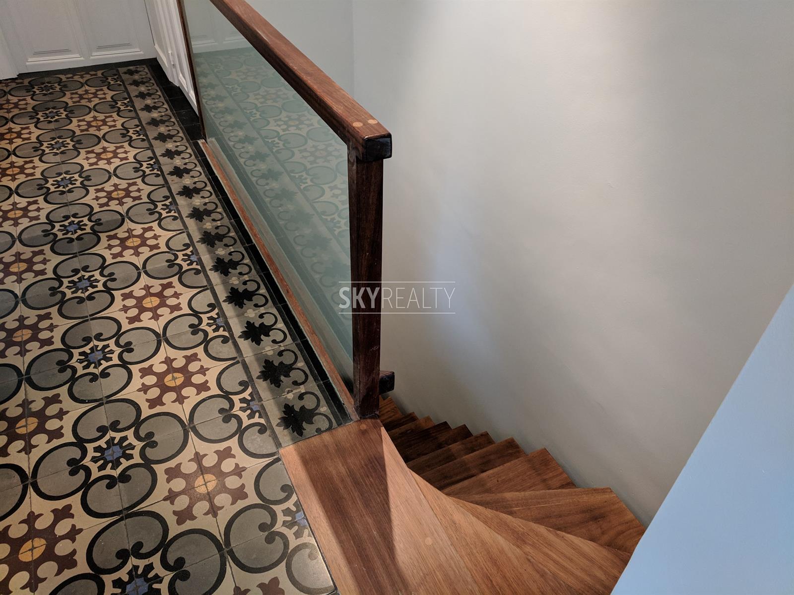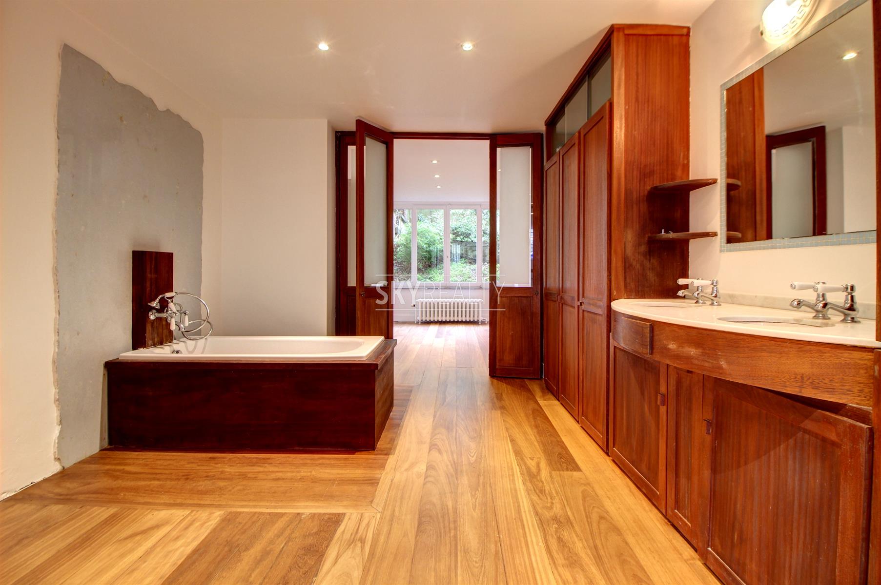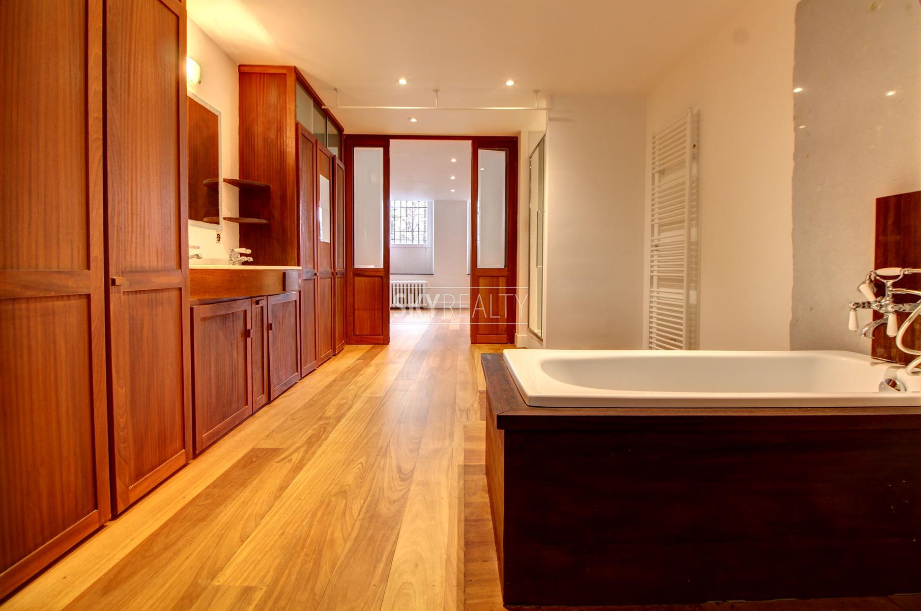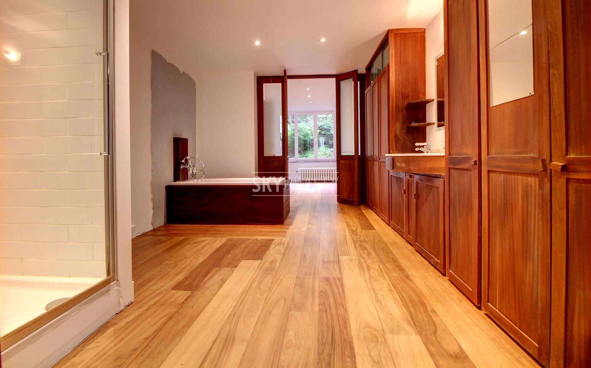 SCHUMAN / QUARTIER EUROPEEN / SQUARE AMBIORIX: Idéalement situé à proximité immédiate des transports en commun et de toutes les facilités, ce splendide duplex 2 chambres de 160 m² au rez-de-chaussée d'une belle maison de maître vous enchantera par ses beaux volumes, la qualité de sa rénovation, ses éléments d'époque parfaitement conservés et son agréable jardin exposé sud. Il se compose comme suit: au rez-de-chaussée: un hall d'entrée avec toilette invités, vestiaire et placards; un spacieux et lumineux séjour de 55 m² (3 pièces en enfilades avec beau parquet en chêne massif, hauts plafonds, moulures, cheminée en marbres, miroir), une grande cuisine design très haut de gamme (Bulthaup) et super équipée (réfrigérateur-surgélateur, taque vitrocéramique, hotte, four, lave-vaisselle, etc.), un agréable jardin exposé sud et une terrasse couverte. Au niveau inférieur: un hall de nuit, 2 grandes chambres (18 et 15 m²), une grande salle de bain de 16 m² (bain, douche, lavabo double, dressing), une toilette séparée, une buanderie équipée (machine à laver et séchoir inclus), de nombreux placards, une cave. Double vitrage chassis bois. Localisation prisée à 400m de Schuman à coté des transports (métro, bus, trains) et de tous les services (commerces, supermarchés, restaurants, etc.). Parc du Cinquantenaire à 3 min. à pied. Accès aisé aux grands axes autoroutiers. Loyer 1600€ + 250€ (provision pour chauffage, eau, entretien des communs et assurance). Infos & Visites: David: 0495 511 555