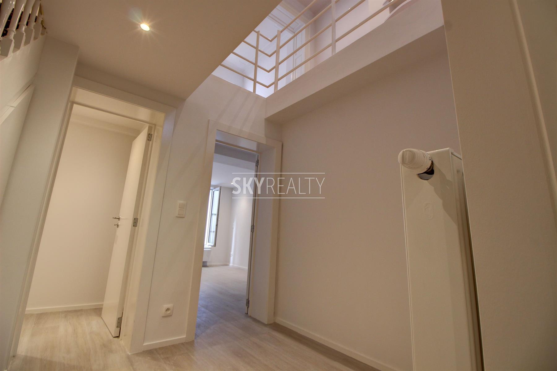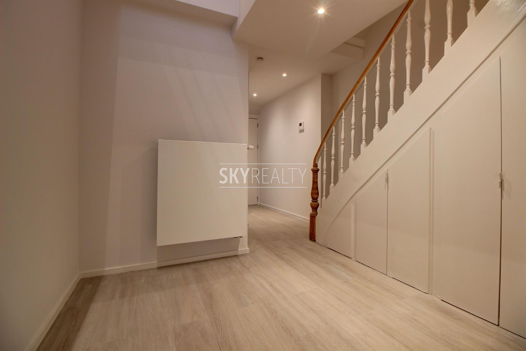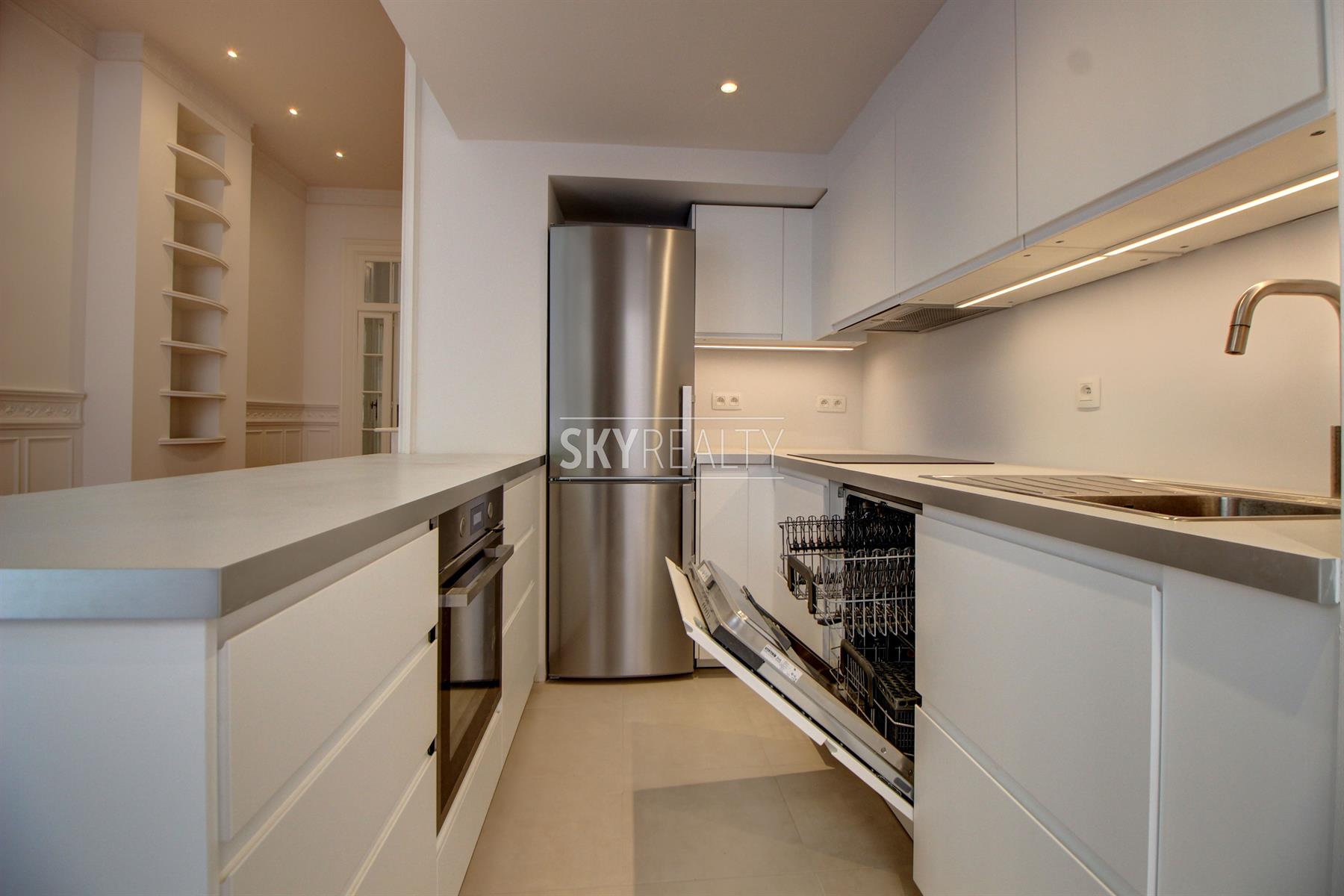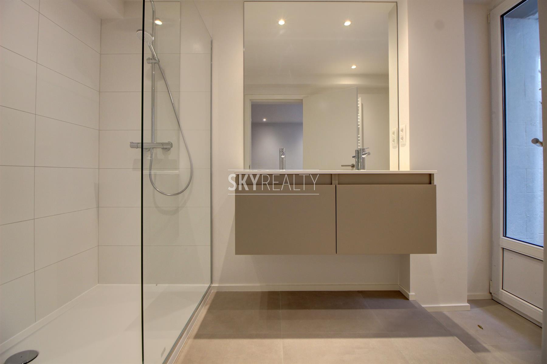 ** Loué ** SCHUMAN / QUARTIER EUROPEEN / SQUARE AMBIORIX: Idéalement situé sur le Square Ambiorix, à proximité immédiate des transports en commun et de toutes les facilités, ce splendide duplex 2 chambres de 131 m² au bel étage d'une jolie maison de maître vous enchantera par ses beaux volumes, la qualité de sa rénovation et sa son agréable jardin. Première occupation après rénovation complète. Il offre: accès via un jardinet privé, hall d'entrée, un living composé de 3 pièces en enfilade avec accès à l'agréable jardin à l'arrière (exposé ouest), une spacieuse cuisine américaine super équipée (réfrigérateur-congélateur, taque induction, hotte, four, lave-vaisselle, beaucoup de rangement) avec ilot central convivial, une toilette invité; étage inférieur: vaste hall de nuit, deux chambres (14 et 12m²), deux salles de bain en-suite (1 avec toilette + bain/douche, lavabo double vasque, radiateur porte-serviette), 1 toilette séparée, buanderie, placards. Triple & double vitrage, hauts plafonds, moulures, boiserie, parquets en marqueterie d'origine, cheminée en marbre, puits de lumière naturelle, porte blindée, thermostat d'ambiance, visiophone, etc. Localisation prisée à 300m de Schuman à coté des transports (métro, bus, trains) et de tous les services (commerces, supermarchés, restaurants, etc.). Parc du Cinquantenaire à 3 min. à pied. Accès aisé aux grands axes autoroutiers. Loyer 1900€ + 50€ (forfait pour les communs). Libre immédiatement. Infos & visites: David: 0495 511 555.