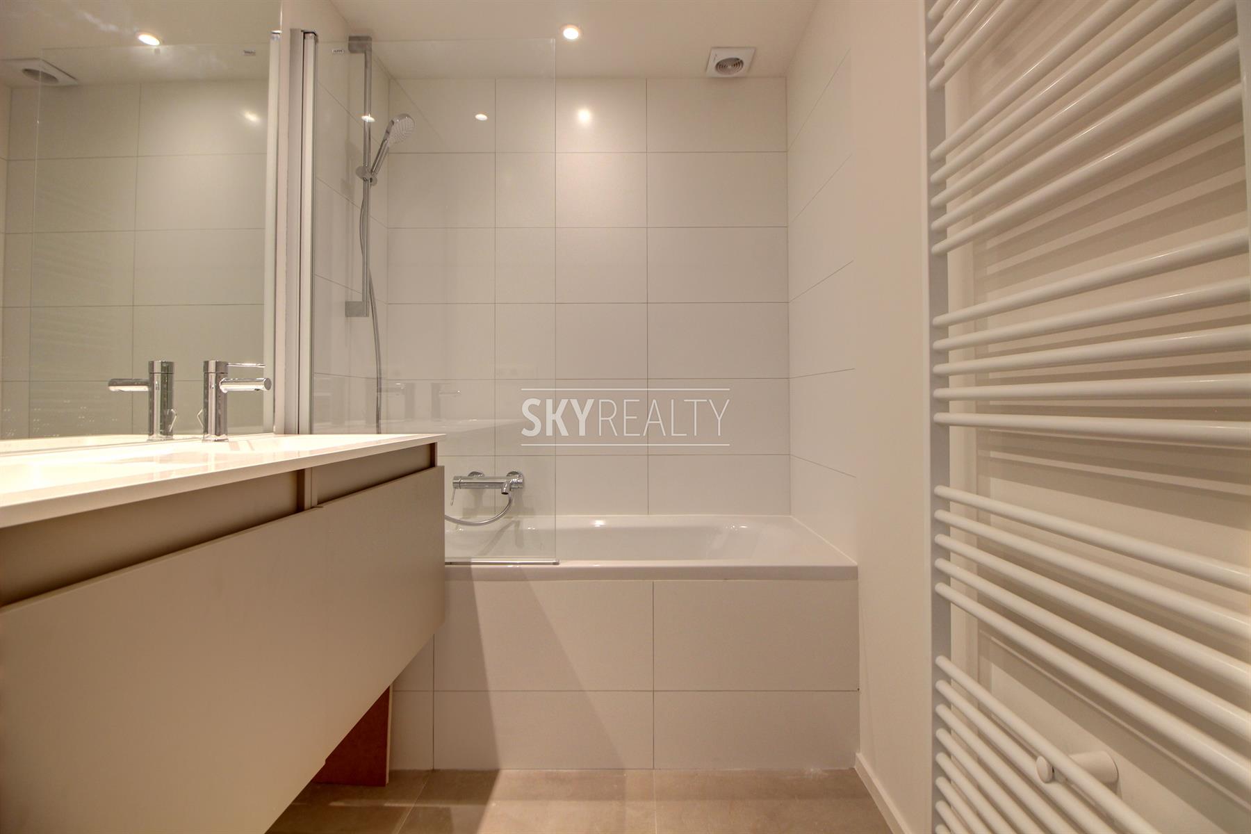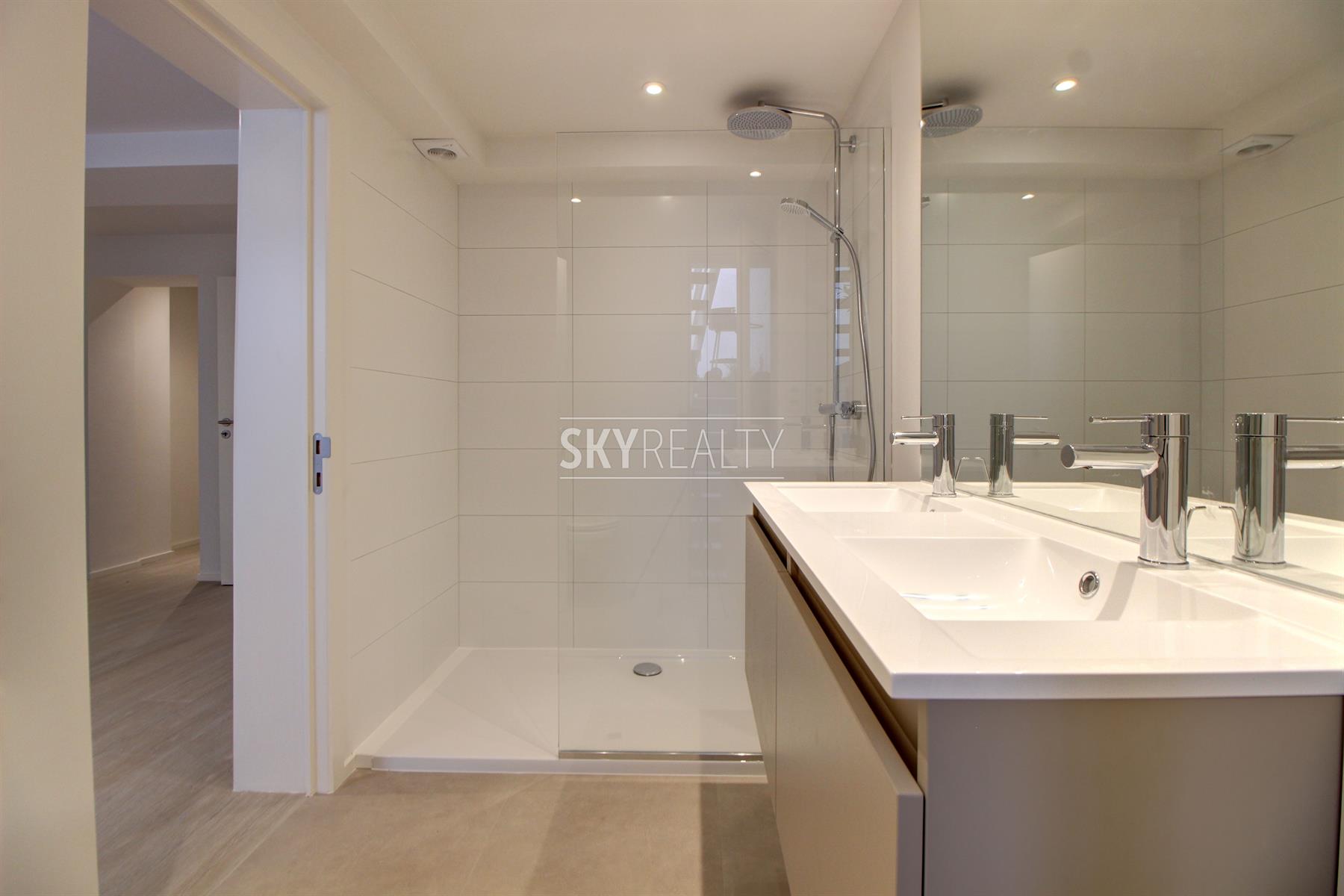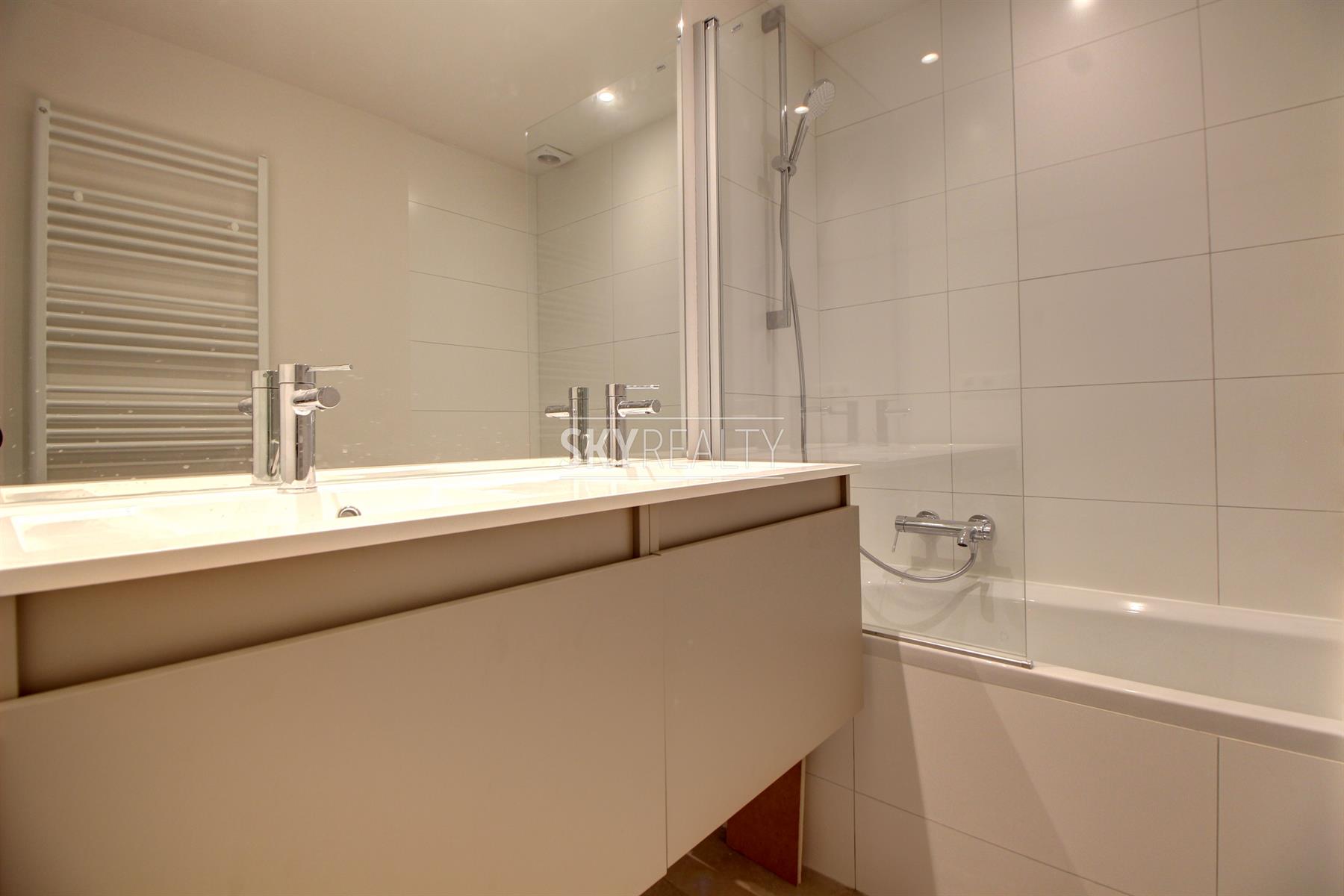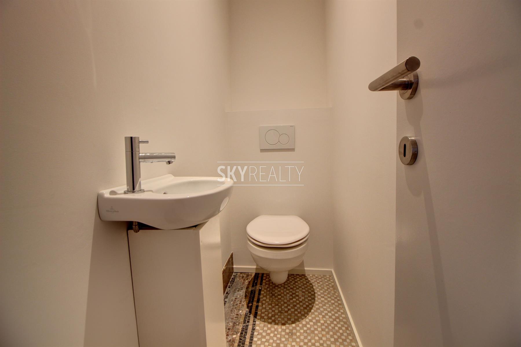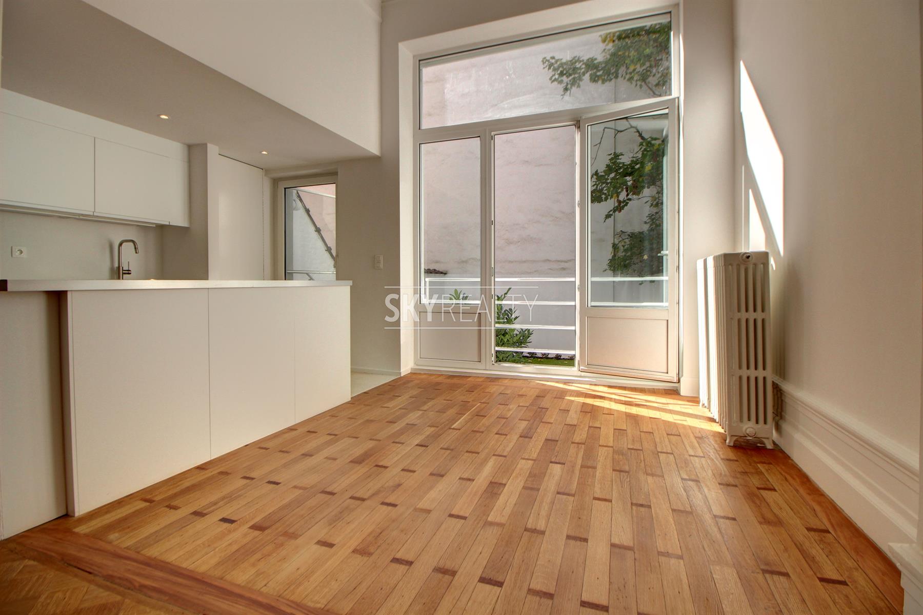 ** Loué ** SCHUMAN / QUARTIER EUROPEEN / SQUARE AMBIORIX: Idéalement situé sur le Square Ambiorix, à proximité immédiate des transports en commun et de toutes les facilités, ce splendide duplex 2 chambres de 131 m² au bel étage d'une jolie maison de maître vous enchantera par ses beaux volumes, la qualité de sa rénovation et sa son agréable jardin. Première occupation après rénovation complète. Il offre: accès via un jardinet privé, hall d'entrée, un living composé de 3 pièces en enfilade avec accès à l'agréable jardin à l'arrière (exposé ouest), une spacieuse cuisine américaine super équipée (réfrigérateur-congélateur, taque induction, hotte, four, lave-vaisselle, beaucoup de rangement) avec ilot central convivial, une toilette invité; étage inférieur: vaste hall de nuit, deux chambres (14 et 12m²), deux salles de bain en-suite (1 avec toilette + bain/douche, lavabo double vasque, radiateur porte-serviette), 1 toilette séparée, buanderie, placards. Triple & double vitrage, hauts plafonds, moulures, boiserie, parquets en marqueterie d'origine, cheminée en marbre, puits de lumière naturelle, porte blindée, thermostat d'ambiance, visiophone, etc. Localisation prisée à 300m de Schuman à coté des transports (métro, bus, trains) et de tous les services (commerces, supermarchés, restaurants, etc.). Parc du Cinquantenaire à 3 min. à pied. Accès aisé aux grands axes autoroutiers. Loyer 1900€ + 50€ (forfait pour les communs). Libre immédiatement. Infos & visites: David: 0495 511 555.