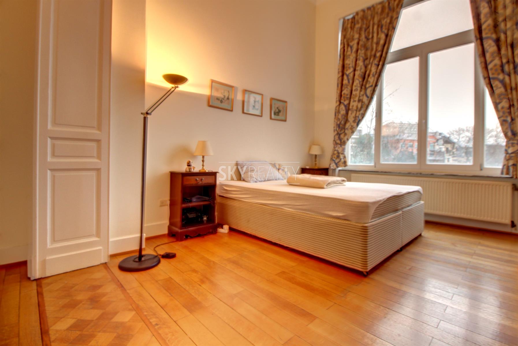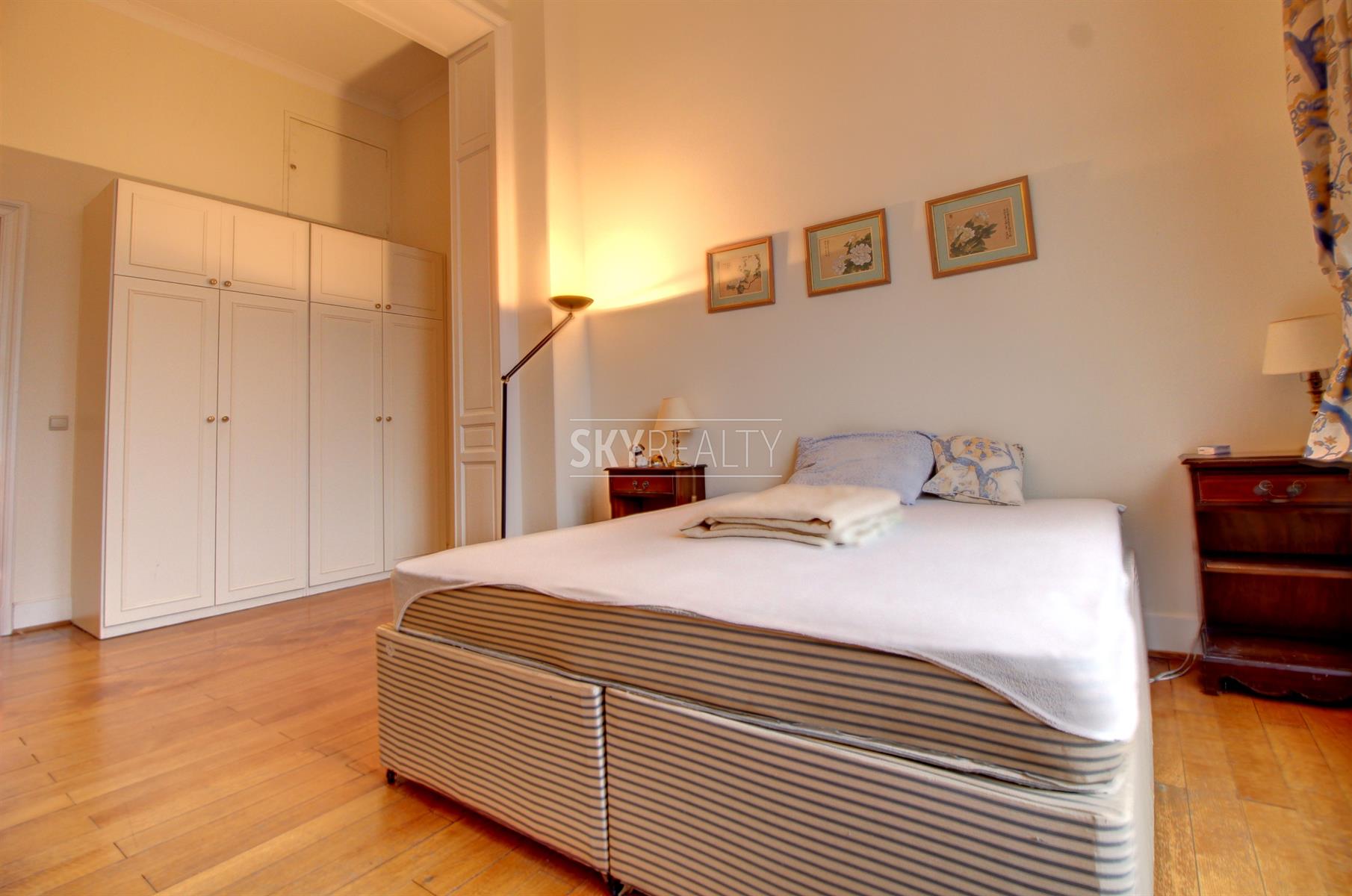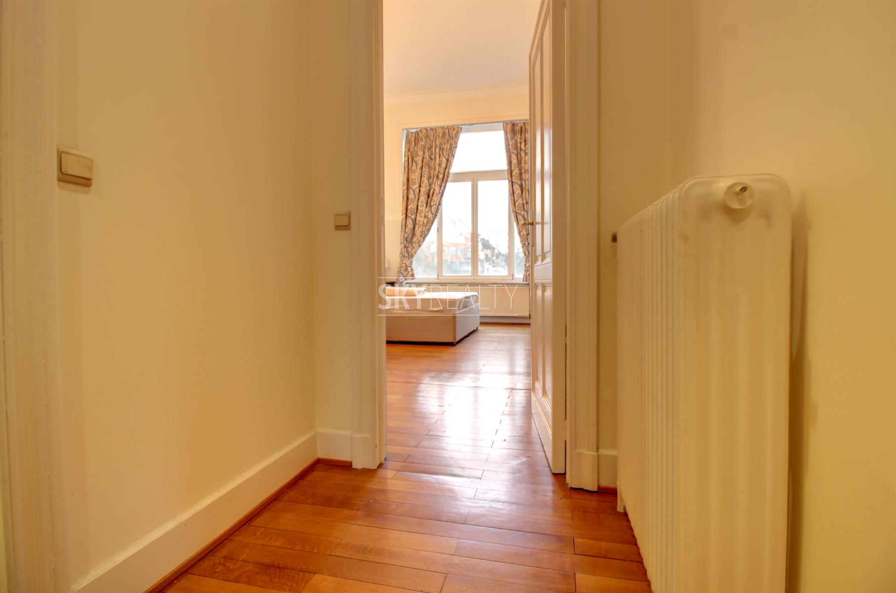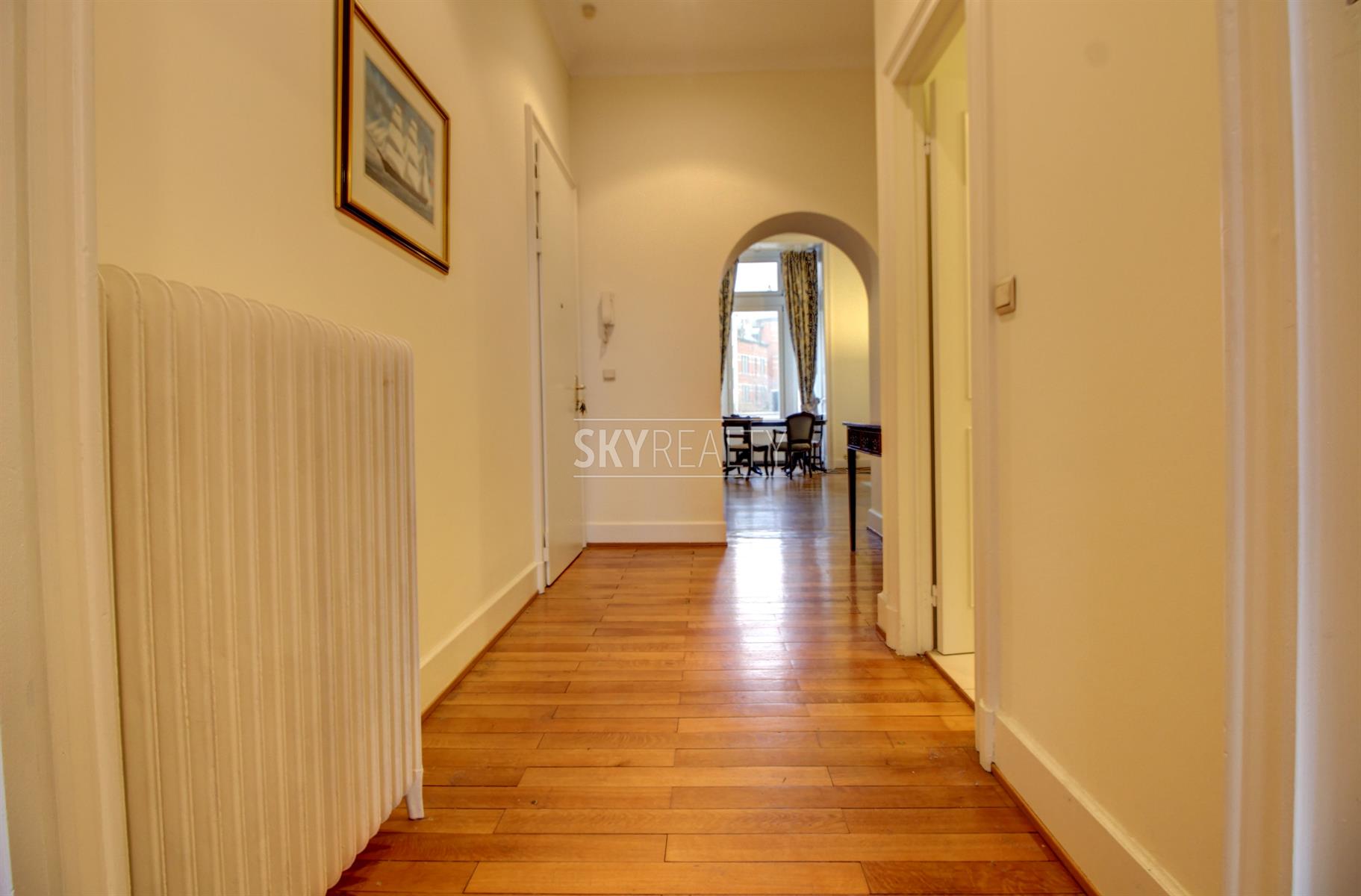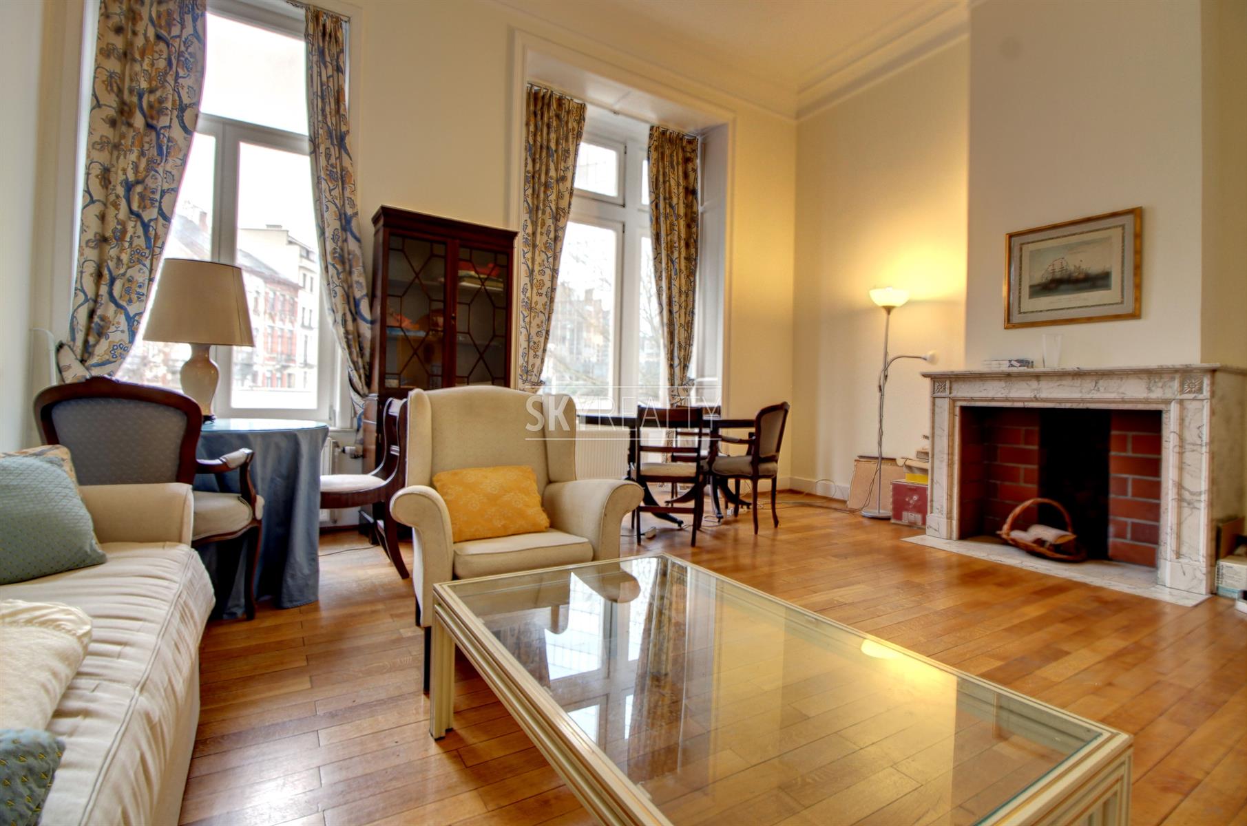 Louise / Etangs d'Ixelles / Flagey / Chatelain: Idéalement situé à 50m de l'Avenue Louise, entre les étangs d'Ixelles, la Place Flagey et le Quartier du Chatelain, ce splendide appartement meublé très spacieux de 75m² (au 1e étage d'une belle maison bourgeoise de 1904 reprise à l'inventaire du patrimoine) vous séduira par sa luminosité, son caractère, ses beaux volumes, ses belles hauteurs sous plafonds (4,00m !), ses moulures, etc. Il se compose comme suit: un vaste hall d'entrée, un beau living de 35m² avec de grandes baies vitrées (exposition sud), une cuisine super-équipée (réfrigérateur-surgélateur, taque vitrocéramique, hotte, four, micro-ondes, lave vaisselle), une grande chambre de de 25m² (très calme, située à l'arrière et disposant d'une vue agréable et reposante sur les jardins), une salle de bain (bain, lavabo, toilette), une buanderie séparée avec machine à laver incluse et emplacement pour sécher le linge, un emplacement de parking couvert très utile est également disponible et OBLIGATOIRE (rue du Lac 37) et est inclus dans le prix du loyer. Magnifique parquet d'époque en chêne massif dans tout l'appartement. Libre le 1er mars 2020. Loyer 1000€ (parking inclus obligatoire - option de sous location possible) + 0€ (!) de charges communes + consommation de l'eau offerte ! Le gaz de chauffage, l'électricité, l'internet et la TV sont à charge du preneur. Bail minimum de 1 année. Idéal pour un expatrié (couple ou célibataire). Infos et visites: David: 0495 511 555.