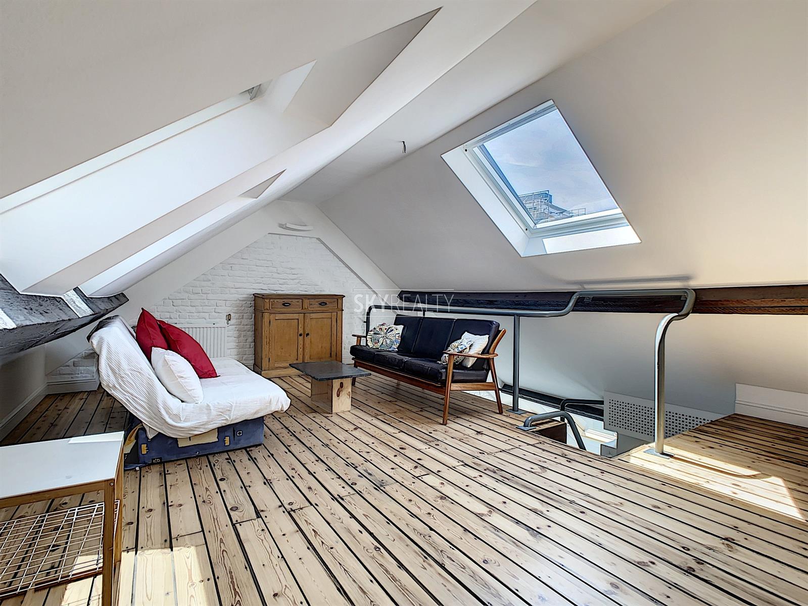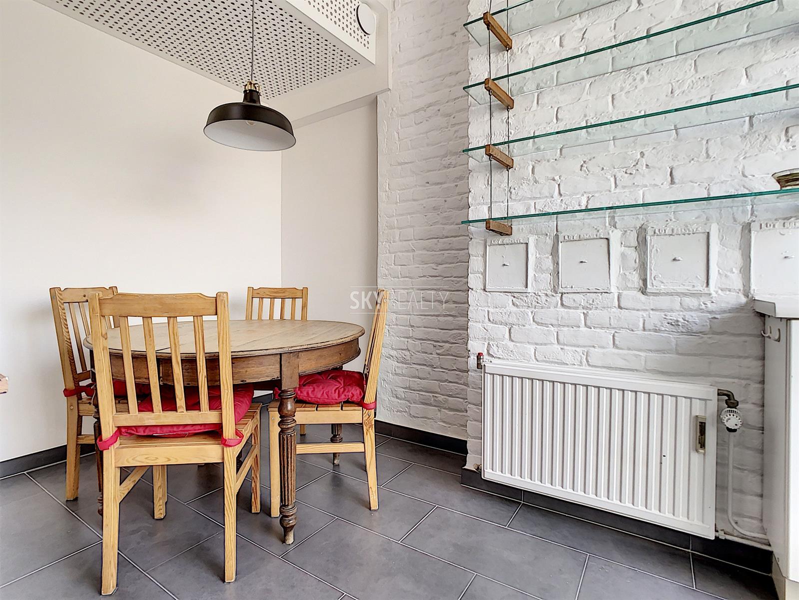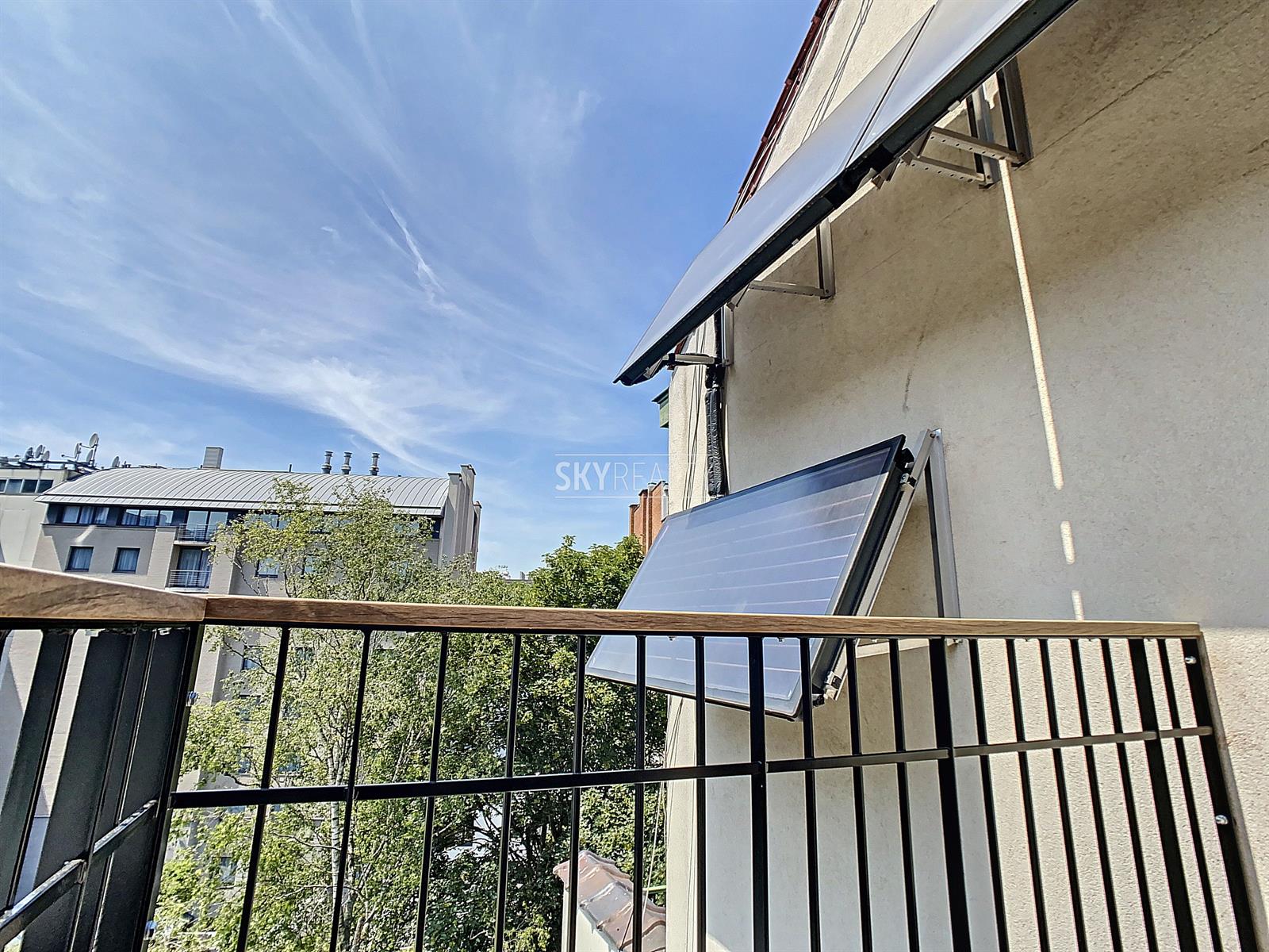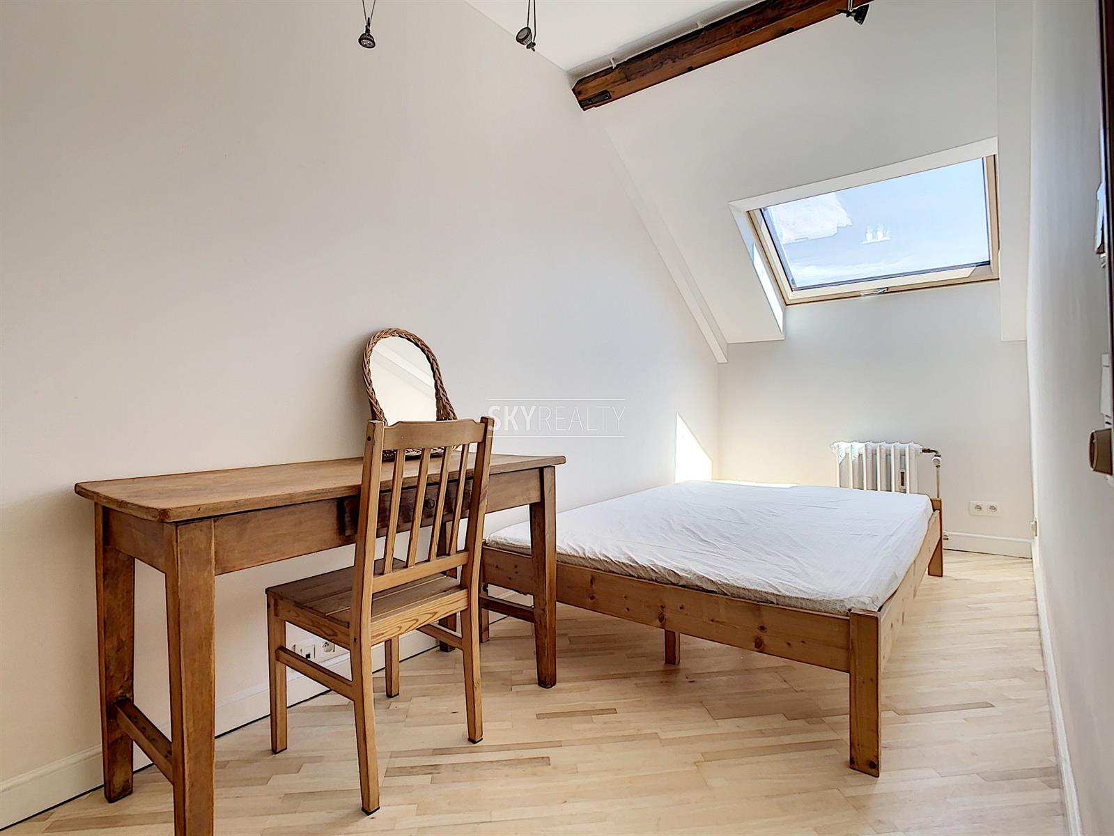 *** Loué *** SCHUMAN / QUARTIER EUROPEEN: Cet agréable appartement duplex 2 chambres meublé ± 75 m² sis au 4e et dernier étage (sans ascenseur) d’une belle maison de maître (1902) vous enchantera par sa luminosité et sa terrasse plus sud. Il comprend: à l'entresol (entre le 3e et le 4e étage): un lavabo, une toilette, une terrasse ensoleillée exposée sud + ouest (± 9 m²); au 4e étage: un hall d'entrée avec toilette et lave-mains, une salle à manger, une cuisine hyper-équipée (réfrigérateur Miele, taque de cuisson électrique, hotte Novy, four, lave-vaisselle), une petite salle de bains (douche et lavabo), un hall de nuit avec une grande armoire, une grande chambre de ± 13 m² (avec garde-robe), une 2e chambre de ± 10m² (avec garde robe); au 5e étage: le séjour. Un appartement super lumineux équipé de stores et de volets électriques et écologiquement responsable avec production de l'électricité, de l'eau chaude via des panneaux solaires, récupération de l'eau de pluie, éclairage LED, triple (et quadruple !) vitrage, façades isolées. Très faible consommation énergétique. Une localisation parfaite à proximité de Schuman (Métro - Gare - STIB Airport Line) avec tous les services à proximité. Accès aisé aux axes autoroutiers. Parc du Cinquantenaire à 5 min à pied. PEB: B. Libre immédiatement. Loyer 1000 + 100€ (provision pour le chauffage, l'eau, l'électricité, assurance avec abandon de recours et l'entretien des communs). Internet à charge du preneur. Infos & Visites: