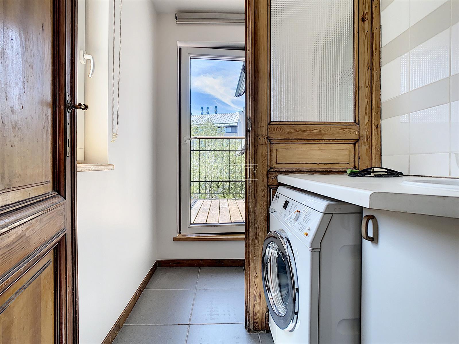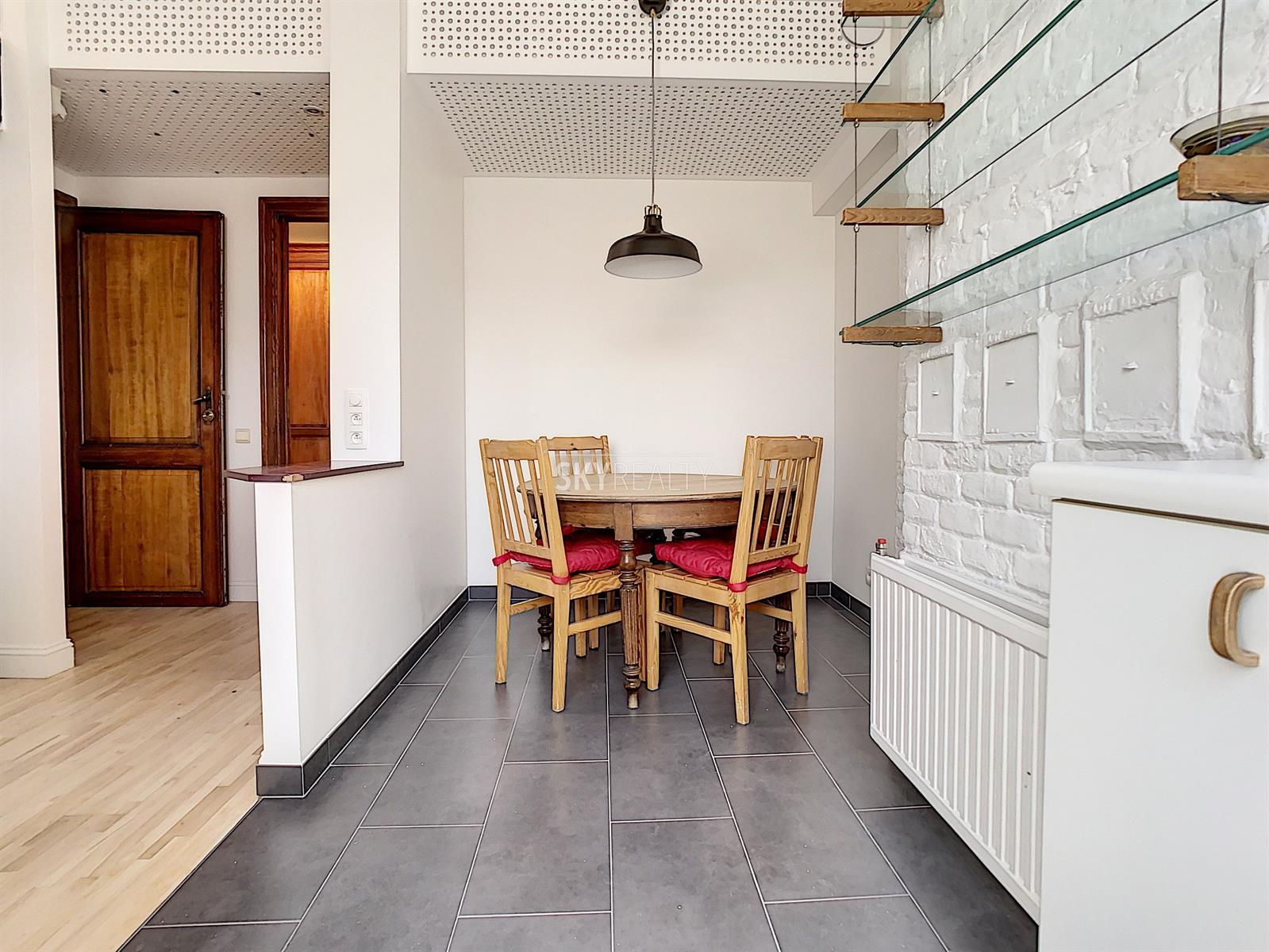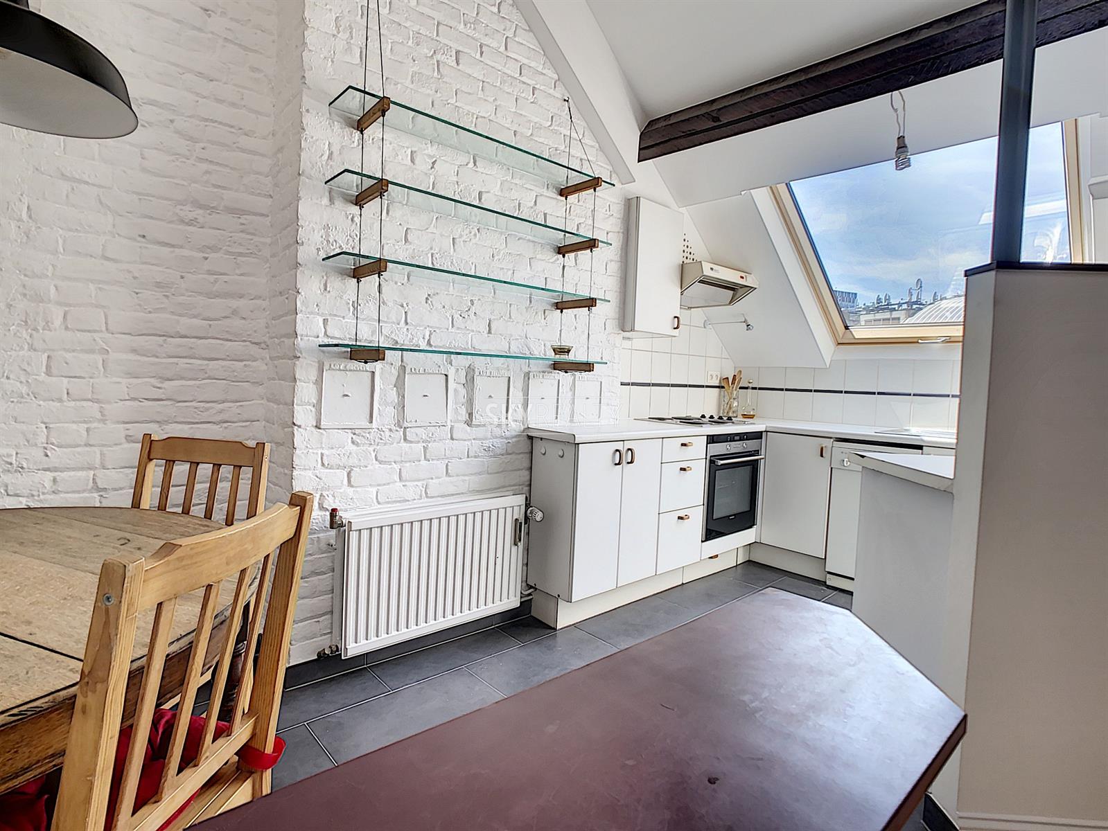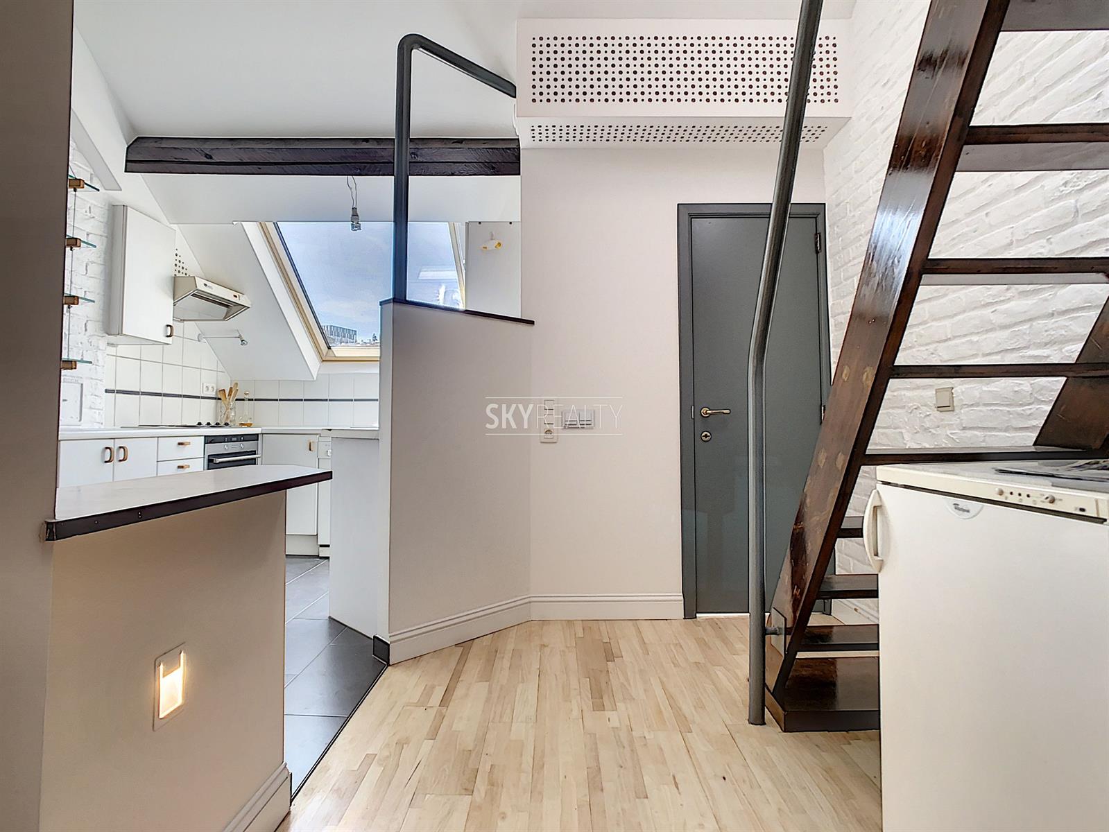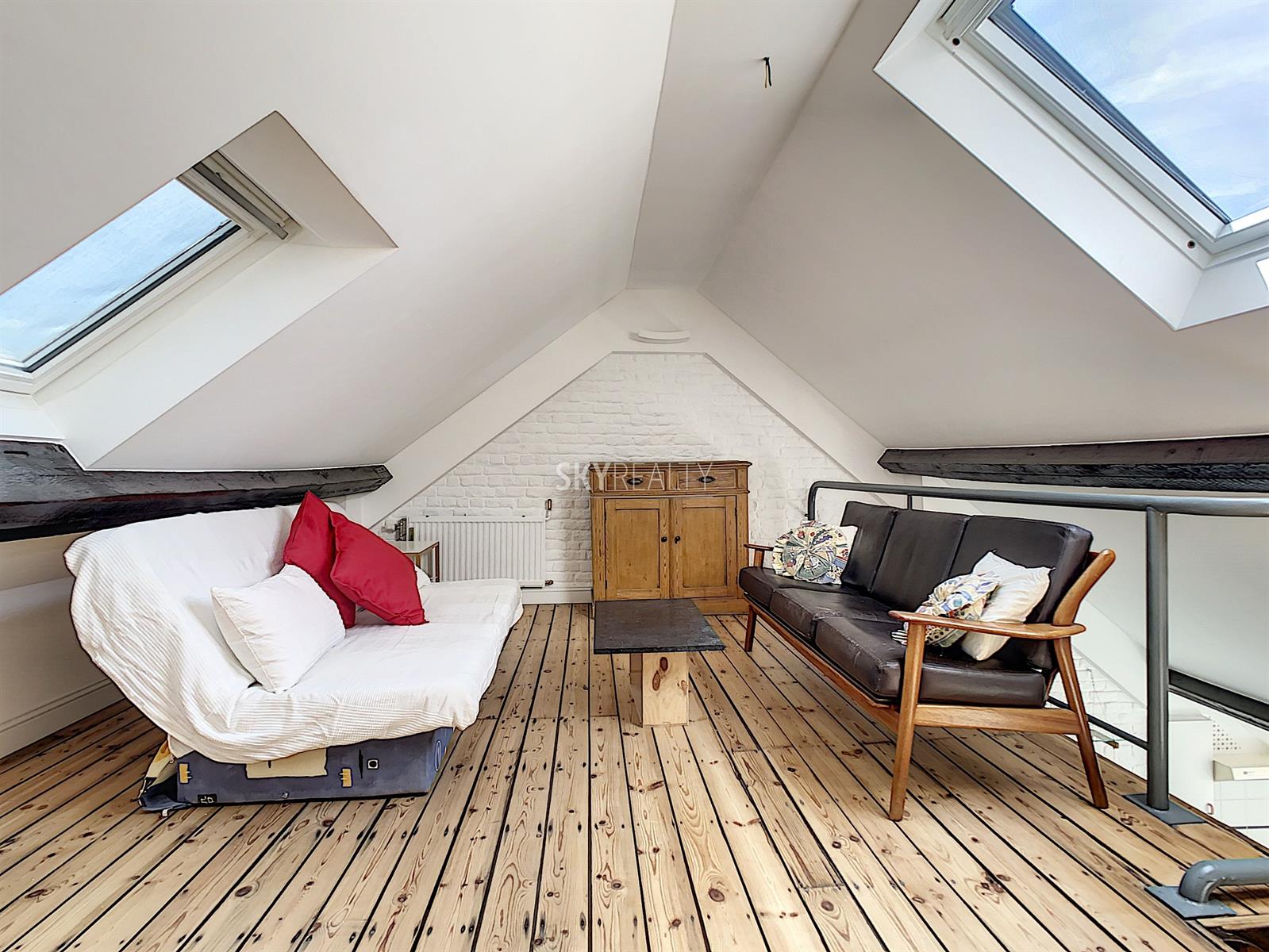*** Loué *** SCHUMAN / QUARTIER EUROPEEN: Cet agréable appartement duplex 2 chambres meublé ± 75 m² sis au 4e et dernier étage (sans ascenseur) d’une belle maison de maître (1902) vous enchantera par sa luminosité et sa terrasse plus sud. Il comprend: à l'entresol (entre le 3e et le 4e étage): un lavabo, une toilette, une terrasse ensoleillée exposée sud + ouest (± 9 m²); au 4e étage: un hall d'entrée avec toilette et lave-mains, une salle à manger, une cuisine hyper-équipée (réfrigérateur Miele, taque de cuisson électrique, hotte Novy, four, lave-vaisselle), une petite salle de bains (douche et lavabo), un hall de nuit avec une grande armoire, une grande chambre de ± 13 m² (avec garde-robe), une 2e chambre de ± 10m² (avec garde robe); au 5e étage: le séjour. Un appartement super lumineux équipé de stores et de volets électriques et écologiquement responsable avec production de l'électricité, de l'eau chaude via des panneaux solaires, récupération de l'eau de pluie, éclairage LED, triple (et quadruple !) vitrage, façades isolées. Très faible consommation énergétique. Une localisation parfaite à proximité de Schuman (Métro - Gare - STIB Airport Line) avec tous les services à proximité. Accès aisé aux axes autoroutiers. Parc du Cinquantenaire à 5 min à pied. PEB: B. Libre immédiatement. Loyer 1000 + 100€ (provision pour le chauffage, l'eau, l'électricité, assurance avec abandon de recours et l'entretien des communs). Internet à charge du preneur. Infos & Visites: