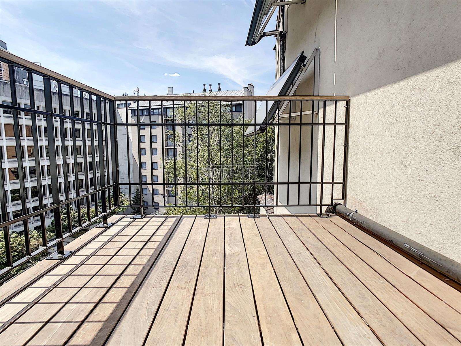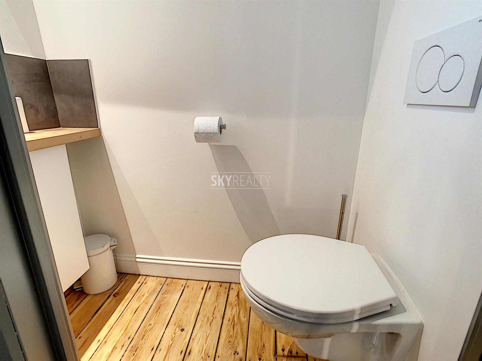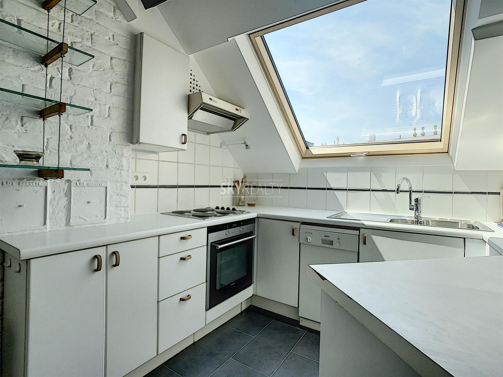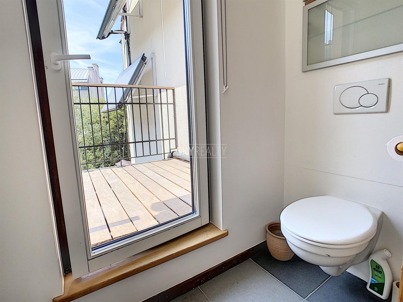 *** Loué *** SCHUMAN / QUARTIER EUROPEEN: Cet agréable appartement duplex 2 chambres meublé ± 75 m² sis au 4e et dernier étage (sans ascenseur) d’une belle maison de maître (1902) vous enchantera par sa luminosité et sa terrasse plus sud. Il comprend: à l'entresol (entre le 3e et le 4e étage): un lavabo, une toilette, une terrasse ensoleillée exposée sud + ouest (± 9 m²); au 4e étage: un hall d'entrée avec toilette et lave-mains, une salle à manger, une cuisine hyper-équipée (réfrigérateur Miele, taque de cuisson électrique, hotte Novy, four, lave-vaisselle), une petite salle de bains (douche et lavabo), un hall de nuit avec une grande armoire, une grande chambre de ± 13 m² (avec garde-robe), une 2e chambre de ± 10m² (avec garde robe); au 5e étage: le séjour. Un appartement super lumineux équipé de stores et de volets électriques et écologiquement responsable avec production de l'électricité, de l'eau chaude via des panneaux solaires, récupération de l'eau de pluie, éclairage LED, triple (et quadruple !) vitrage, façades isolées. Très faible consommation énergétique. Une localisation parfaite à proximité de Schuman (Métro - Gare - STIB Airport Line) avec tous les services à proximité. Accès aisé aux axes autoroutiers. Parc du Cinquantenaire à 5 min à pied. PEB: B. Libre immédiatement. Loyer 1000 + 100€ (provision pour le chauffage, l'eau, l'électricité, assurance avec abandon de recours et l'entretien des communs). Internet à charge du preneur. Infos & Visites: