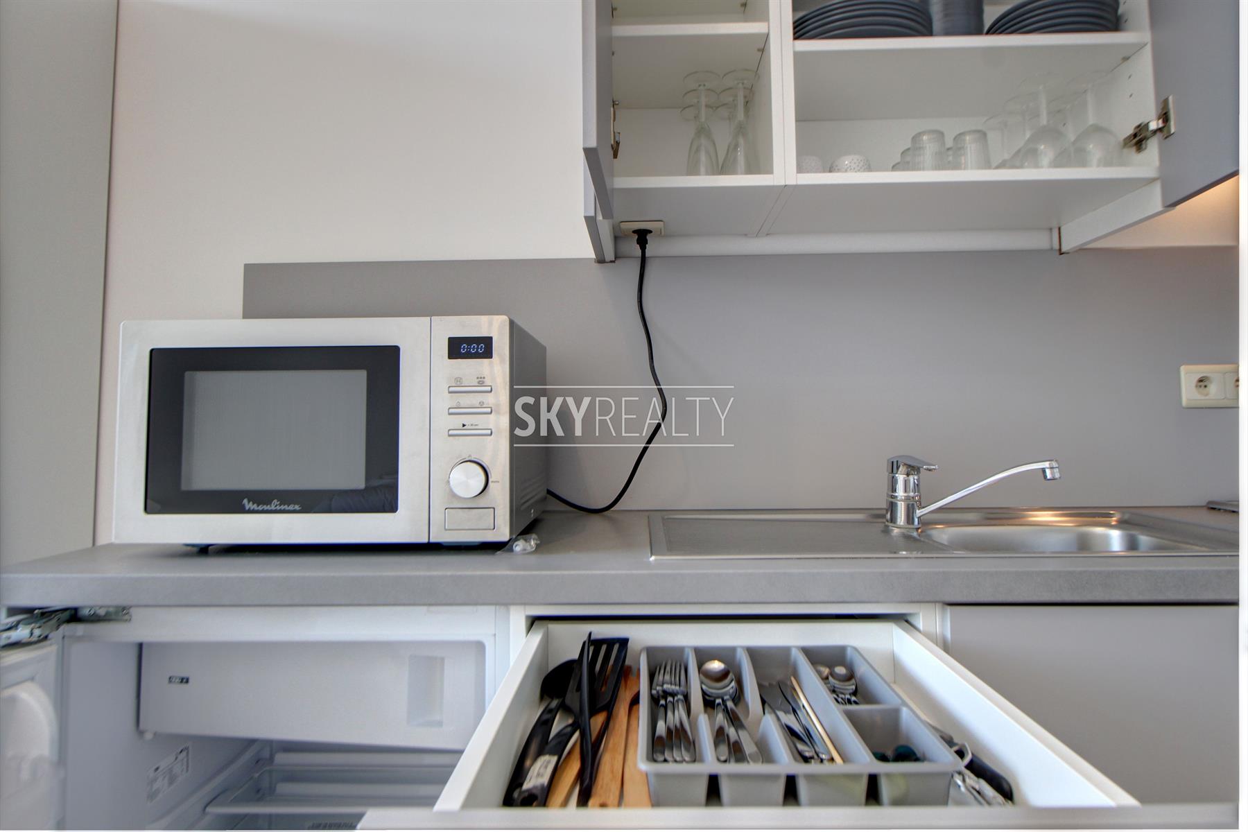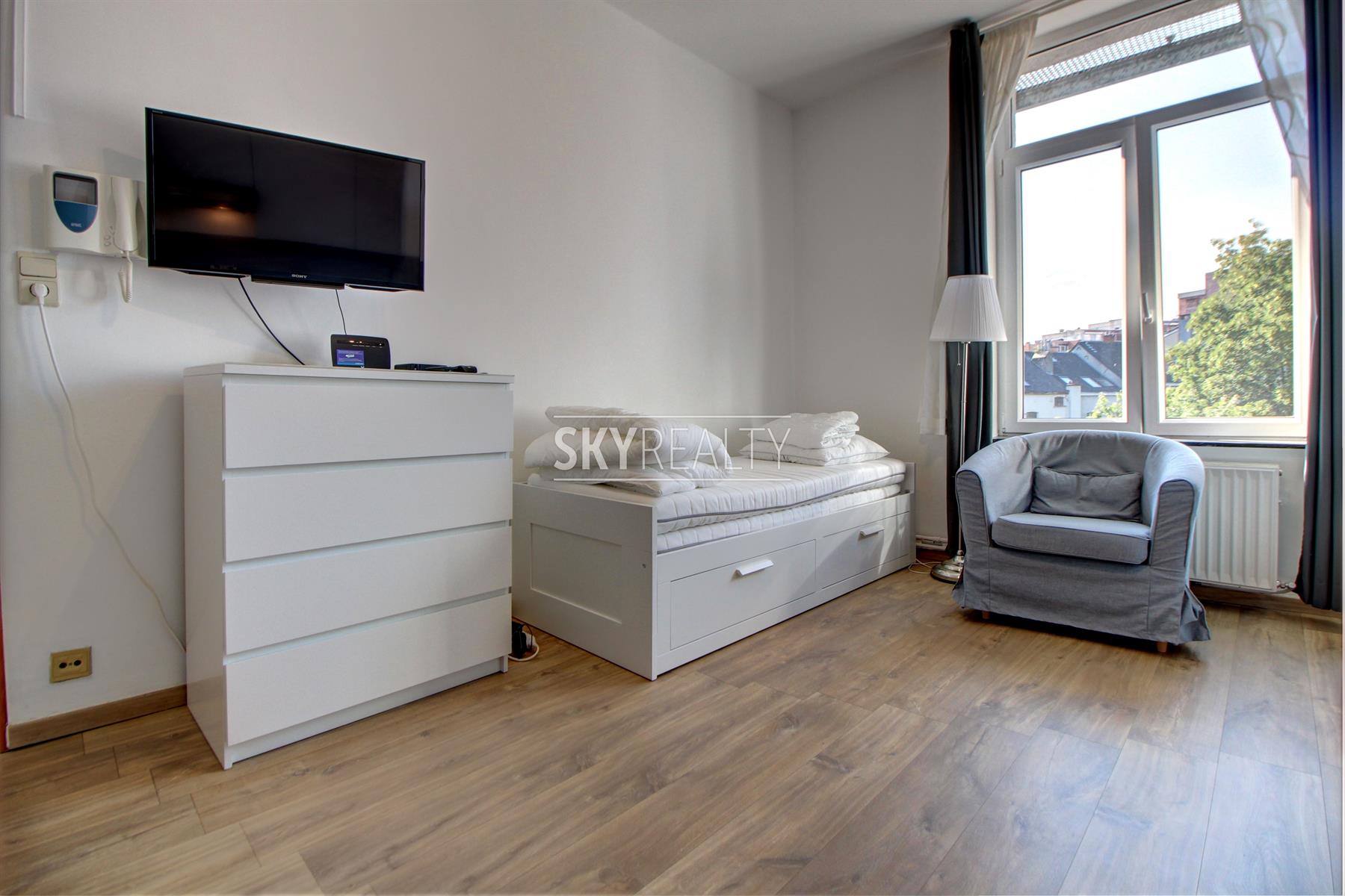 SCHUMAN / QUARTIER EUROPEEN: à 200m du Rond-point Schuman, sis au 2e étage /3 (avec ascenseur) à l'arrière d'une belle maison de maître, charmant studio meublé de ± 20 m² qui comprend: une pièce à vivre, une cuisine ouverte super-équipée et une grande SDB (bain/douche, évier, toilette). Un studio rénové (nouvelles peintures, nouveaux meubles, sols, double vitrage, etc.), très calme, à l'arrière de la maison avec vue sur les jardins et complètement meublés (télévision, routeur wifi, table, chaises, garde robe, lit, commode, couverts, assiettes, casseroles, édredon, coussin, etc.). Local vélos. Clé avec badge magnétique et option femme de ménage sur demande (nettoyage, laver et repasser le linge, etc.). Une adresse prisée à 200m de Schuman (Métro - Bus - STIB Airport/Nato Line - Gare - Taxis - Villo - Voitures partagées - etc.) avec tous les services à proximité (cafés, restaurants, supermarchés, commerces, poste, pharmacies, centre de Fitness et médical, etc.). Accès aisé aux grands axes autoroutiers. Le Parc du Cinquantenaire est à 2 minutes à pied. Un quartier sécurisé, verdoyant et très agréable à vivre. Libre immédiatement. Bail Minimum 1 année. Libre 1 octobre 2020. Loyer: 600€ + 200€ de charges ALL IN (chauffage, eau chaude/froide, charges pour les espaces communs, Internet, TV digitale, électricité, assurance abandon de recours). Infos et visites: David: 0495 511 555.