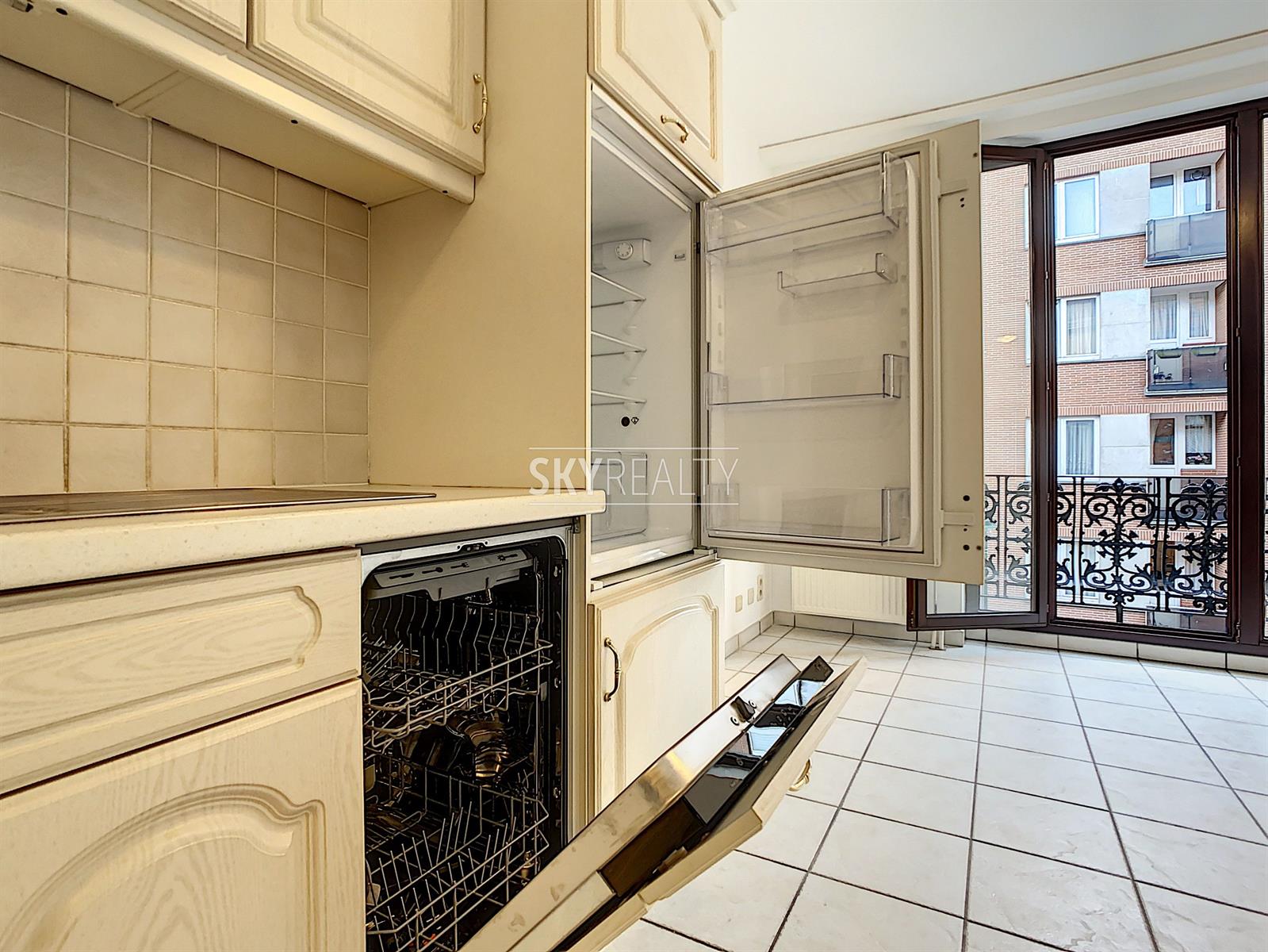 SCHUMAN: Sky Realty vous propose en exclusivité ce bel appartement 1 chambre de 55 m² au 2e étage (sans ascenseur) d'une maison de maître avec une agréable terrasse à l'arrière et un petit balcon en façade avant. Il est situé à seulement 200m du rond-Point Schuman, à coté des transports (métro, bus, gare) et de toutes les facilités. Il se compose comme suit: un hall d'entrée avec une toilette séparée, un séjour lumineux de 28 m² avec un petit bacon en façade avant (exposition sud), une cuisine ouverte super équipée (réfrigérateur, évier, taque vitro-céramique, hotte, four, lave-vaisselle), une grande chambre de 15 m² à l'arrière (très calme avec une agréable terrasse disposant d'une jolie vue sur les jardins), une salle de bain de 5 m² (bain, lavabo et machine à laver comprise). Appartement bien conçu reposant sur une structure en béton avec du double vitrage (chassis bois) à l'avant et à l'arrière. Immeuble propre et bien entretenu. Une adresse prisée à 200m de Schuman (Métro - Bus - STIB Airport/Nato Line - Gare - Taxis - Cambio - Villo - Etc.) avec tous les services à proximité (cafés, restaurants, supermarchés, commerces, poste, pharmacies, centre de Fitness et médical, etc.). Accès aisé aux grands axes autoroutiers. Le Parc du Cinquantenaire est à 3 minutes à pied. Non meublé - Libre immédiatement - Bail minimum 1 an. Loyer: 850€ + 35€ (provision pour l'eau) + 25€ (forfait pour les communs avec un entretien chaque semaine compris). Visites: David: +32 495 511 555.