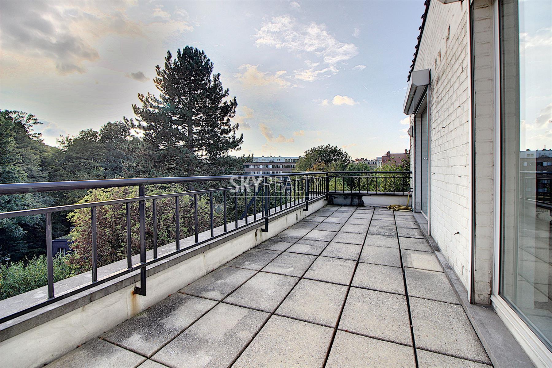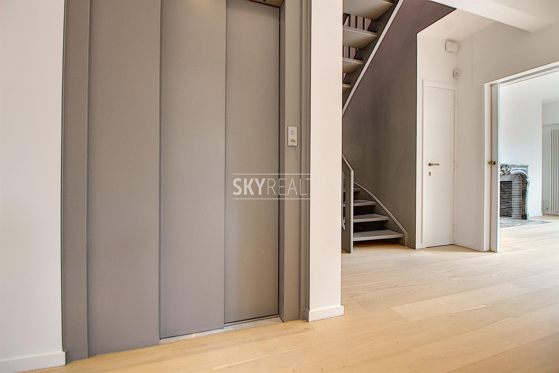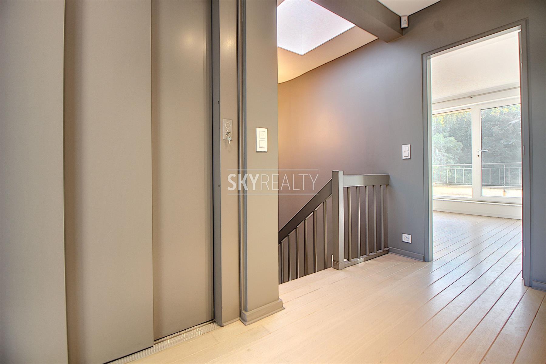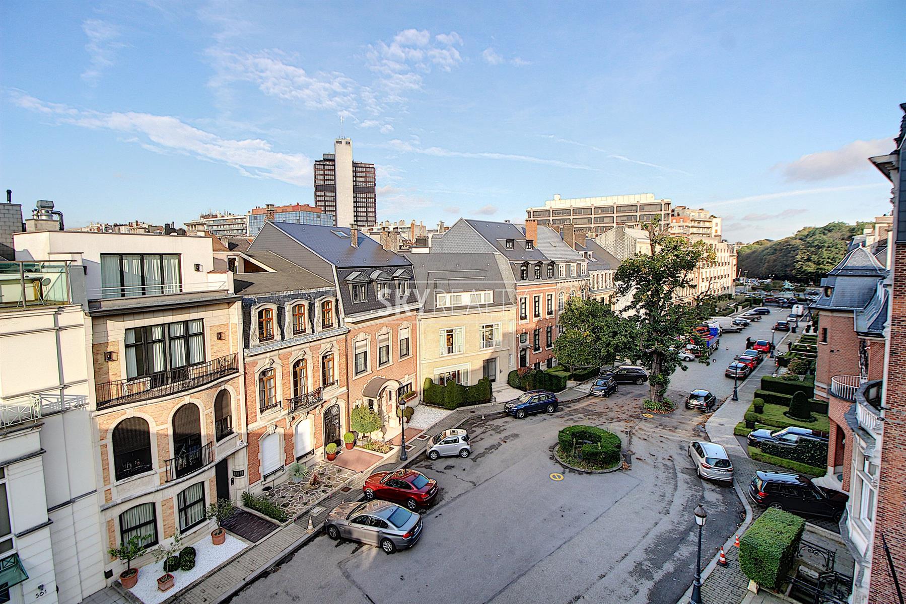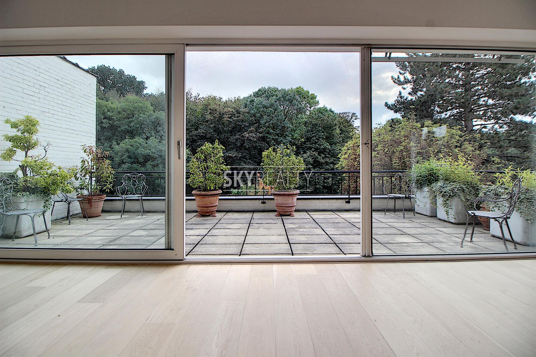 Square des Milliardaires | Square du Bois | Avenue Louise: À l'orée du bois de la Cambre, à coté de toutes les facilités de l'Avenue Louise, ce splendide duplex penthouse 3 chambres de ± 210 m² aux derniers étages d'une maison bourgeoise vous enchantera par la quiétude des lieux, ses pièces de vie et ses terrasses exposées plein sud ansi que par sa localisation unique dans le clos privé le plus select de Belgique. Il offre: au 2e étage: un ascenseur privatif arrivant dans l'appartement, un vestiaire, une toilette invités, un spacieux et lumineux living (feu ouvert fonctionnel) s'ouvrant vers une agréable terrasse exposée sud (jolie vue arborée), une salle à manger (ou bureau), une grande cuisine super-équipée, une chambre (garde-robe sur-mesure) avec salle de bain en suite (bain, lavabo double vasque, toilette et bidet séparés); au 3e étage: ascenseur privatif, hall de nuit avec dressing, la chambre parentale (avec garde-robe) s'ouvrant vers une deuxième terrasse exposée sud, une SDB en suite (douche, lavabo, toilette, bidet), une 3e chambre, une salle de douche (toilette, lavabo et une buanderie équipée), une 3e terrasse en façade avant avec jolie vue sur le Square. Air-conditionné, alarme, video-surveillance. Trois façades (belle luminosité). Clos privé ultra sécurisé. Loyer: 3500 € + 200 € (forfait pour les communs et l'eau froide). 1 parking extérieur (inclus). Parking(s) couvert(s): option: +150 €/lot. Un excellent rapport qualité pour cette localisation hors du commun.