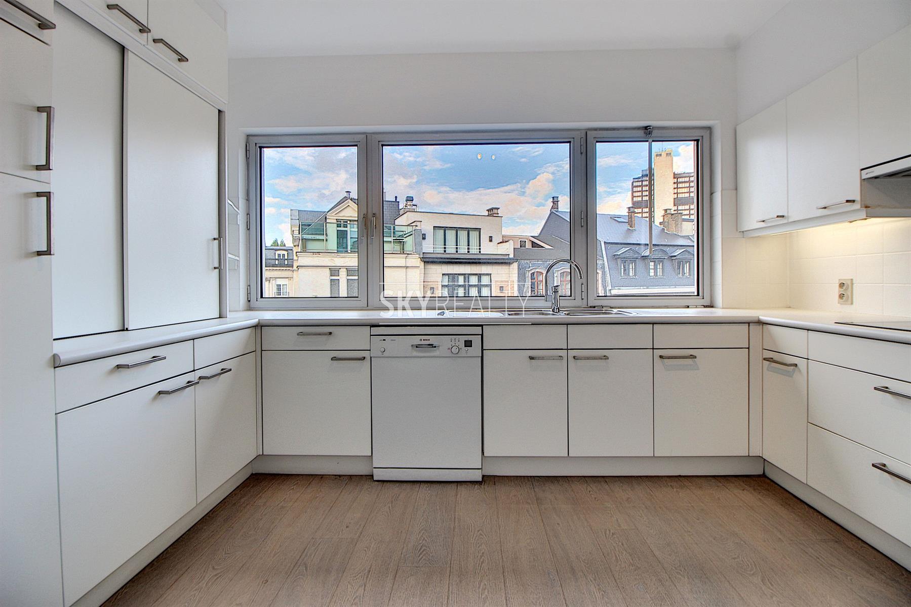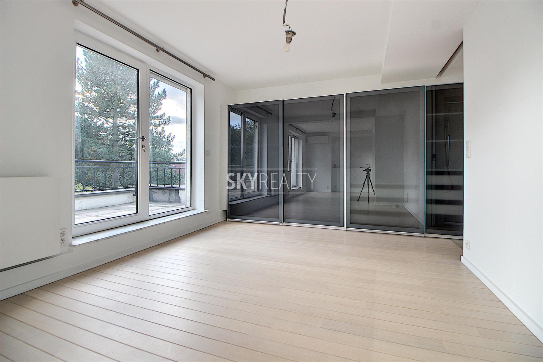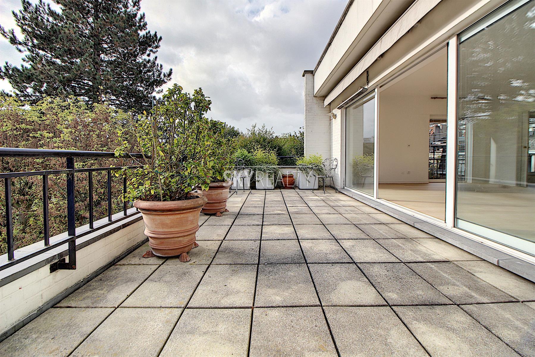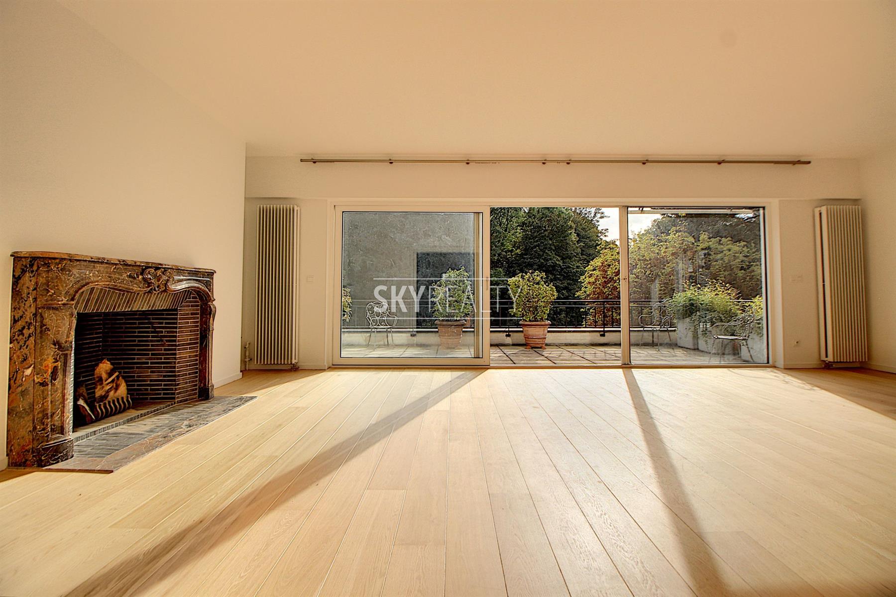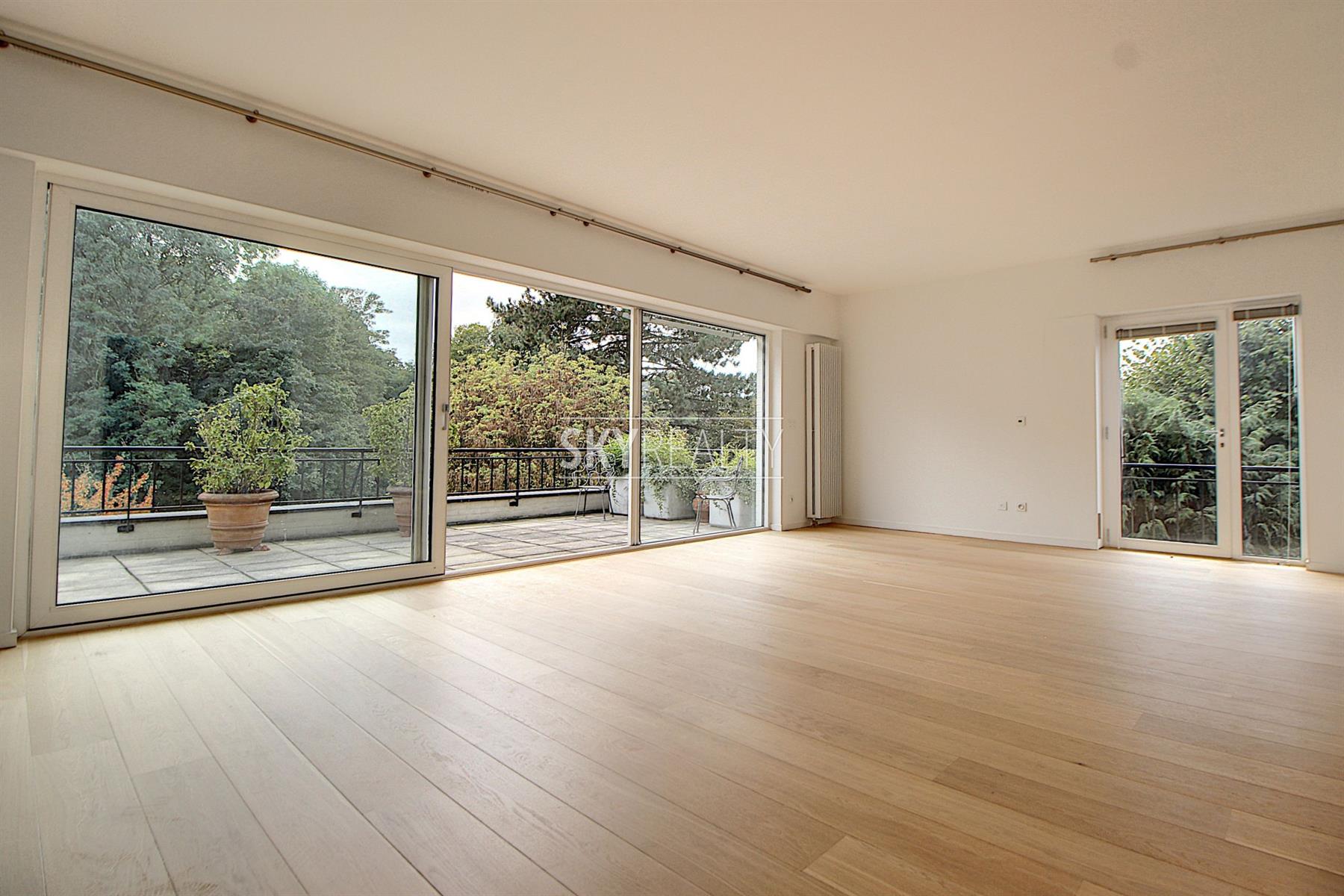 Square des Milliardaires | Square du Bois | Avenue Louise: À l'orée du bois de la Cambre, à coté de toutes les facilités de l'Avenue Louise, ce splendide duplex penthouse 3 chambres de ± 210 m² aux derniers étages d'une maison bourgeoise vous enchantera par la quiétude des lieux, ses pièces de vie et ses terrasses exposées plein sud ansi que par sa localisation unique dans le clos privé le plus select de Belgique. Il offre: au 2e étage: un ascenseur privatif arrivant dans l'appartement, un vestiaire, une toilette invités, un spacieux et lumineux living (feu ouvert fonctionnel) s'ouvrant vers une agréable terrasse exposée sud (jolie vue arborée), une salle à manger (ou bureau), une grande cuisine super-équipée, une chambre (garde-robe sur-mesure) avec salle de bain en suite (bain, lavabo double vasque, toilette et bidet séparés); au 3e étage: ascenseur privatif, hall de nuit avec dressing, la chambre parentale (avec garde-robe) s'ouvrant vers une deuxième terrasse exposée sud, une SDB en suite (douche, lavabo, toilette, bidet), une 3e chambre, une salle de douche (toilette, lavabo et une buanderie équipée), une 3e terrasse en façade avant avec jolie vue sur le Square. Air-conditionné, alarme, video-surveillance. Trois façades (belle luminosité). Clos privé ultra sécurisé. Loyer: 3500 € + 200 € (forfait pour les communs et l'eau froide). 1 parking extérieur (inclus). Parking(s) couvert(s): option: +150 €/lot. Un excellent rapport qualité pour cette localisation hors du commun.